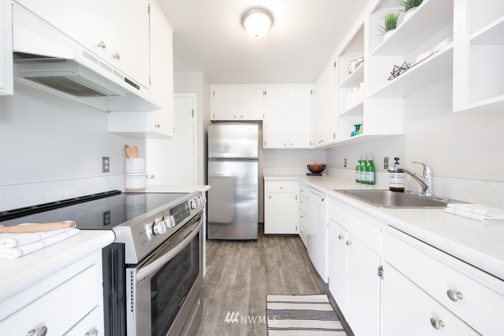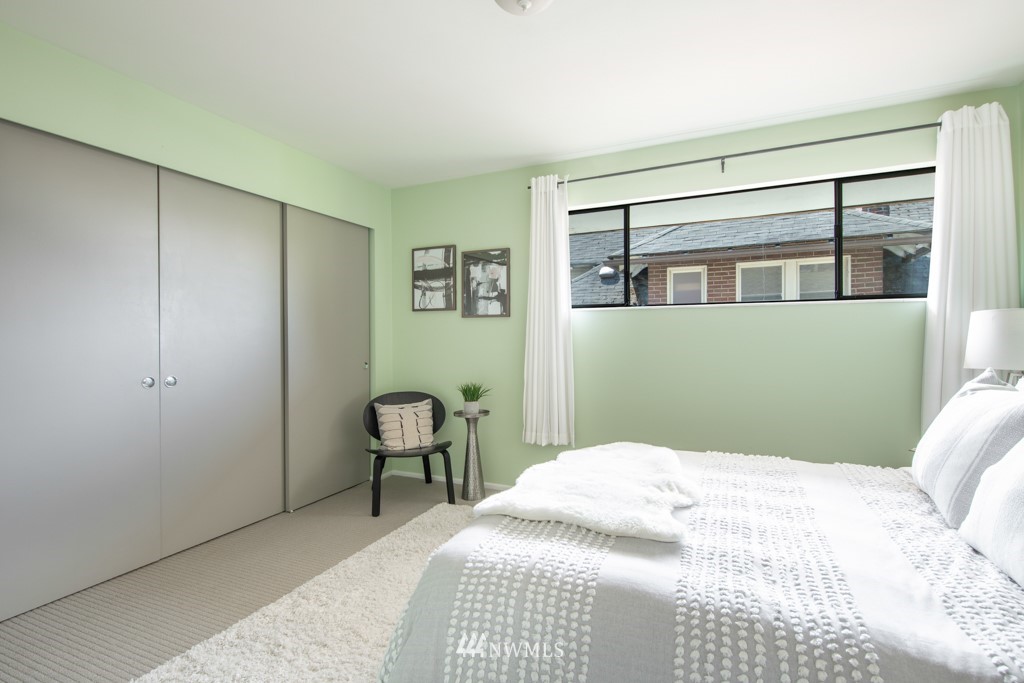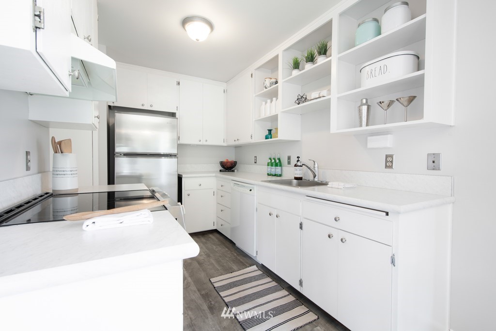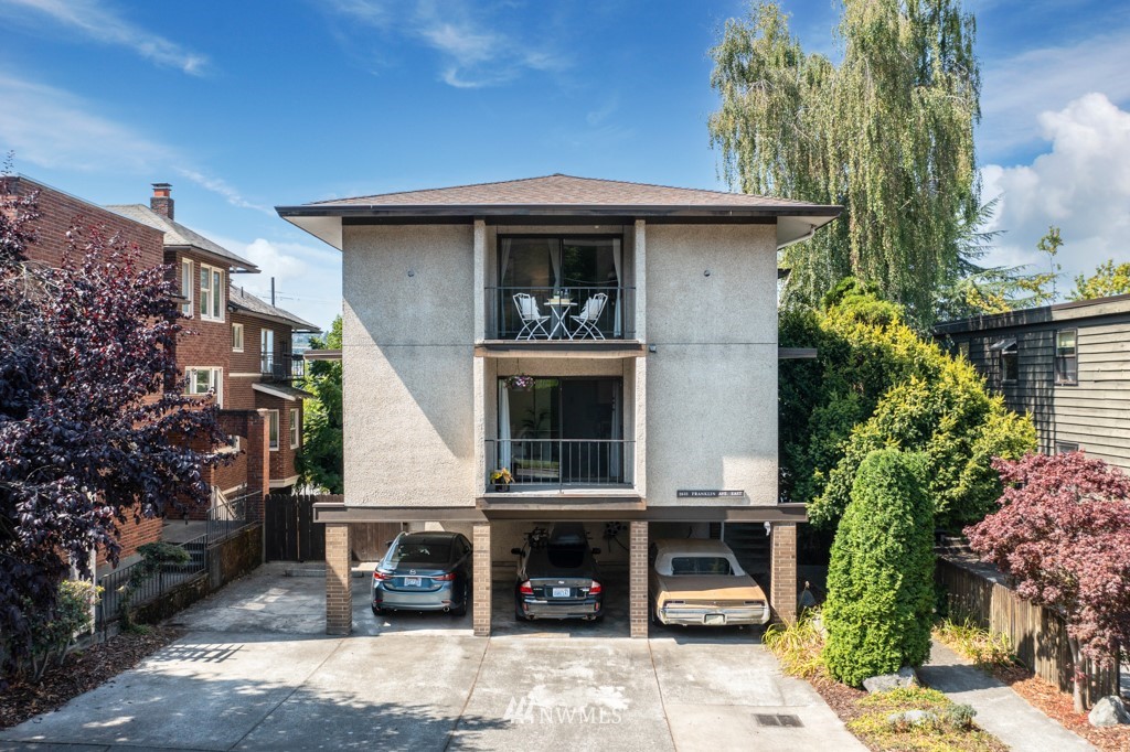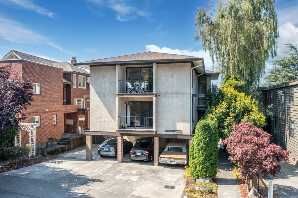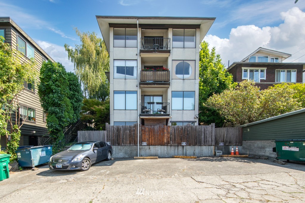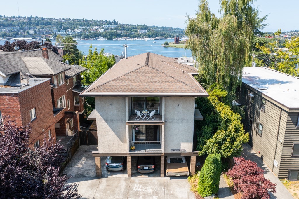 Welcome home to this sunny, top floor, corner unit in vibrant Eastlake! Located on a quiet street but steps to all the action, you'll find a very well laid out one bedroom condo with a west facing balcony, windows on three sides, off street parking in alley, in-unit laundry as well as a common laundry room on the lower level. And a storage unit too! The bedroom is generous in size and has a wall of closets with built-in organizers. Large, open living & dining areas are great for entertaining! The location is a commuters dream with easy access to I-5 and blocks to bus service to UW, South Lake Union, and Downtown. Fantastic restaurants, cafes, and cute shops are all at your fingertips in this urban oasis. Pet friendly and rentals allowed.