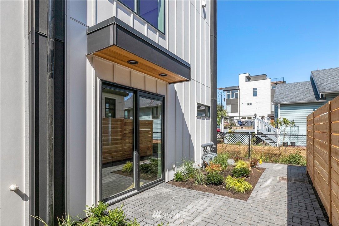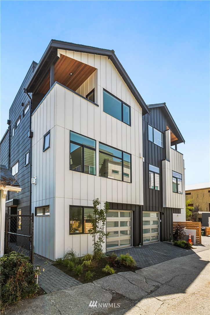 Gorgeous modern farm house with tremendous attention to detail and design. Upon entering, you will flow effortlessly through an open lower level seamlessly connected to an outdoor patio. Ship lap, storage, and custom built-ins complete the entry. Luxurious main level boast oak wood flooring, water-fall island kitchen, custom hood above the high-end Bertazzoni gas range, and generous walk-in pantry. West elm lighting package, a cozy gas fireplace, and locally sourced reclaimed wood shelving complete this main level. Top floor features a primary suite, expansive walk-in closet, and spa-like bath. Private terrace off bedroom. Roof top deck featuring water, power and gas. Well established neighborhood. Garage attached with EV charging station.