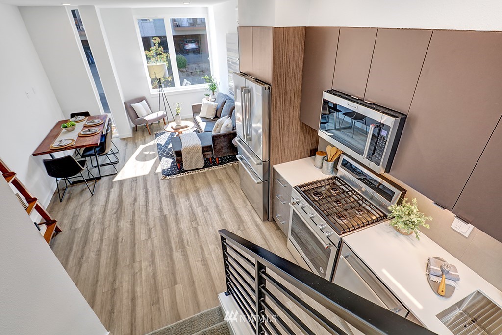 Introducing Alina Townhome Collection by award-winning builder Isola. A captivating array of townhomes founded on Integrity, Function & Design. This residence is a 2BD/1.75BA unit with 1,144SF of delightfully divided living space between three floors and a rooftop deck. Each home encompasses an airy, open layout w/ light earth-tone colors illuminated by plenty of natural light. Entryway located on the ground floor with a cozy bedroom and full bathroom. The second floor features a chic modern kitchen featuring stainless appliances and a dining peninsula flowing into the great room. The entire third floor is a comfortable owner's suite with a walk-in closet and a private balcony.
