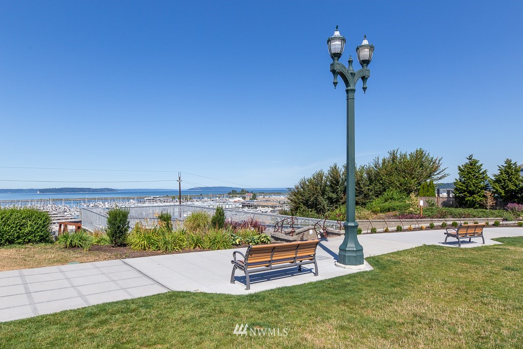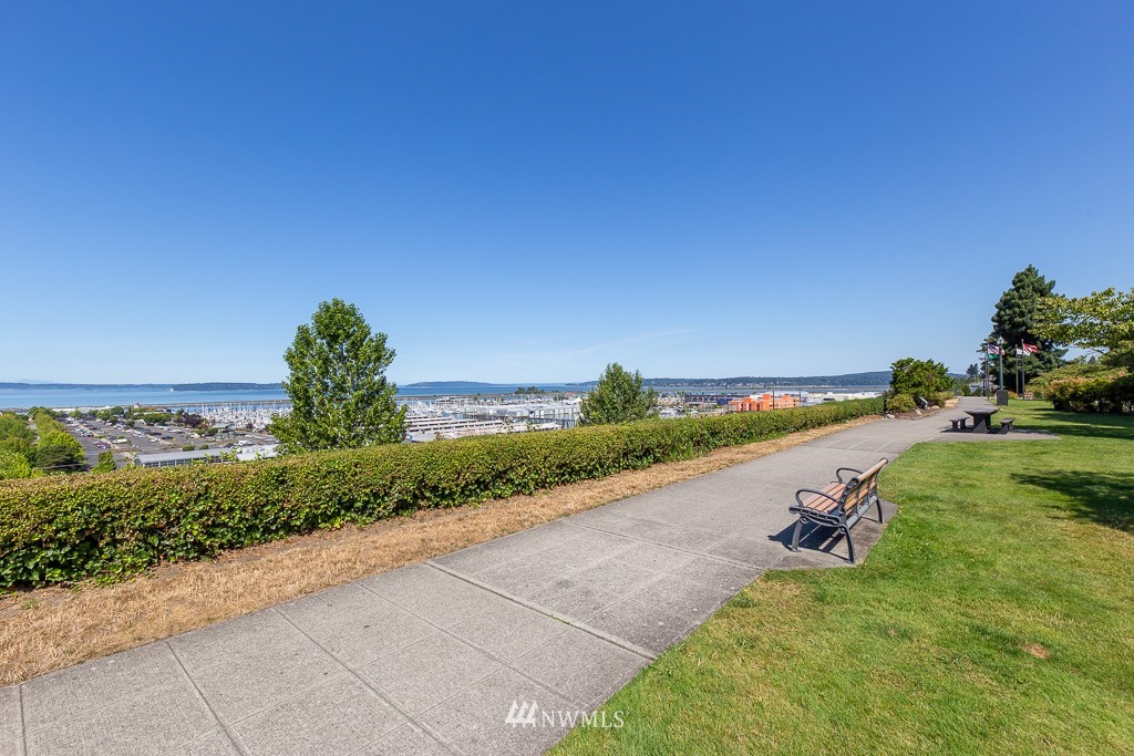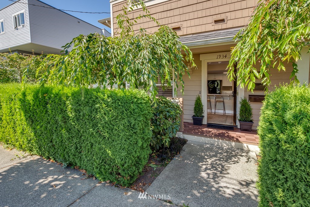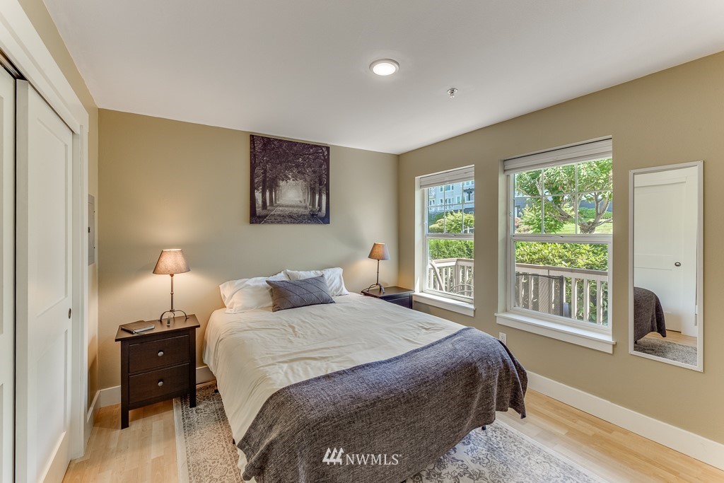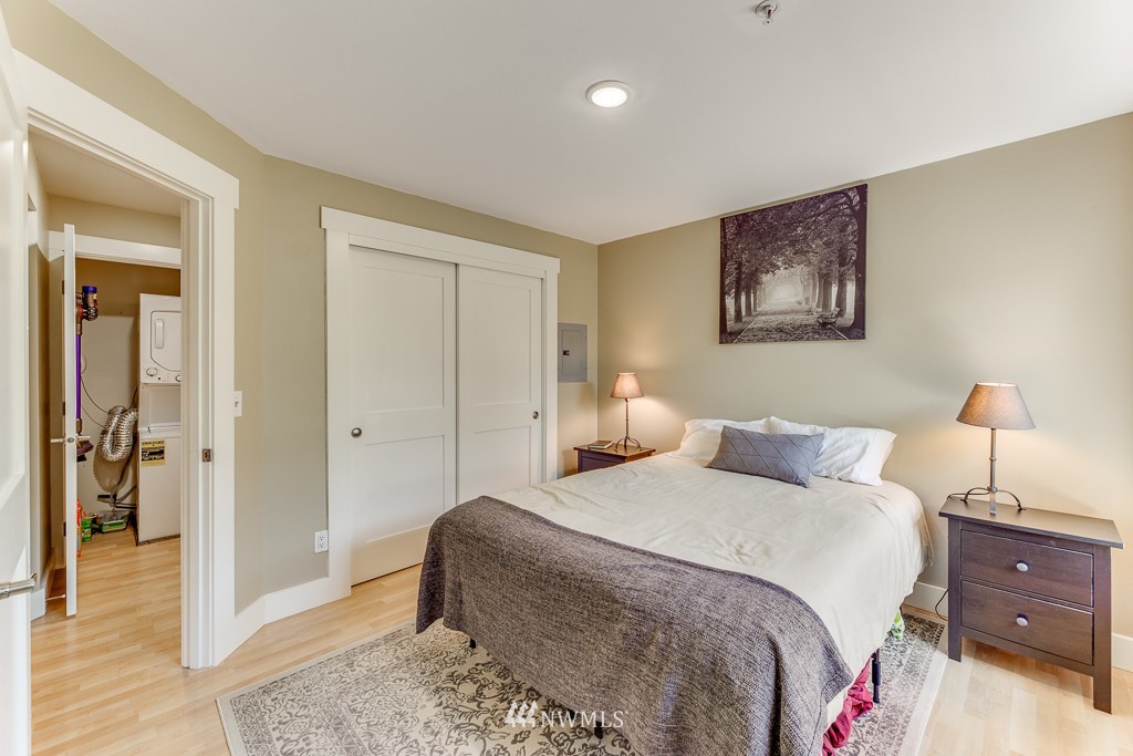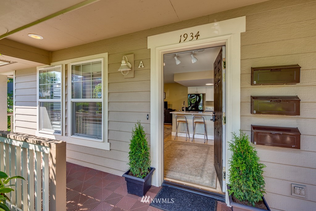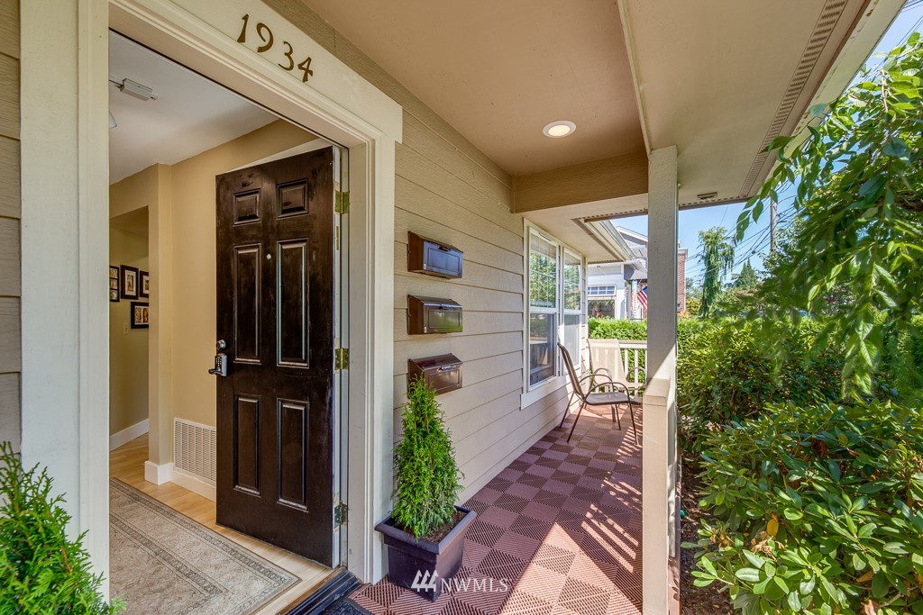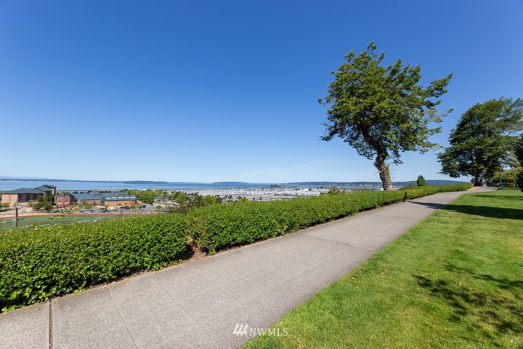 Inviting location leads to the covered front porch of this easy access level entry 1-bedroom condo. Located in the highly sought Historic N. Everett neighborhood, just one block from Grand Avenue Park with new pedestrian bridge to the Everett waterfront with Marina, Restaurants & Jetty Beach access. Built in 1996 this condo has a desirable open layout with spacious living room & kitchen with bar seating. Natural gas force air heat, high-end plantation shutters & laminate flooring throughout the condo. The unit includes well-lit bedroom, full bath & in unit washer/dryer. The condo has secure garage with code plus a storage room. Only three units in this complex with low monthly dues which cover water/sewer/garbage & yard care.