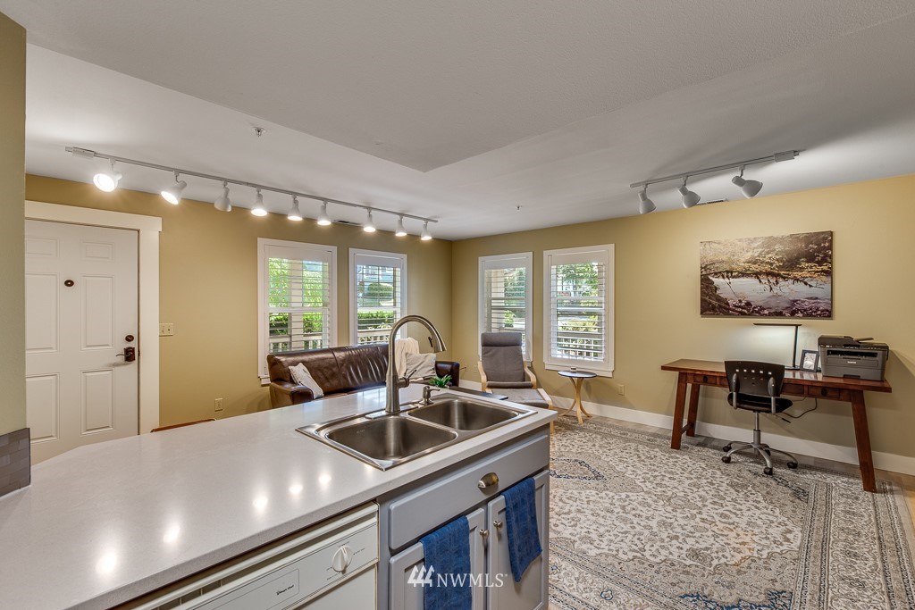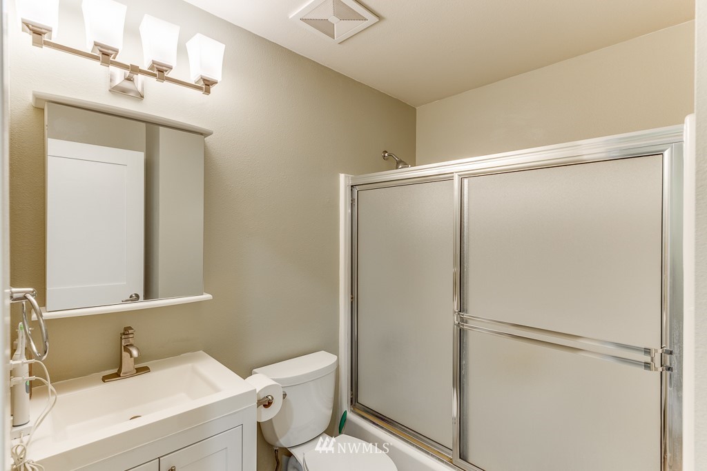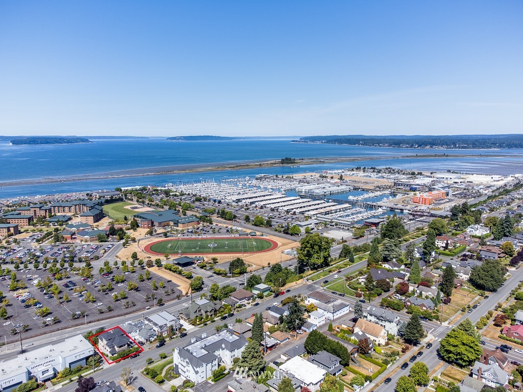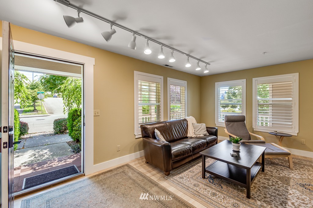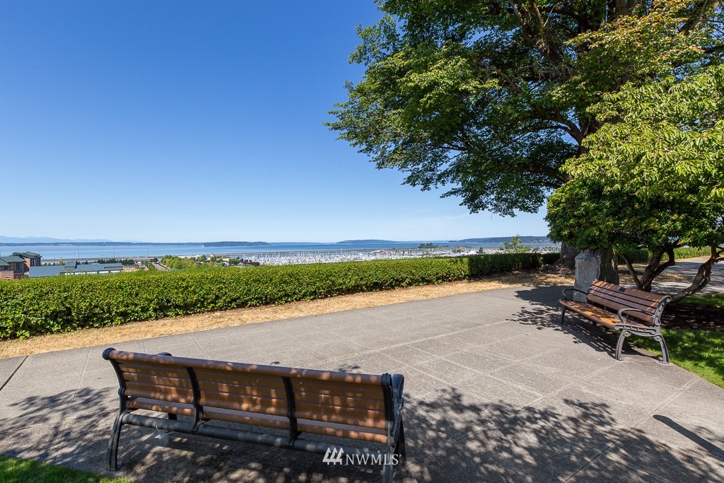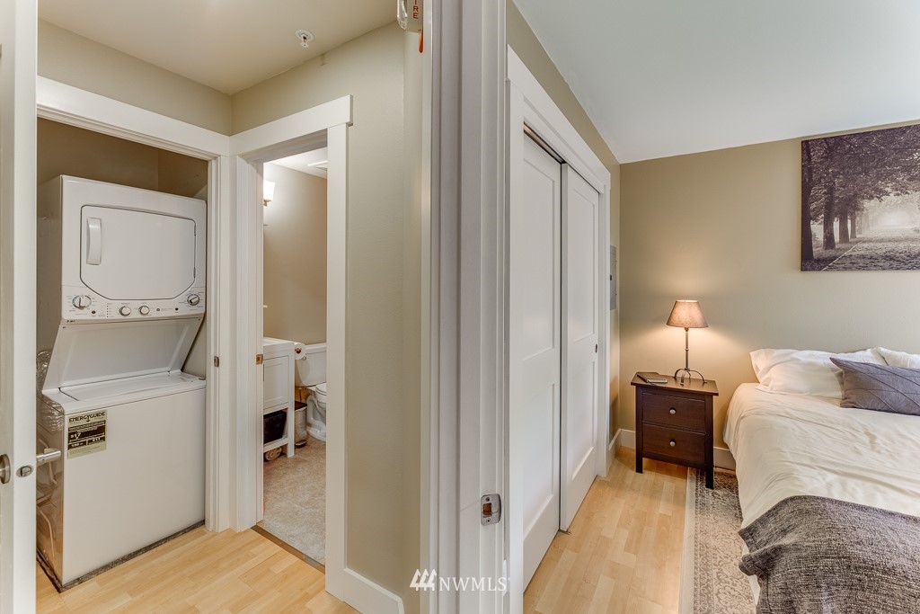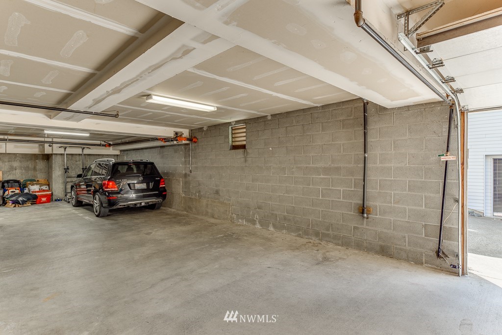 Inviting location leads to the covered front porch of this easy access level entry 1-bedroom condo. Located in the highly sought Historic N. Everett neighborhood, just one block from Grand Avenue Park with new pedestrian bridge to the Everett waterfront with Marina, Restaurants & Jetty Beach access. Built in 1996 this condo has a desirable open layout with spacious living room & kitchen with bar seating. Natural gas force air heat, high-end plantation shutters & laminate flooring throughout the condo. The unit includes well-lit bedroom, full bath & in unit washer/dryer. The condo has secure garage with code plus a storage room. Only three units in this complex with low monthly dues which cover water/sewer/garbage & yard care.