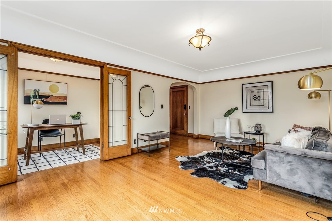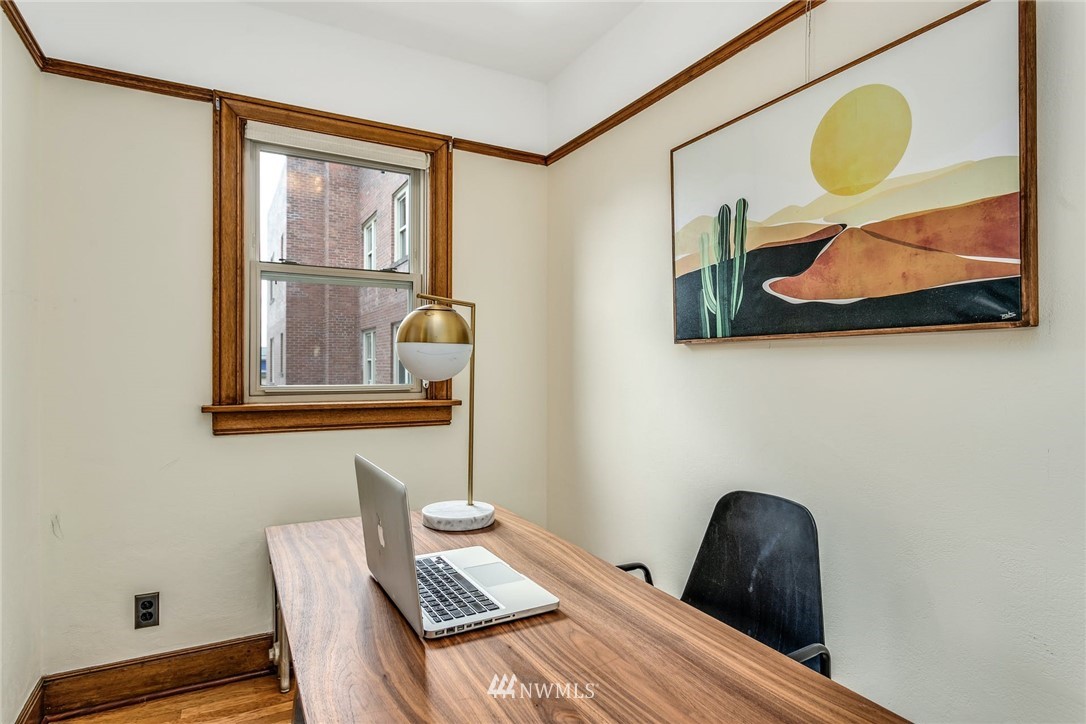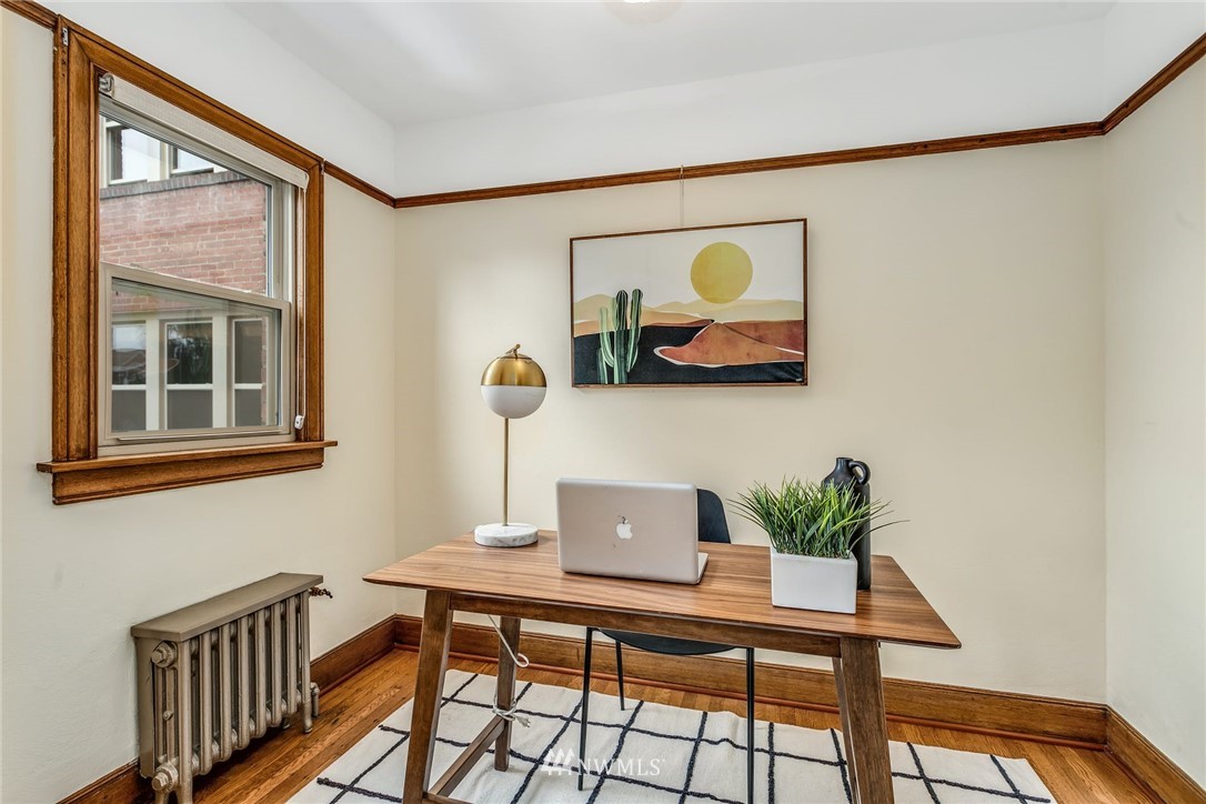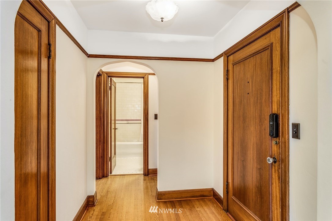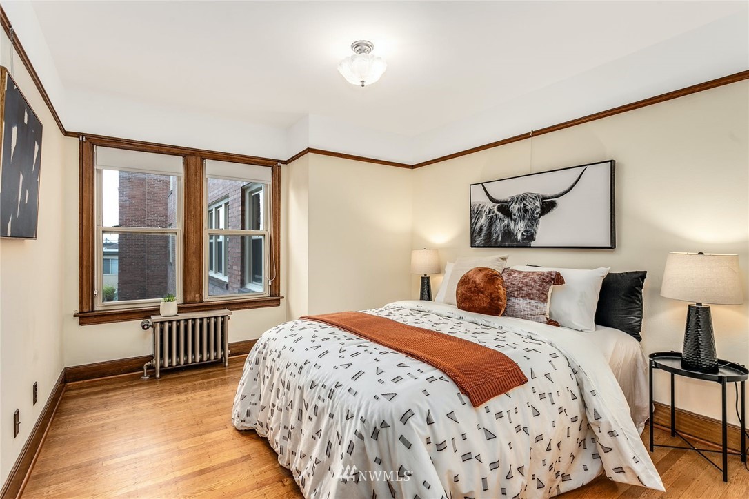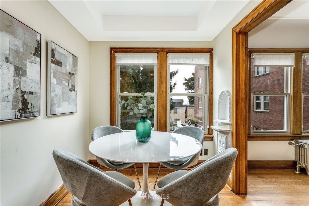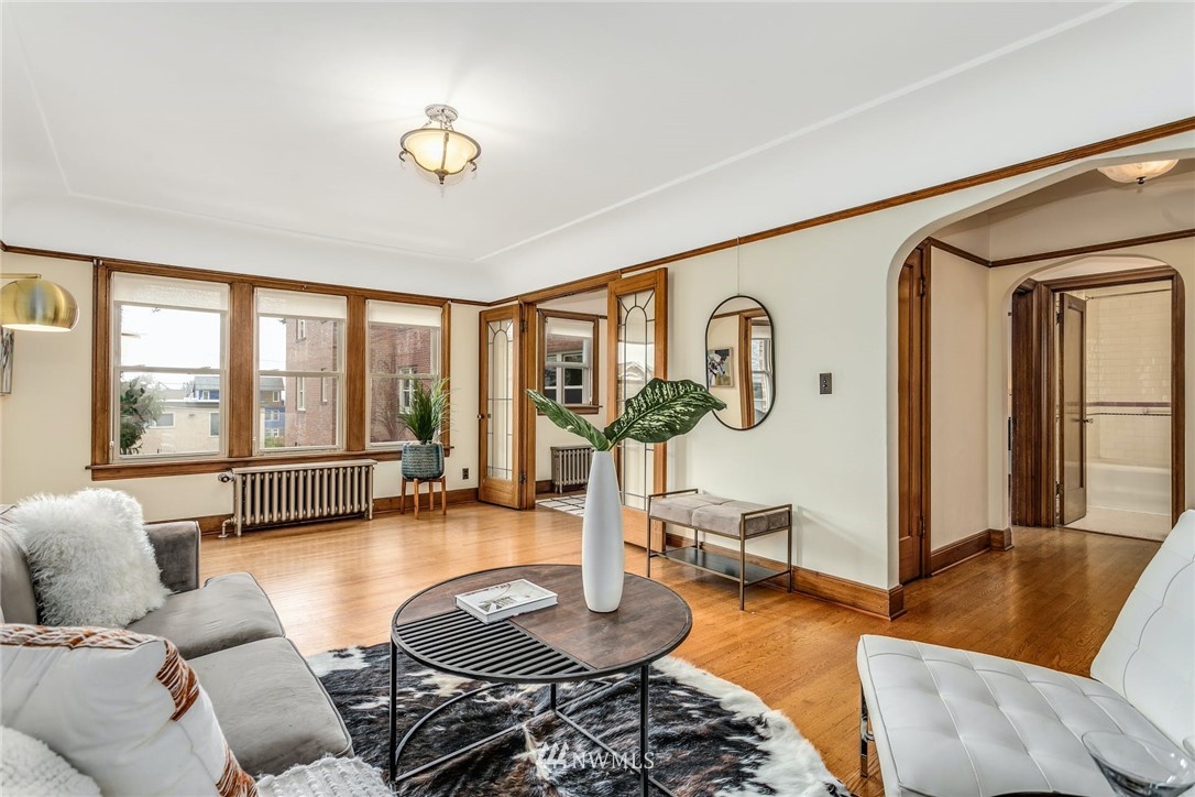 Smack dab in the heart of Capitol Hill. Enjoy coved ceilings, original, and well-preserved woodwork, in an extremely well laid out condo. In unit W&D, nice double paned windows, and sweet french doors. Great storage and built-ins. Parking, but who needs a car? Neighborhood amenities are too numerous to list with everything from fine dining to major grocery, and nearby parks and recreation. Easy access to public transportation where you are minutes to downtown and 7 blocks from light rail. Enjoy old world charm in this end unit with cascade views.