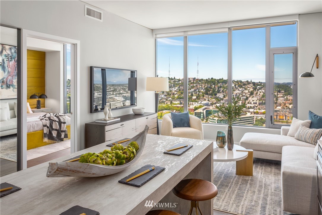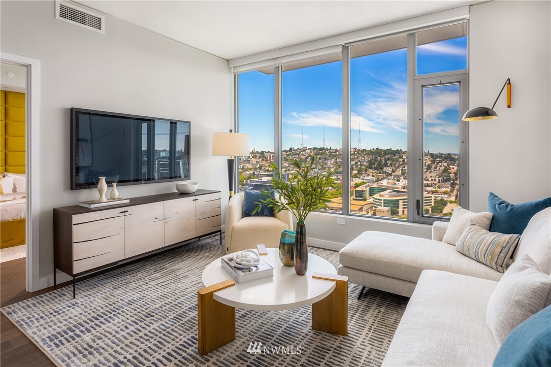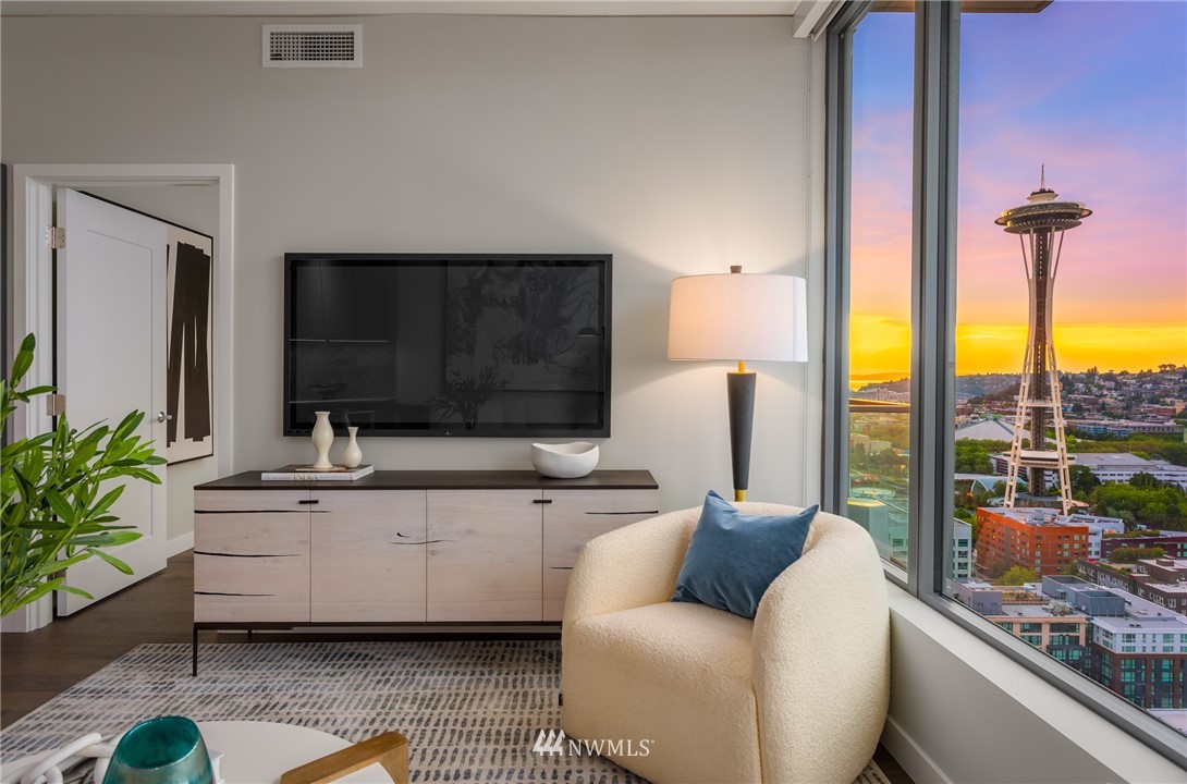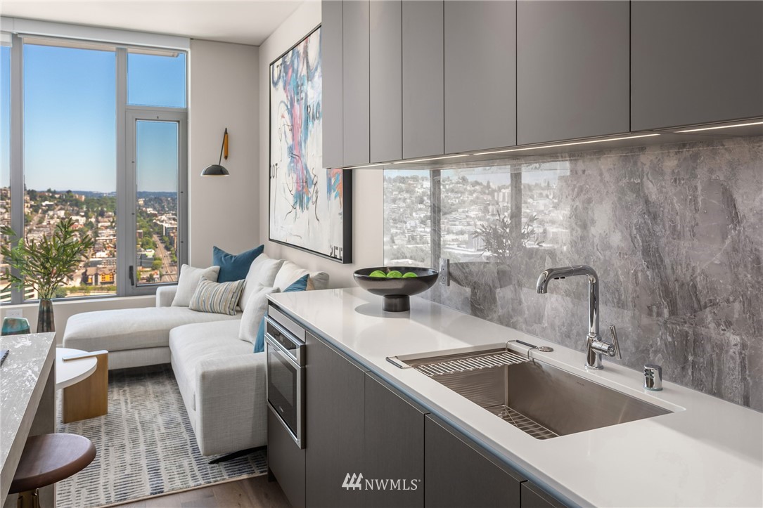 Spire Condominiums, at the intersection of Belltown, South Lake Union, and Denny Triangle, offers iconic Space Needle and water views unlike any other new construction building in Seattle. This coveted location allows its residents easy access to a bevy of retailers, restaurants and bars, technology centers, arts, outdoor recreation, and entertainment. Rising high at 41 stories of incredible living spaces that include this One Bedroom with views of the Space Needle, Lake Union and Sound that features an L shape kitchen, Bosch appliances and walk in closet. Amenities include concierge, rooftop fitness center and pet run, 40th floor clubroom, dining, terraces, co-working space, private conference room, theater, movement studio + more.