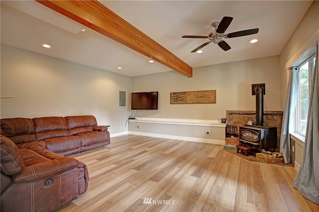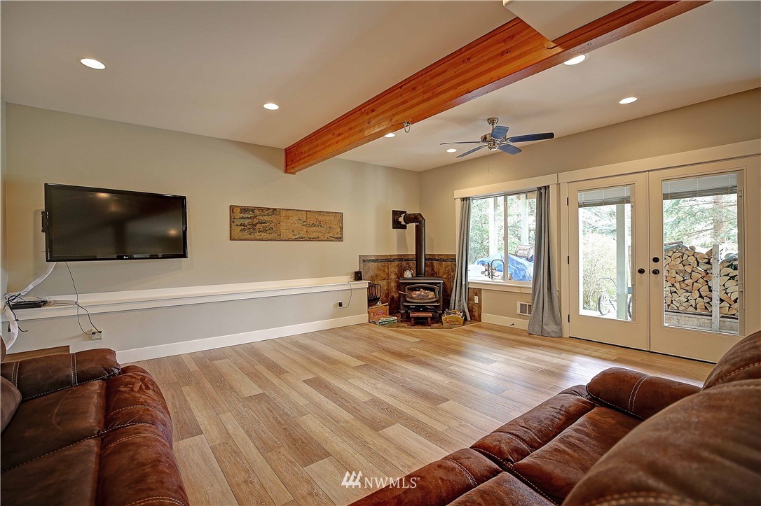 Your new Lake house awaits! This beautiful daylight rambler is open and inviting! The Lost Lake community has electric motor lake access, trails & Clubhouse. The main level boasts a master bedroom with ensuite & walk-in closet, guest bedroom/bathroom, laundry room, open concept Kitchen, vaulted great room and a huge entertaining deck to take in the Lake views! Downstairs you’ll find an additional bedroom, guest bath, and spacious family/rec room with cozy woodstove. The fenced backyard leads to your private lake access/floating dock, firepit & shed. Plenty of parking + 2 car garage. Just minutes to shopping, restaurants, golf & 2 state parks! Full time, part time, investment…this home is your getaway! Island life with no ferry!