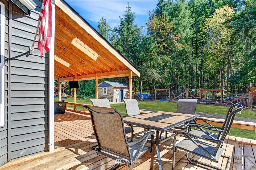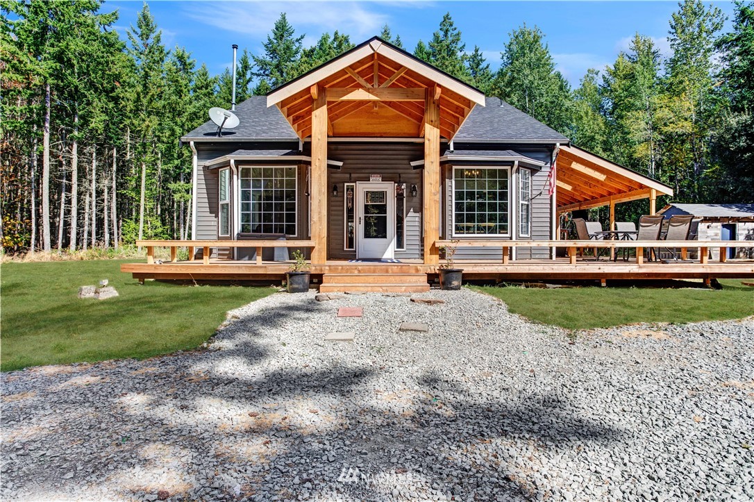 Tucked away on a private 5 acres! Unwind on the drive home, then beyond the gate enter into a secluded setting for this 3 bed, 2.5 bath dream + bonus room. Complete w/ marbled entry, designer fixtures, ductless mini-split, tankless water heater, sauna, vaulted ceilings & calibamboo flooring. A huge commercial fridge, filtration drinking system & massive granite kitchen island with endless storage. The large deck makes entertaining a breeze! The Master suite is oversized with skylights, en suite w/ heated floors, a soaking tub, and a one-of-a-kind luxury shower. The outdoors offers outbuildings, chicken coop, several fenced areas, play yard, & a hideaway perfect for firepits, storytelling, & camping! Two year old roof & no HOA's!