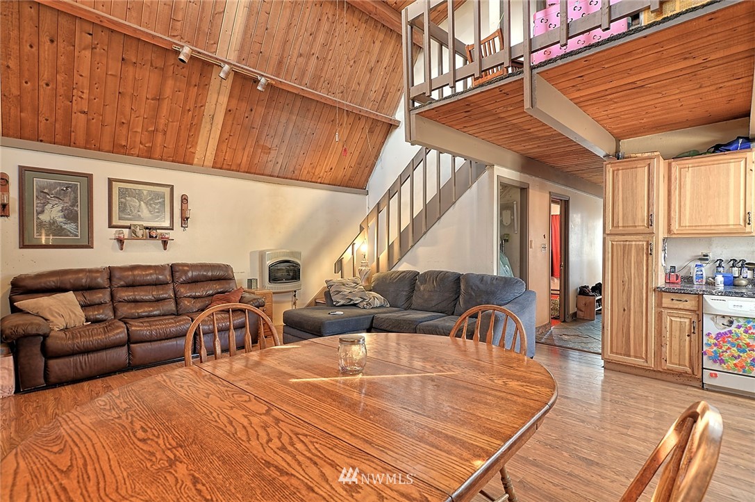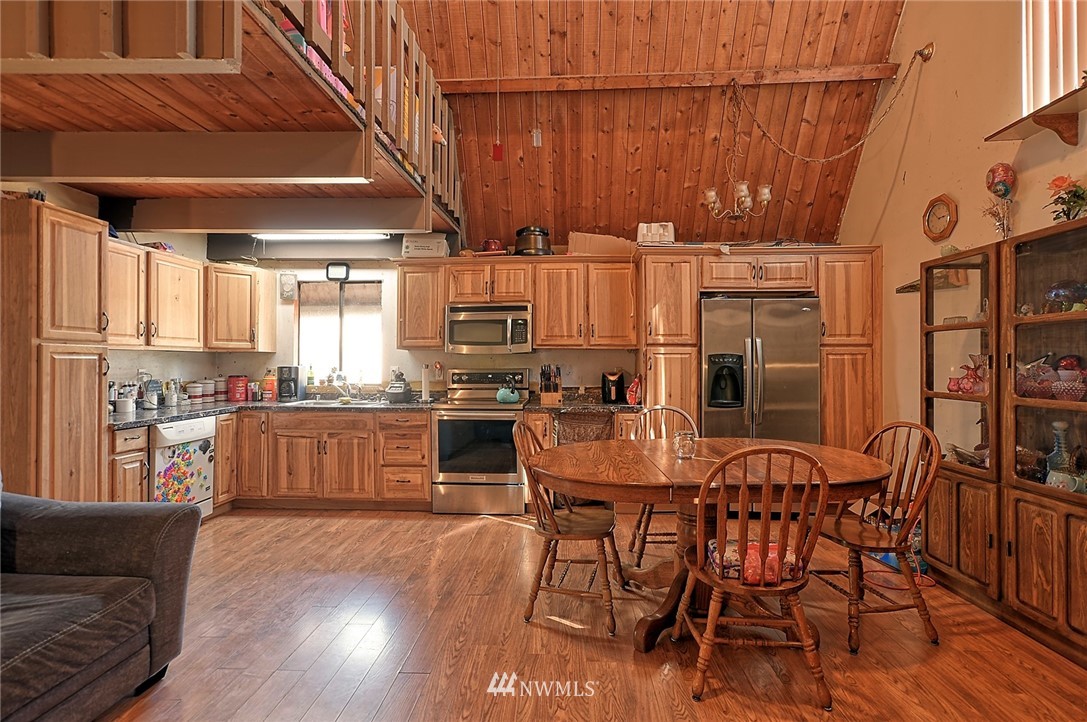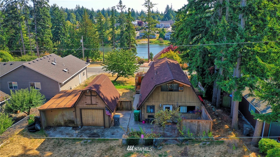 a master bedroom with private 1/2 bath up stairs, a newer roof, new stove, vaulted ceilings, abundance of beautiful wood throughout the home, open concept with a loft that over looks the living space. Fenced yard with a view of Smith Lake, unlimited golfing, 2 seasonal swimming pools, stocked lake for fishing, detached garage/shop.