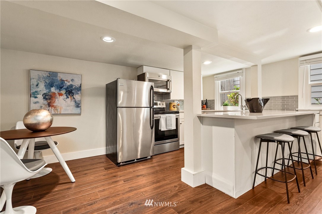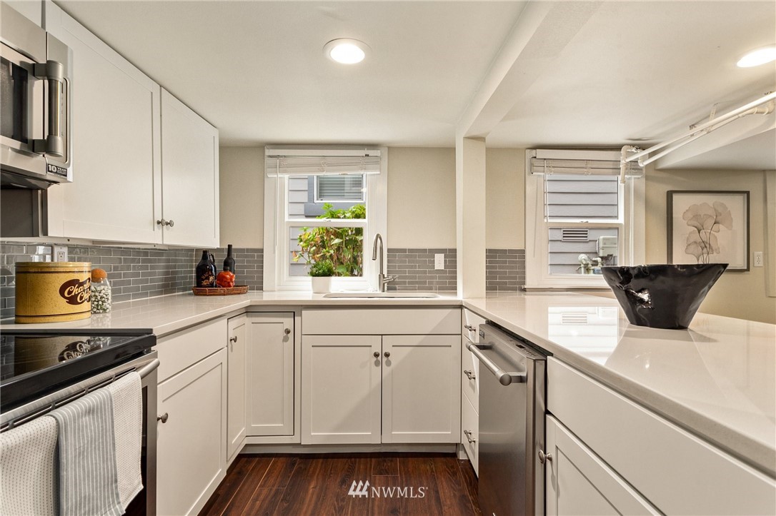 Fantastic Moss Bay home located in the heart of Kirkland - just blocks from Google, the waterfront, and everything Downtown Kirkland has to offer. Inside you’ll find an updated home with nicely sized rooms, desirable floorplan, and hardwood floors throughout the main floor. Chef’s kitchen has been updated with quartz counters and high end appliances. Both bedrooms downstairs have attached bathrooms. Upstairs you’ll find a bonus room that could be used as a bedroom plus an area that can be finished to add more sq.ft. Outside you’ll find a white picket fence, plenty of parking, and good size yard. Separate entrance for a mother in law area/home office in the basement with a second kitchen, bedroom & living area. Award winning school district.