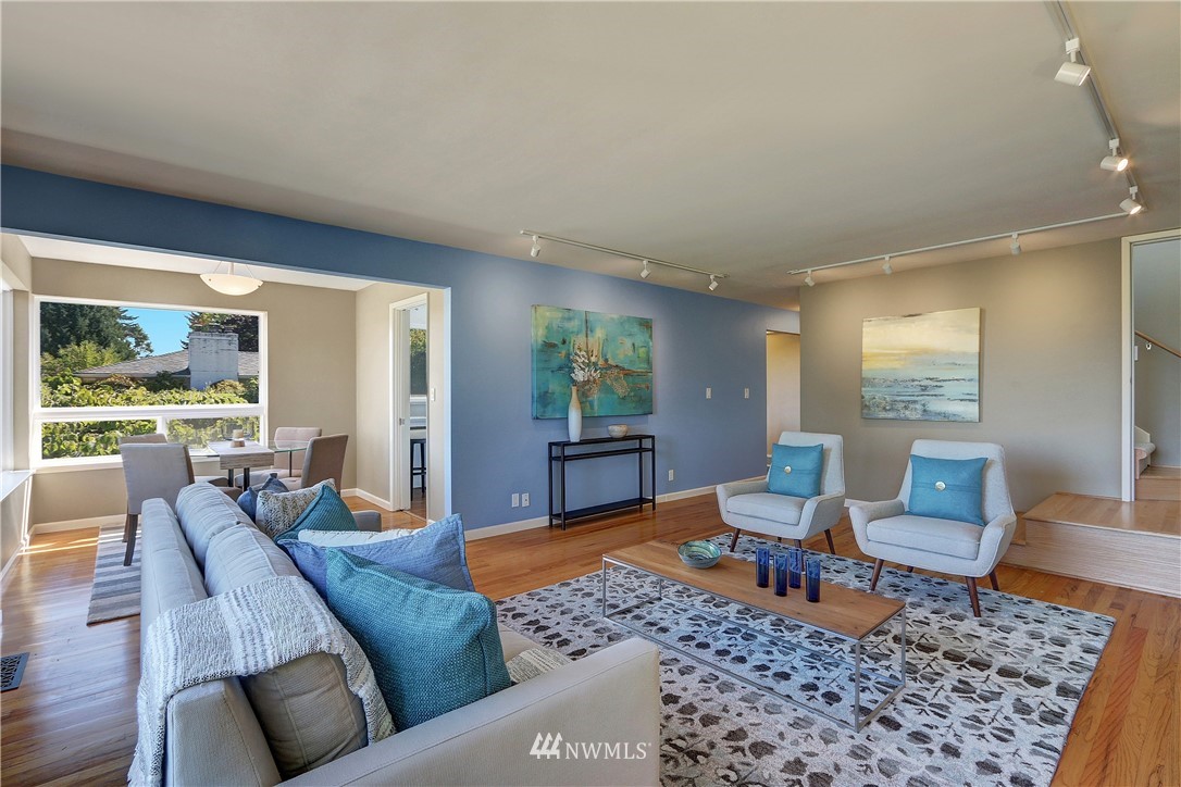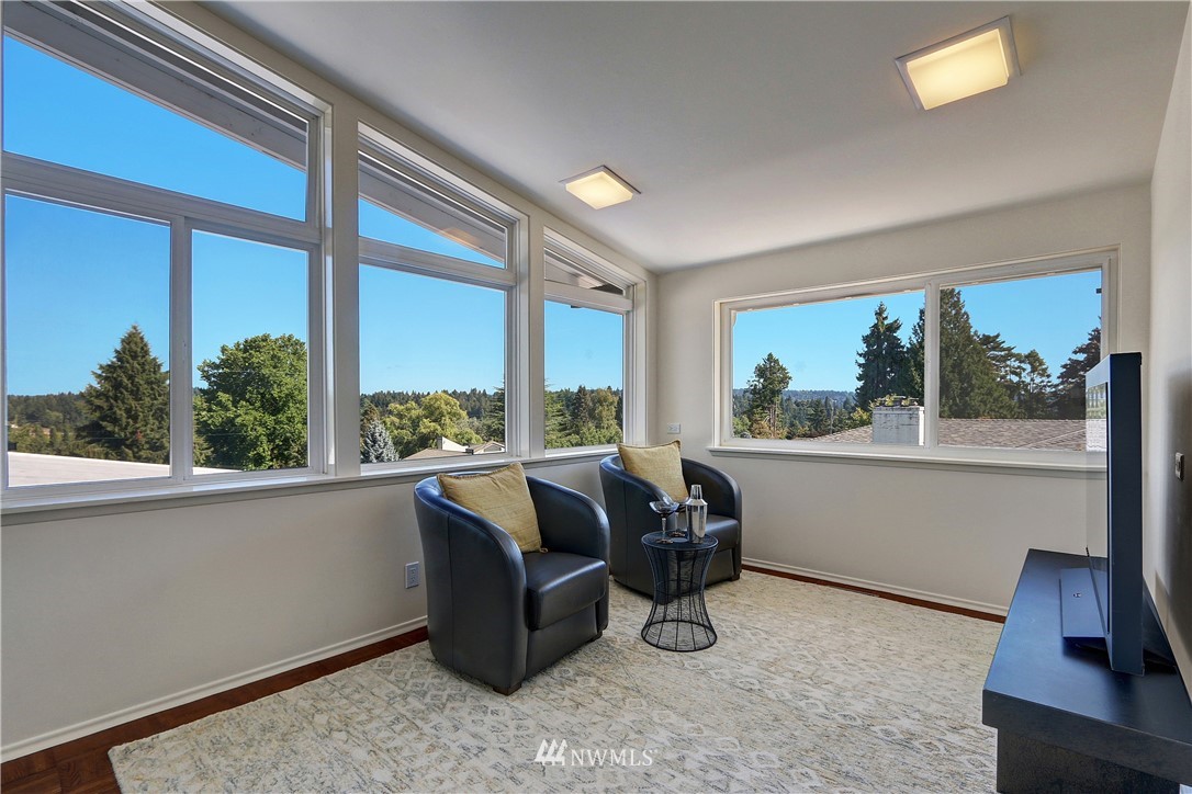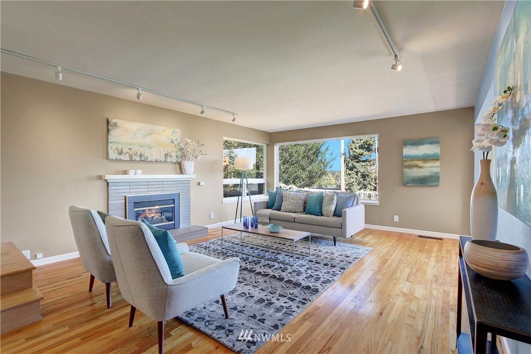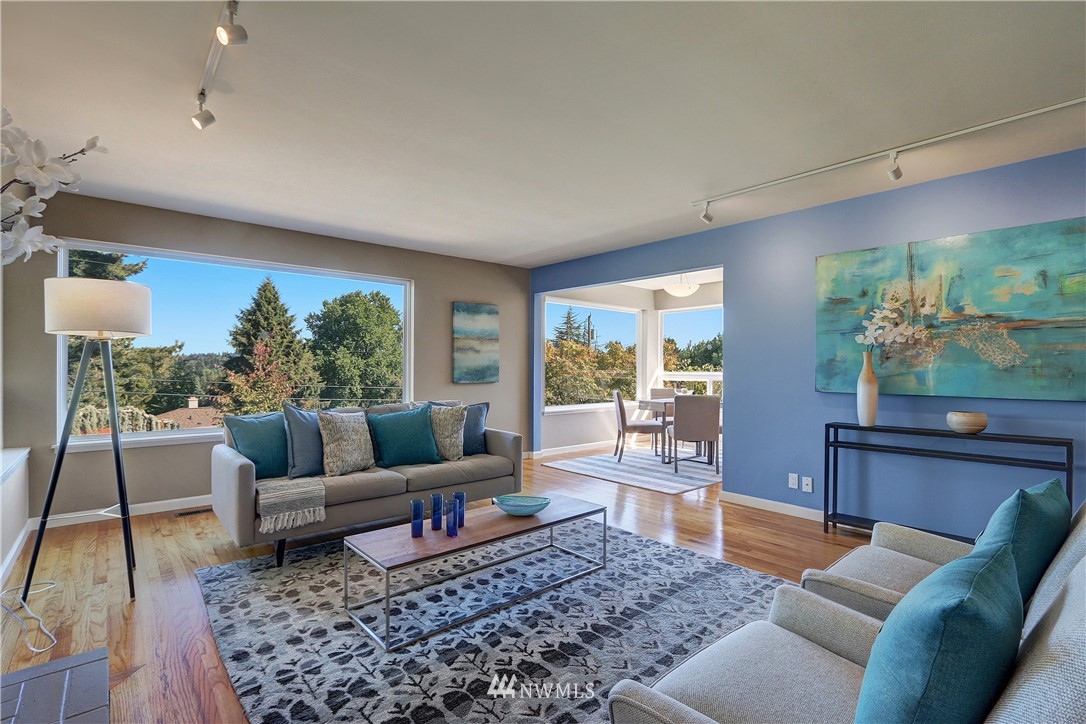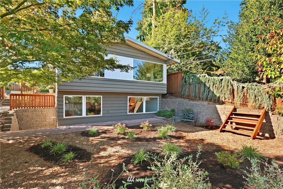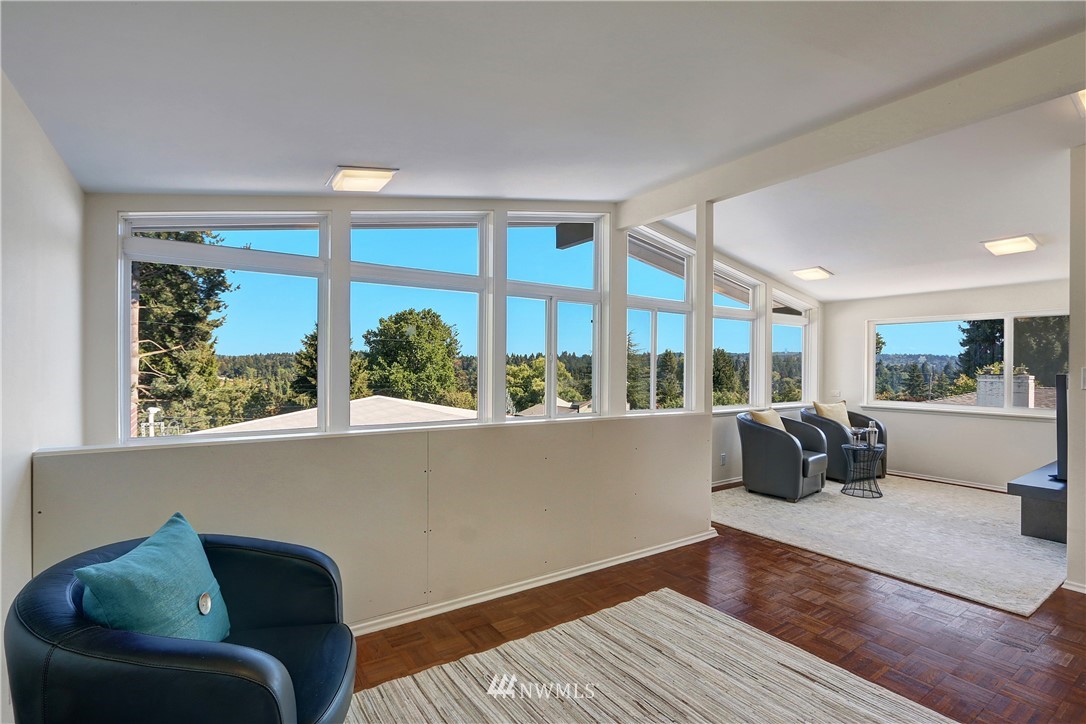 So much light from the moment you walk in! Sweeping north & east territorial views enhance all the public spaces in this well proportioned Mid-Century gem. Entertain gracefully with the circular floor plan & wall of windows through the kitchen, living & dining rooms. Multiple patios offer a variety of outdoor dining options. Recently renovated kitchen is exceptionally well appointed & has a great breakfast bar. The outlook gets even better in the light flooded 2nd story with a great room/office, bath & 2 generous bedrooms. From the lower level rec room with mini bar, refrigerator & a fireplace, enjoy more wall to wall windows & walk out to the level yard with mature plantings. Walk to park, community center, pool & tennis courts. MINT!