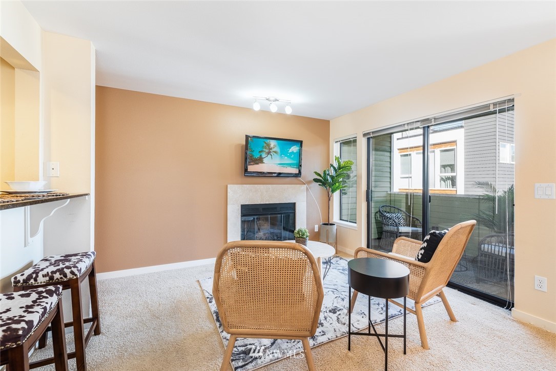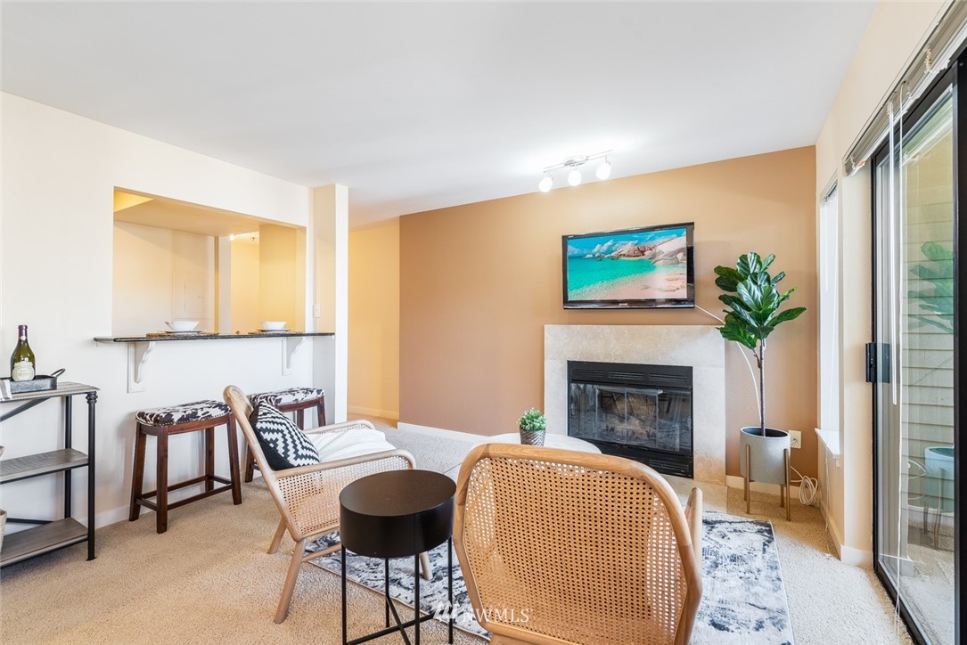 Beautifully updated this home is modern but still holds true to its old world charm. Located in the coveted GREENLAKE neighborhood, this end unit 2 bed/1.5 bath features an open kitchen with eating area, stainless steel appliances, granite countertops, large kitchen sink, wood burning fireplace, covered patio, and secure garage parking. Get cozy next to your wood burning fireplace and enjoy your morning coffee on your private balcony. All appliances stay including the flat screen tv. Close to Green Lake, restaurants, shops, bus routes, and a hop skip away from downtown Seattle. This well maintained condo unit has so much to offer! Don't miss out on the opportunity to make this gem your home. 15min bus ride to DT Seattle on the E-Line.