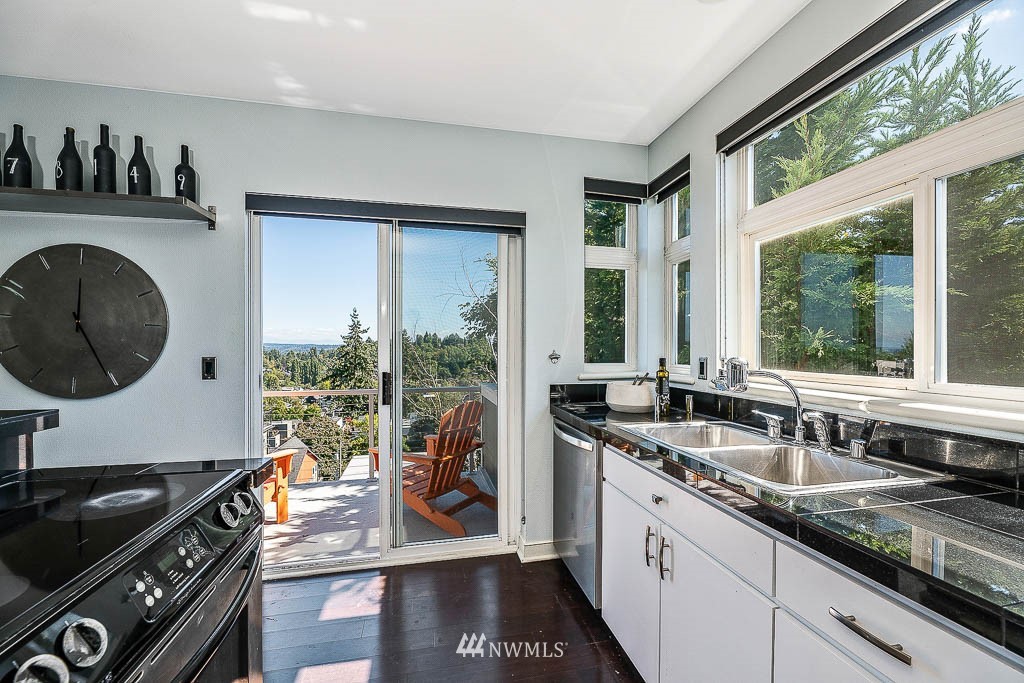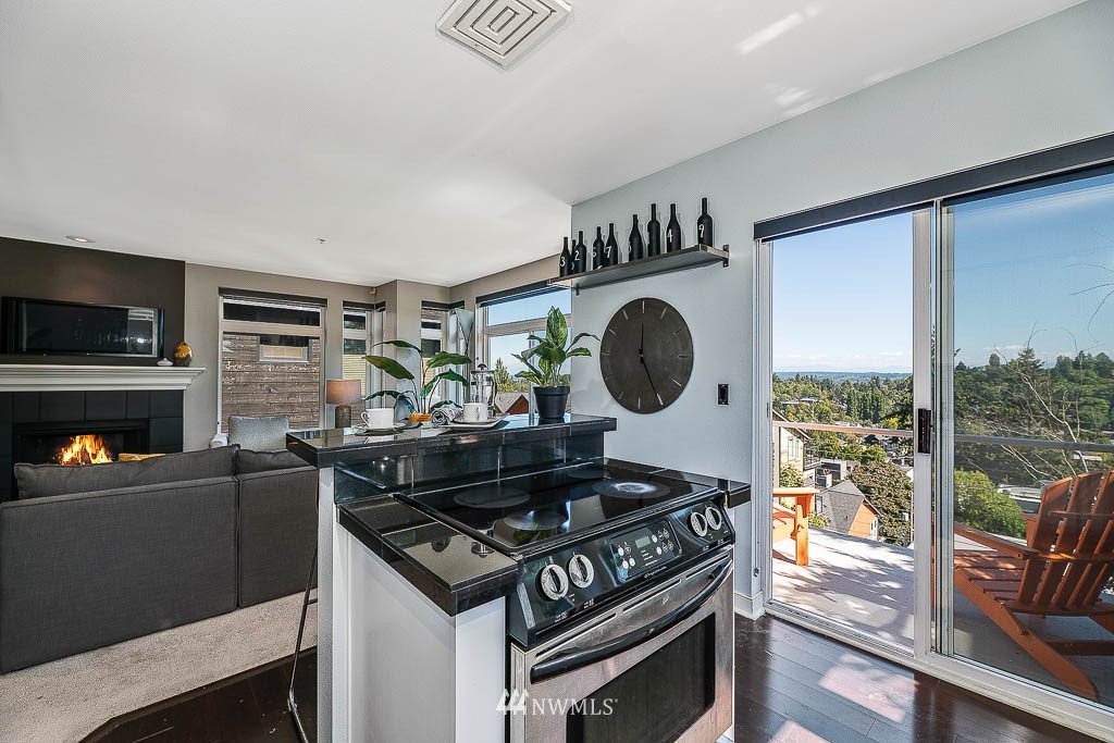Welcome home to magnificent Cascade, Rainier and lake views from this top floor, quiet condo in the center of it all! High ceilings and walls of windows light up this open space. Great deck for outdoor living. Lovely fireplace to curl up by in fall and winter. Thoroughly renovated, well-managed 4-unit building. 2 secure parking spaces, a storage unit, and no shared walls! Amazing coffee, restaurants, bars, and groceries all within a few blocks and 1 block to the new RapidRide G Line on Madison.