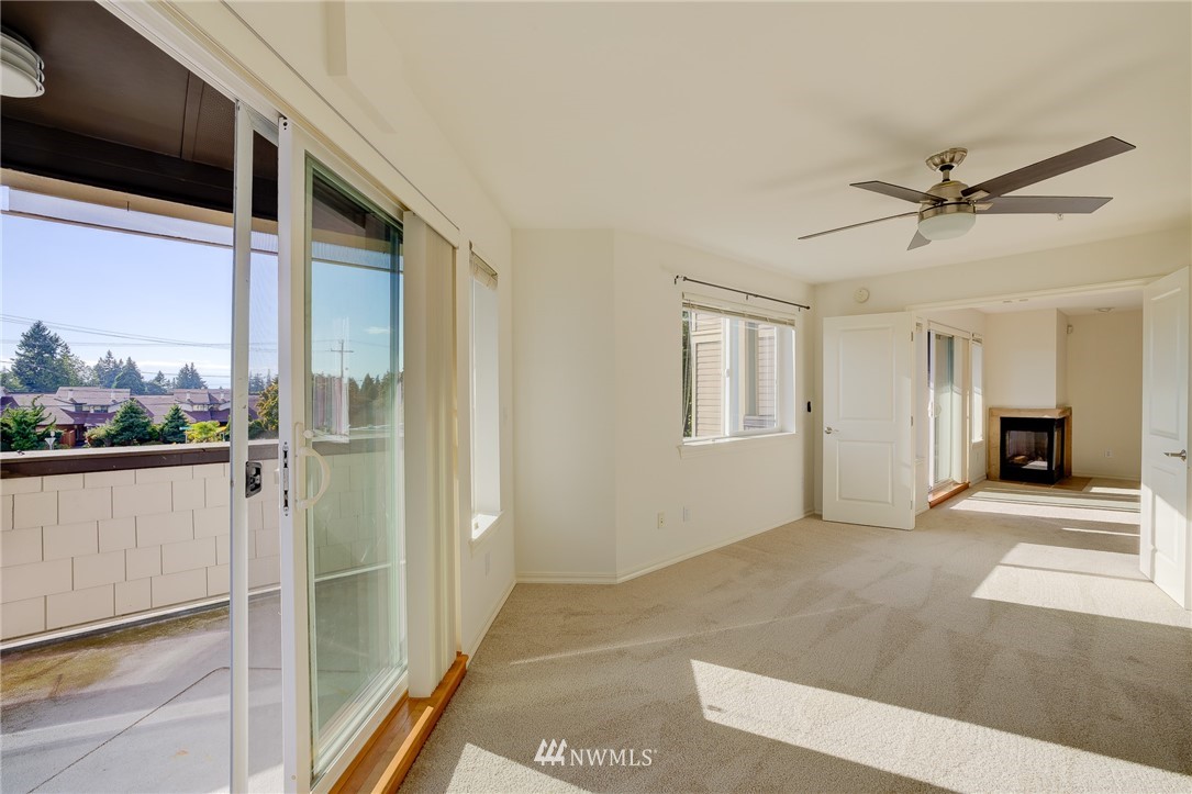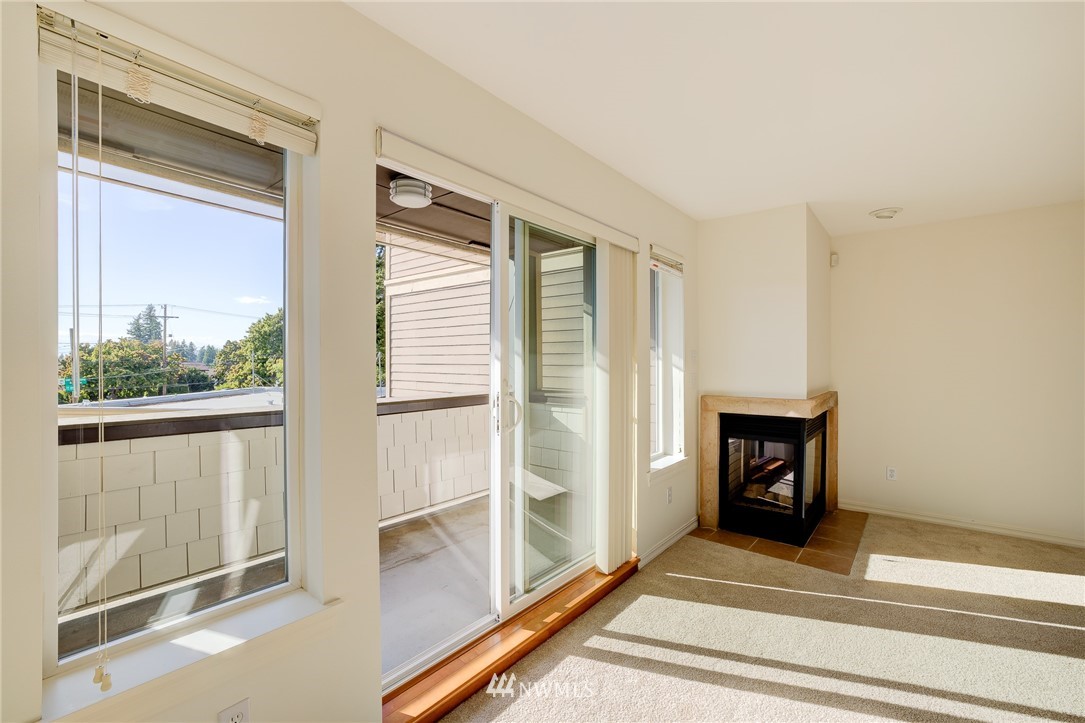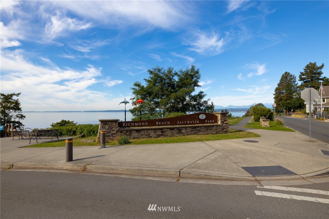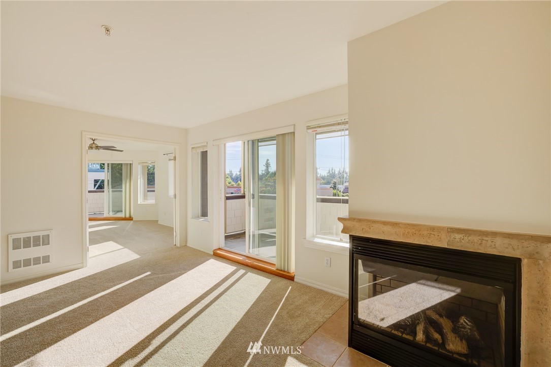 Wonderful Richmond Beach location, just steps to coffee, dining, Saltwater Park, Library, and much more. The Belmar, a friendly 11 unit condominium building. Large sun drenched corner unit with 2 outdoor decks and beautiful mountain views. Spacious living spaces define this home. Beautiful Chef's kitchen, open dining and living with cozy fireplace, plus large office/den/3rd bedroom. New paint and carpet make this home fresh and move in ready. Large master ensuite with soaking tub. Tons of closet and storage space. 2 convenient parking spaces plus large private storage unit in secure gated garage. This home is in excellent condition and simply has it all. Pets are welcomed.