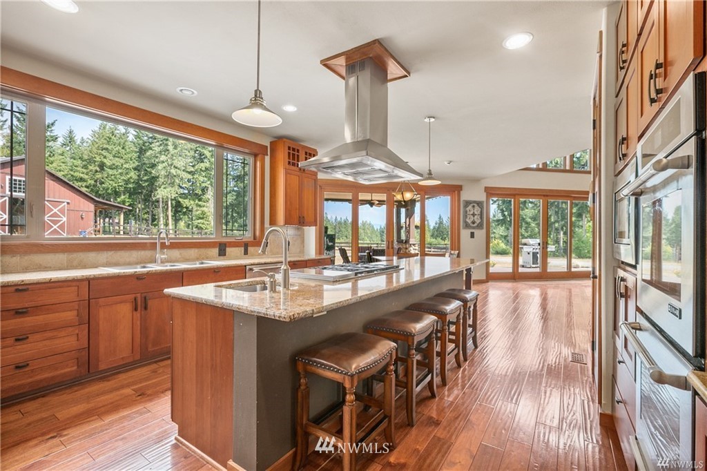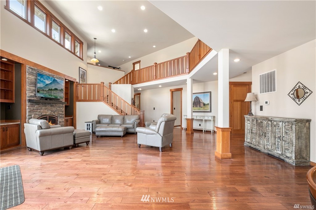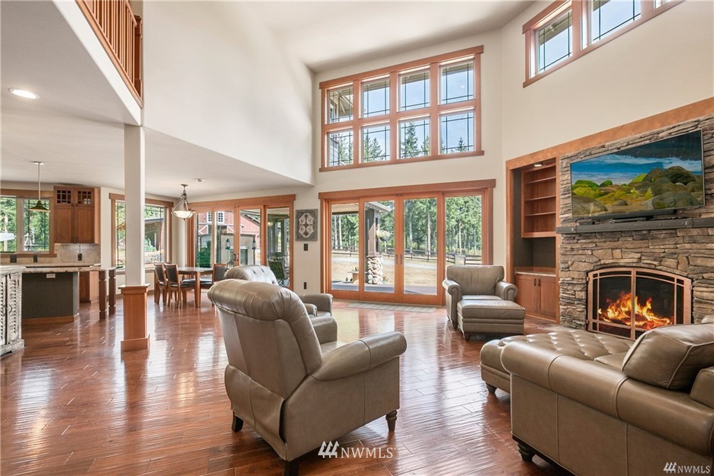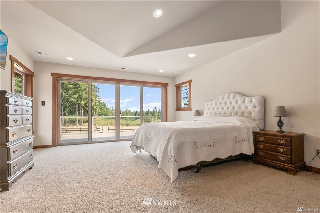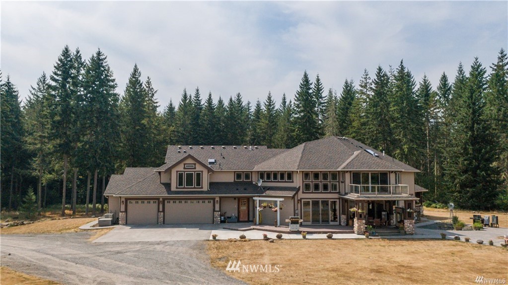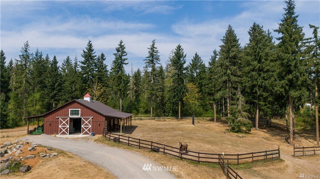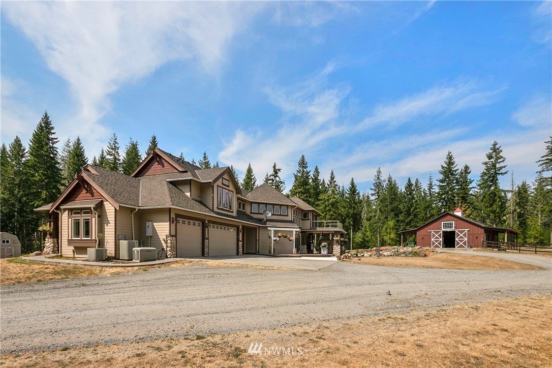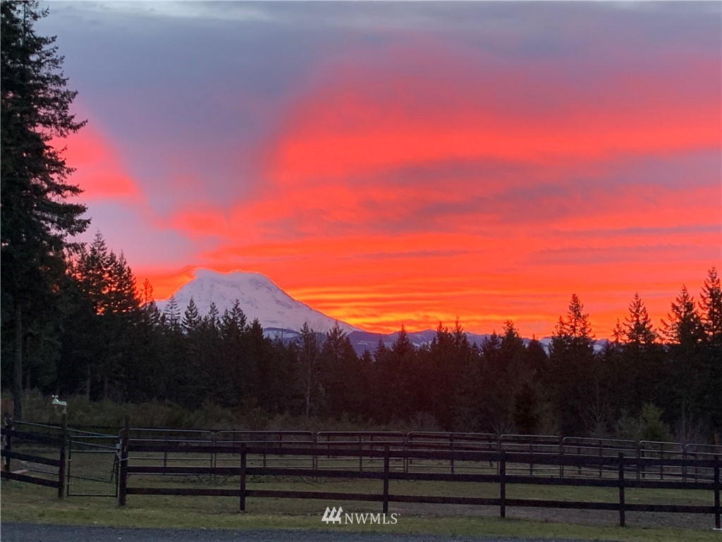 Stunning custom home on 20 acres in desirable gated community of Willow Lake! This home was situated and built so perfectly to take in the breathtaking views of Mt Rainier! The abundance of windows and large sliding doors allow you to enjoy the views from every angle and creates natural light throughout. This 4,788 Sq Ft homes features 5 bedroom suites, custom millwork throughout, a gourmet kitchen, soaring ceilings, grand double staircase, over 1,000 square ft attached garage & more! An equestrian lovers dream with a 1,728 Sq Ft 4 stall barn with tack room & round Pen! Community walking & riding trails!
