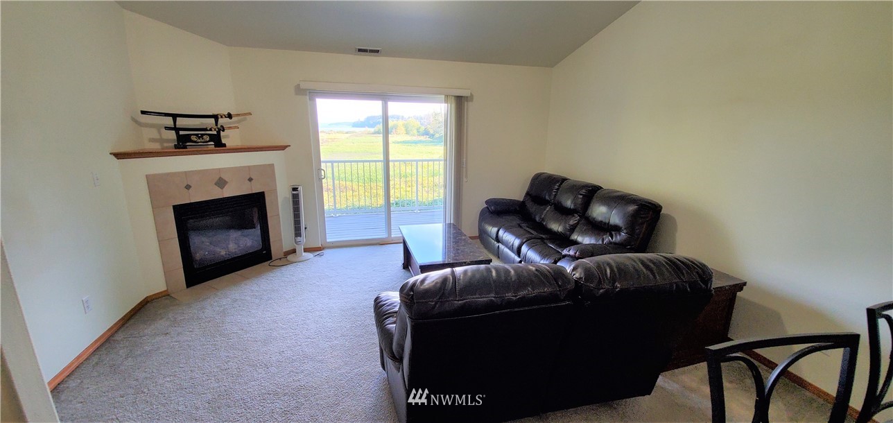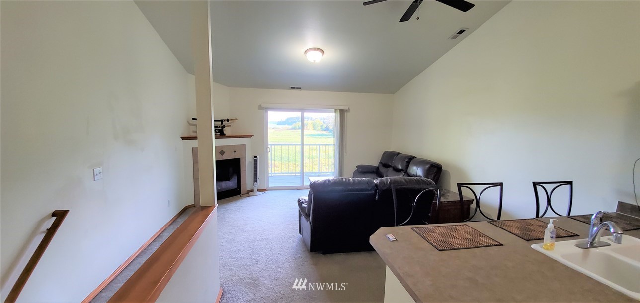 Unobstructed Bay & Island Views from all floors! Own your own home in this quiet community with incredible views. Featuring a townhome layout with the main living area on the top floor to maximize the views. An open concept kitchen/living area with cozy gas fireplace. Newer stainless-steel fridge & range included along with a new washer & dryer. The primary suite is located on its own level for max. privacy plus a huge bonus room w/closets & view on the lower level (could be a very large 3rd bedroom or extra living space). Garage is attached on main level. From the back yard step onto the Scenic Heights Trail & walk to beaches, shopping or just a stroll. This is your chance to own in a quiet, community conveniently located with water views!