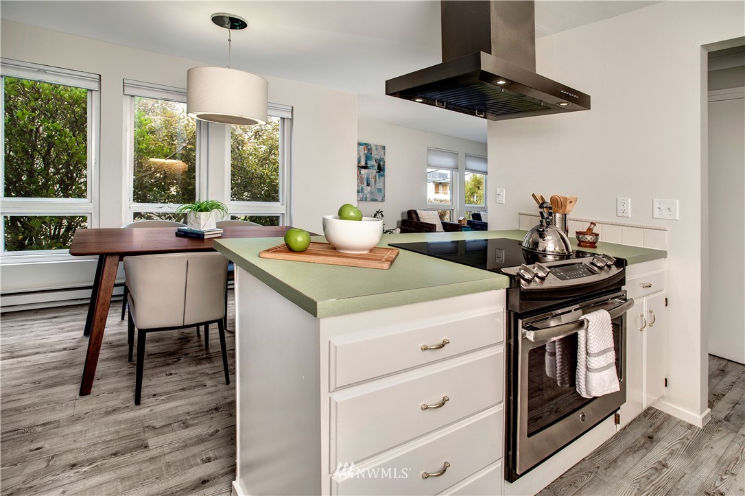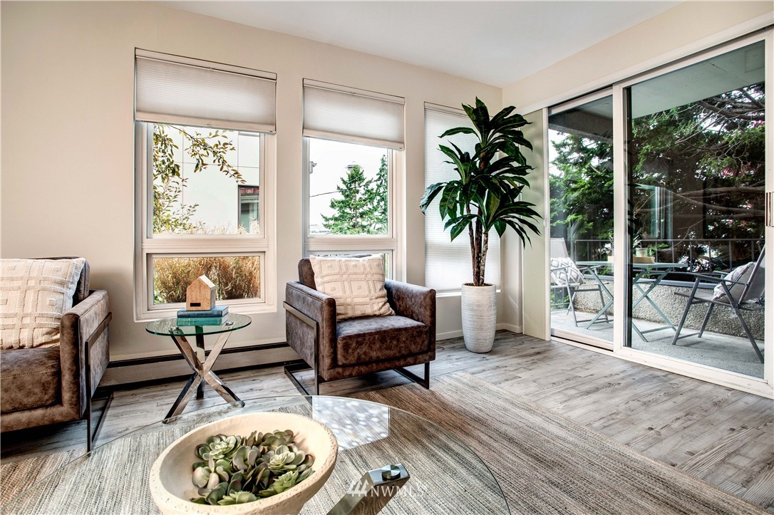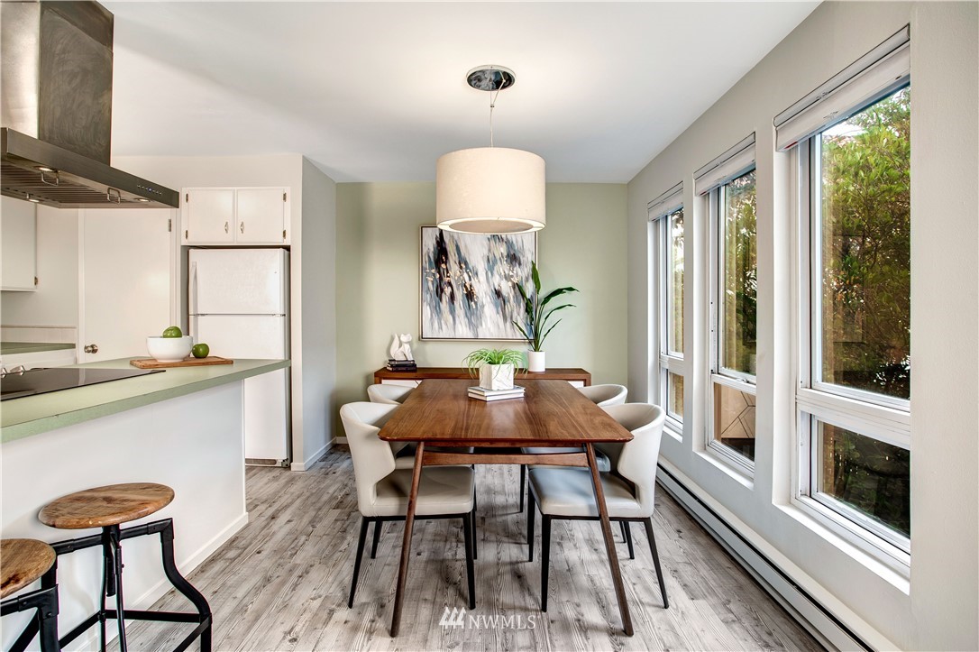 Most of us Seattleites believe you can never have too much light. With a bank of south facing windows stretching from the dining room into the living room, this delightful Queen Anne condo feels bright and cheery even on the gloomiest day. Beyond, all the light, the flow of this condo is simply ideal, from the entryway to the bedrooms to the kitchen/dining area to the spacious living room. There is plenty of space for you and your special someone to craft fabulous meals for your posse or for each other. As an extra plus, there is a Space Needle view deck right off the living room for you to get some outside time, anytime. Being located in lower Queen Anne means you are minutes to dynamic arts spaces, fabulous coffee shops & great dining.