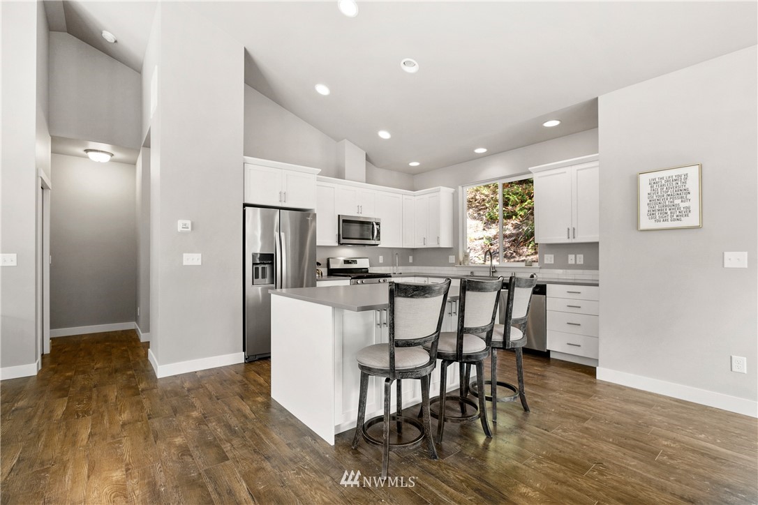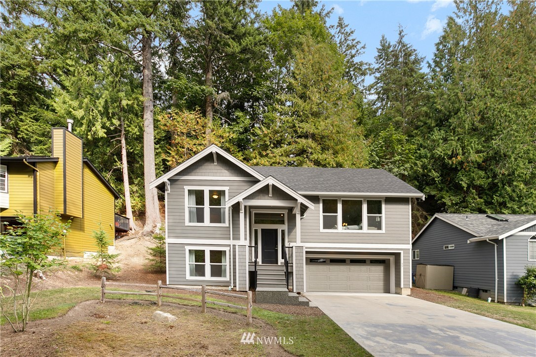 NEW construction home built in 2019 but barely lived-in before Covid prevented owners' vacation visits. The 3 bed/2.5 bath home has a great layout, is positioned on a bright level lot amongst the trees, and has a fabulous Great Room with vaulted ceilings & gas fireplace. The main floor owner suite has walk-in closet & dual vanity ensuite; a quality build from a known contractor. Kitchen has stainless steel appliances, beautiful custom cabinet package, large island with breakfast bar & solid surface counter-top. Deck access off the rear of the home expands the entertaining space to the outdoors. The lower level provides two more bedrooms, full bath & an oversized 2-car garage. Just minutes from the lake and Sudden Valley amenities.