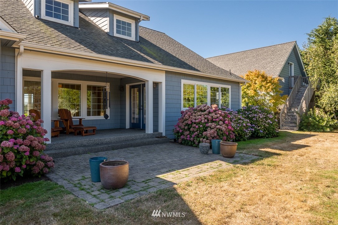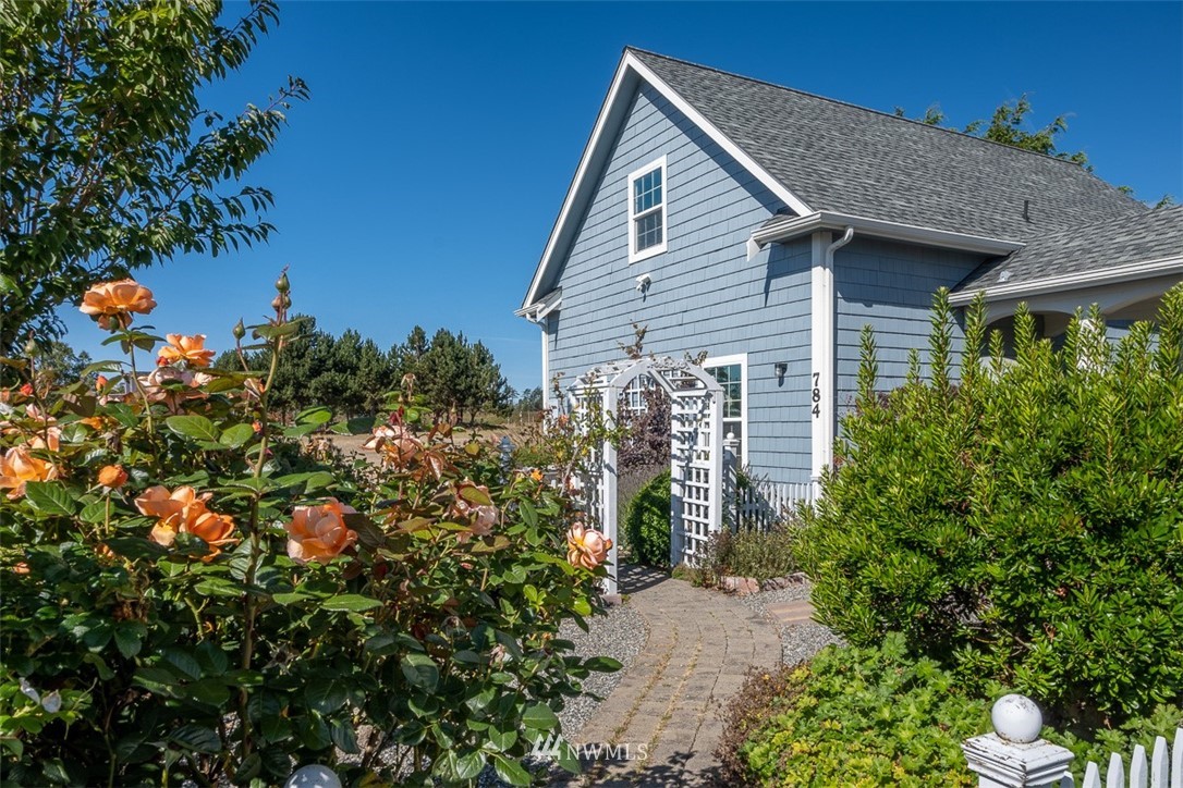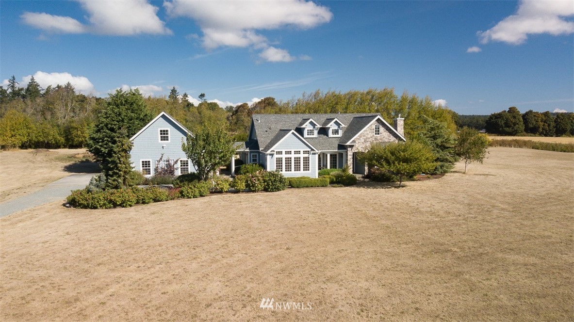 Country cottage on 5 acres in a very, very desirable Coupeville neighborhood. Enter through a rose draped trellis leading to a covered porch all with a prairie-ferry territorial view. This 2700- sq. ft. 3 bed 2.5 bath home has it all, incredible entertainers kitchen w/French doors to lg. covered patio, formal dining, bookcase flanked fireplace in living room, library w/fireplace & window seat, master on main w/garden view slipper tub, powder room, two guest rooms & large bath upstairs, lots of storage, garage w/workspace & windows on all walls, 544 sq.ft. unfinished area above, greenhouse, fenced raised irrigated garden, birders paradise, surrounded by incredible plants in an intimate landscape with many more delicious details to discover.