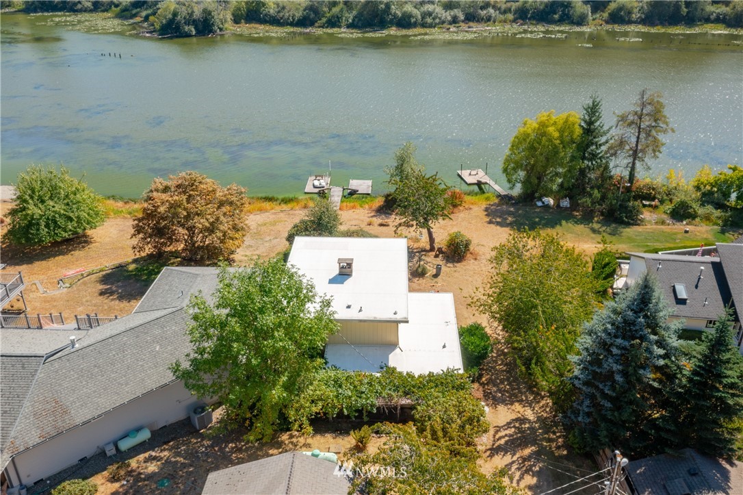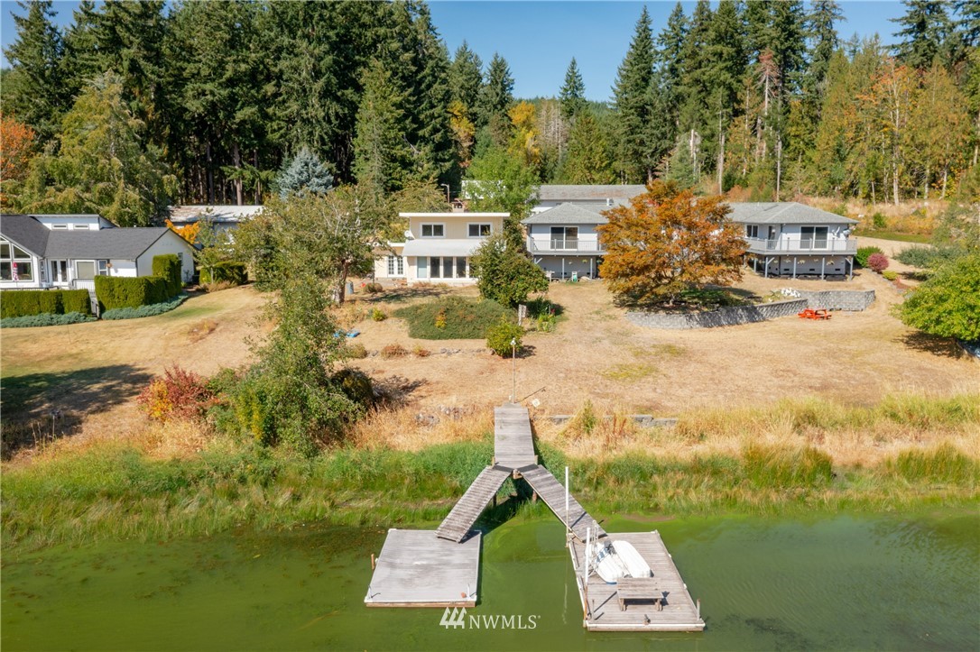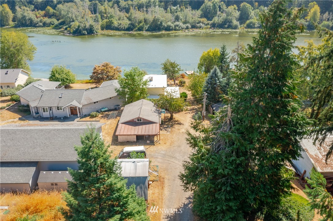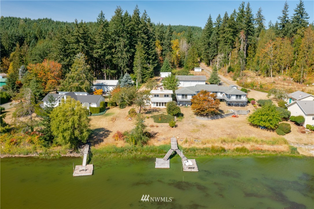 Welcome to this McIntosh Lake home in Tenino! Beautiful lake front home full of character features 61’ of water frontage, lake views and dock (shared ramp). Main floor features living room with laminate floors and tons of windows to enjoy the view! Cozy up to the fireplace with stone accents. Updated kitchen with stainless steel appliances. Main floor Owner Suite w/ French doors to deck and an en suite w/ double vanity, soaking tub & WIC. Main floor laundry room and half bath. Upstairs features full bathroom, two bedrooms and a den/office. Detached garage with additional workshop room, carport and older barn for covered storage. Close to I-5, Olympia, trails and more!