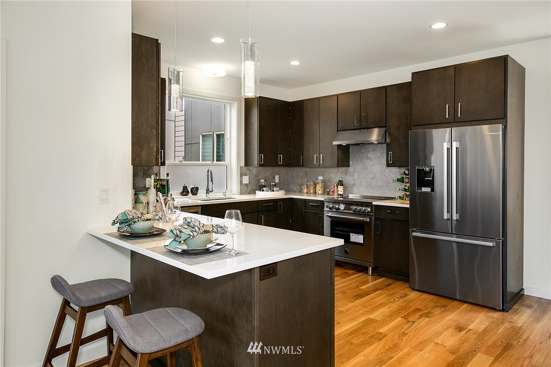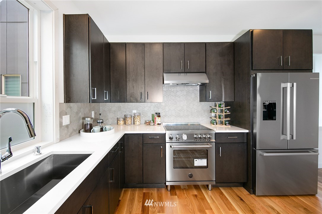 New Home in Fremont! Walk Score of 91 & 5 minute bike ride to Heart of Fremont & all it has to offer! Spacious Modern design with 1829 sq ft of living space plus 1 car carport. Entry level has 1 bedroom & a full bath; main floor features an expansive Great Room with real 3/4" oak hardwood floors and a very nice functional kitchen & eating bar, + powder room. Upstairs, Owner's Suite with 3/4 bath & walk in closet + a third bedroom with en suite full bath. Up to the large roof top deck for fun in the sun & sweeping views of City, mountains & territory. 1/2 block to direct Metro to Downtown. 2 blocks to Marketime Foods & numerous restaurants; Le Coin, Paseo, Pecado Bueno, Rock Creek & Fremont Bowl.......Built with Pride!!