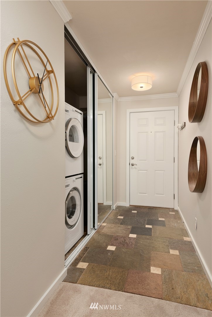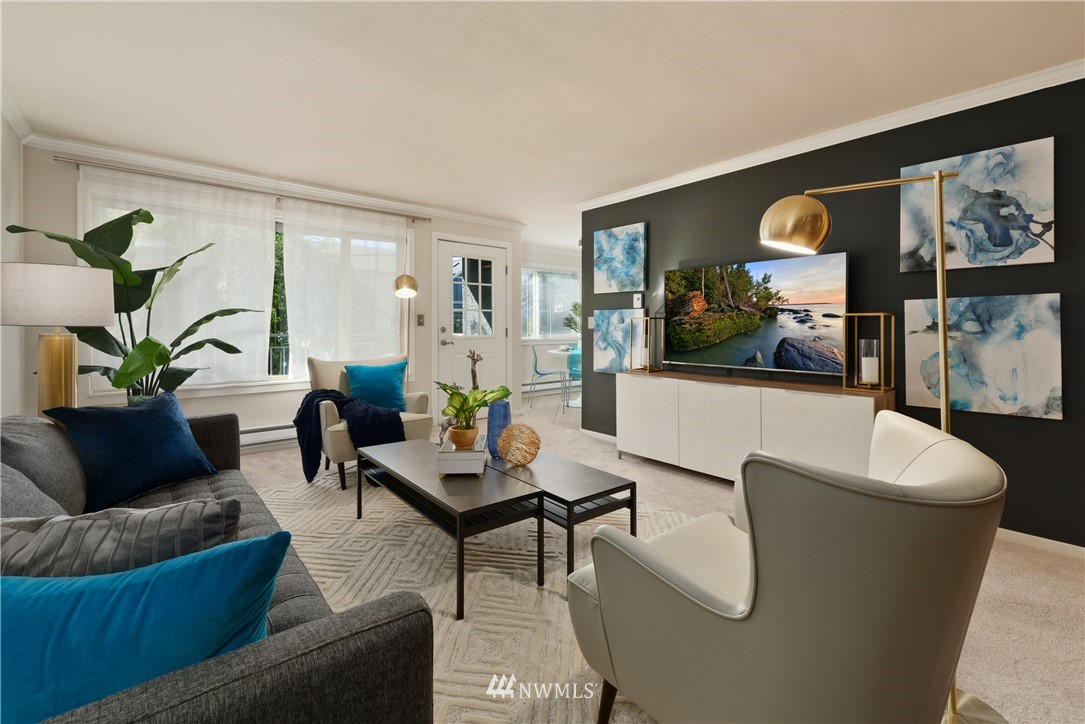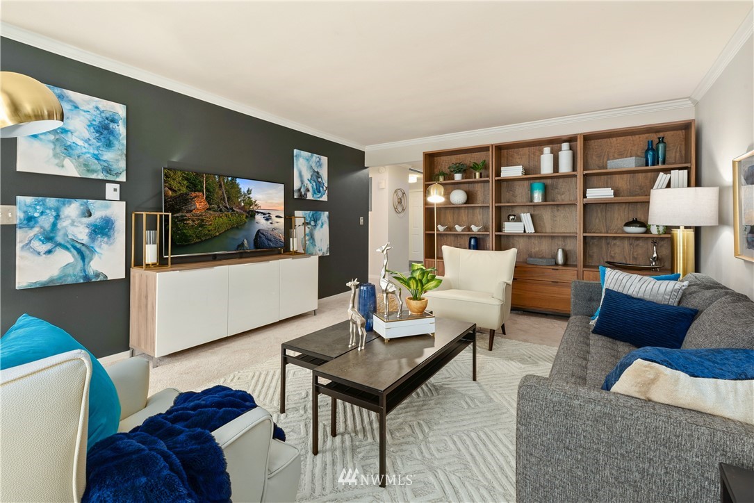Welcome to the heart of Ballard, where you have the luxury of being blocks away from some of the best markets, restaurants, shopping and breweries that Seattle has to offer. Love living at the Ballard Landing with 2 oversized bedrooms that make for tons of room, especially if you are still working from home, each of them feature huge closets! Both the kitchen and bathroom were recently refreshed with quartz counters and all new lighting. The stylish and functional wall of bookcases from Room & Board stay, as does the TV. You will look forward to long evenings on the deck watching the world go by and the sky change colors. Parking is assigned in the back of the building and extra storage in the basement. Pet friendly building!