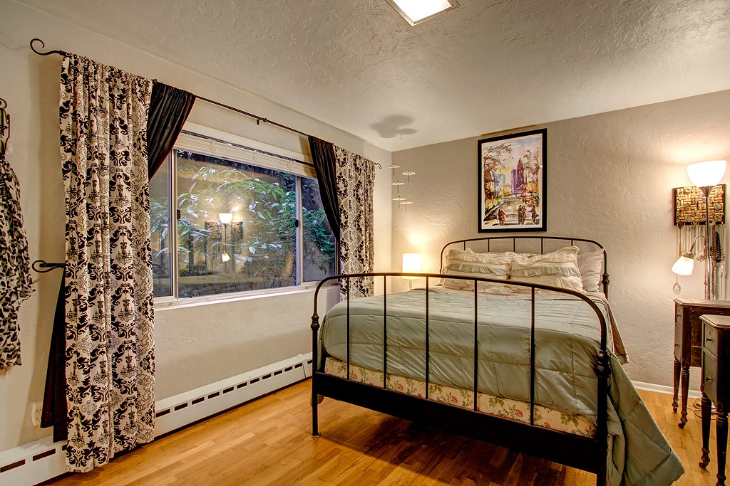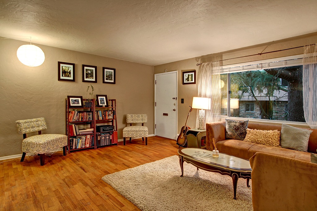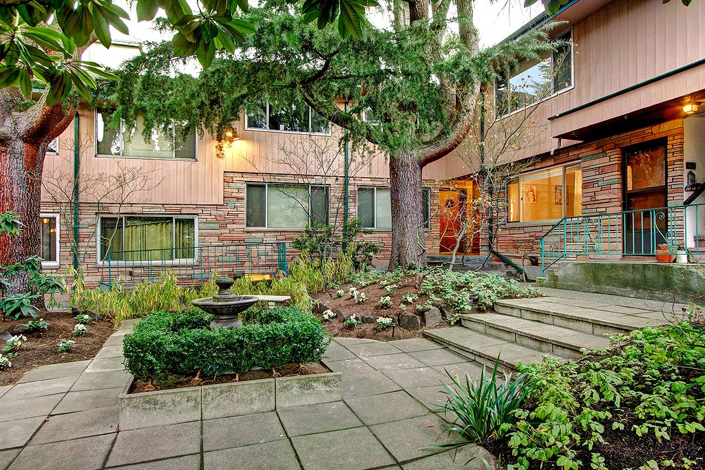 A timeless classic, the RoyCrest exudes mid century "cool". Spacious ground floor unit boasts large rooms w/ oak floors, a warm color palette and oversize double-pane windows. The retro tiled kitchen flows to a shared back patio to make for easy summer bbqs. Private garage w/ extra storage plus there's a secure storage locker in the basement. Just 3.5 blocks to the pedestrian and bike overpass to Myrtle Edwards Park. Just steps to all lower QA has to offer and an easy commute to S Lake Union.