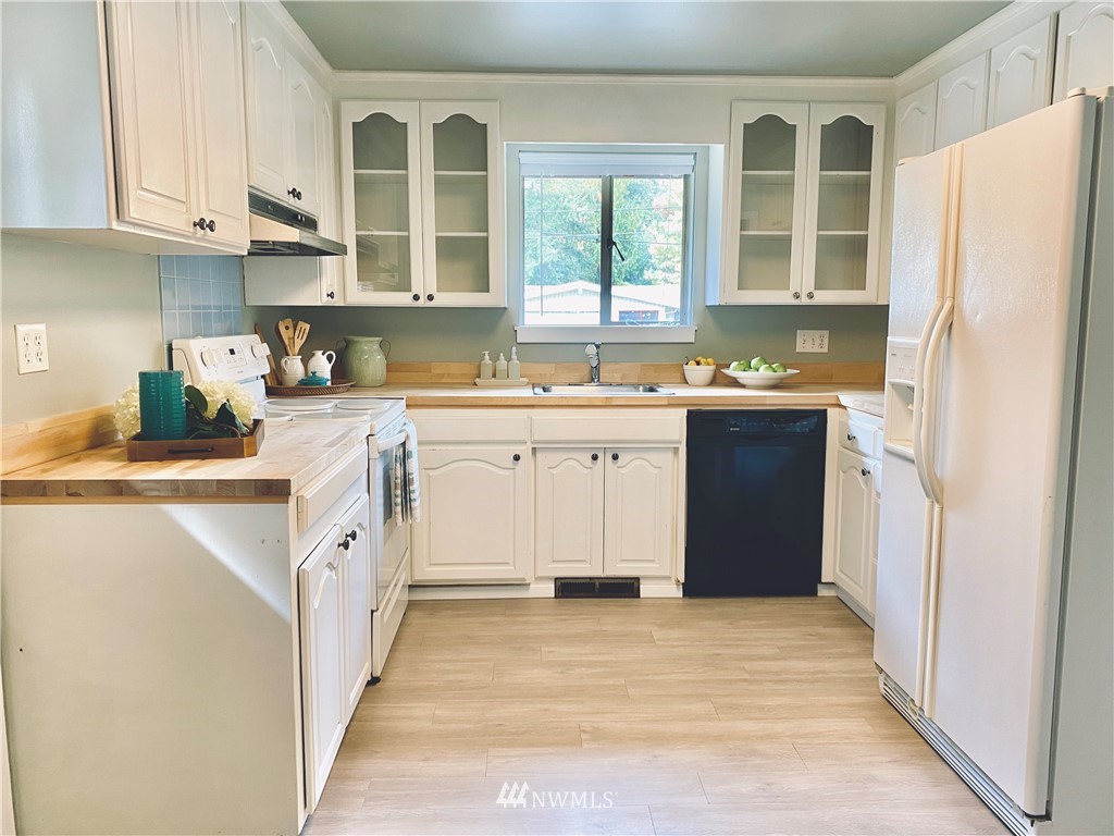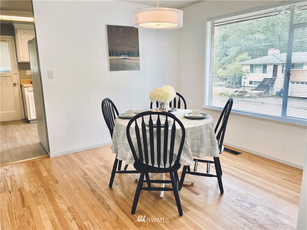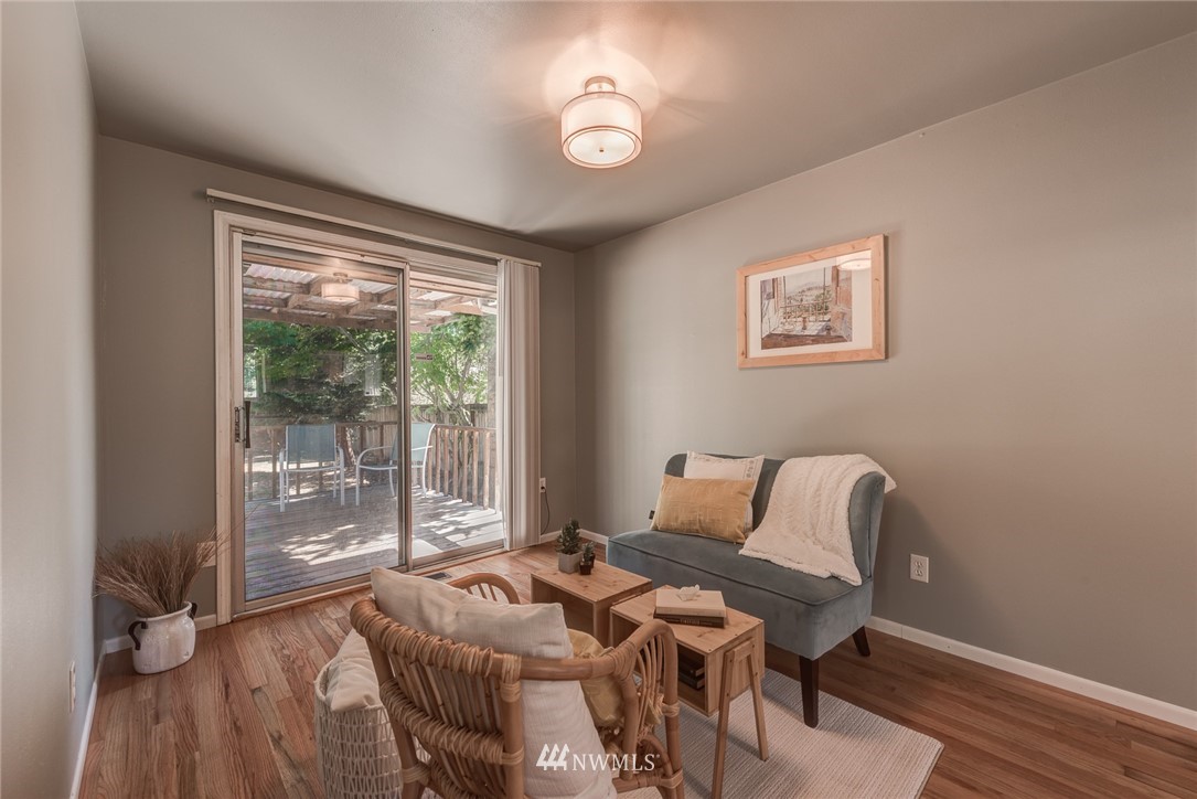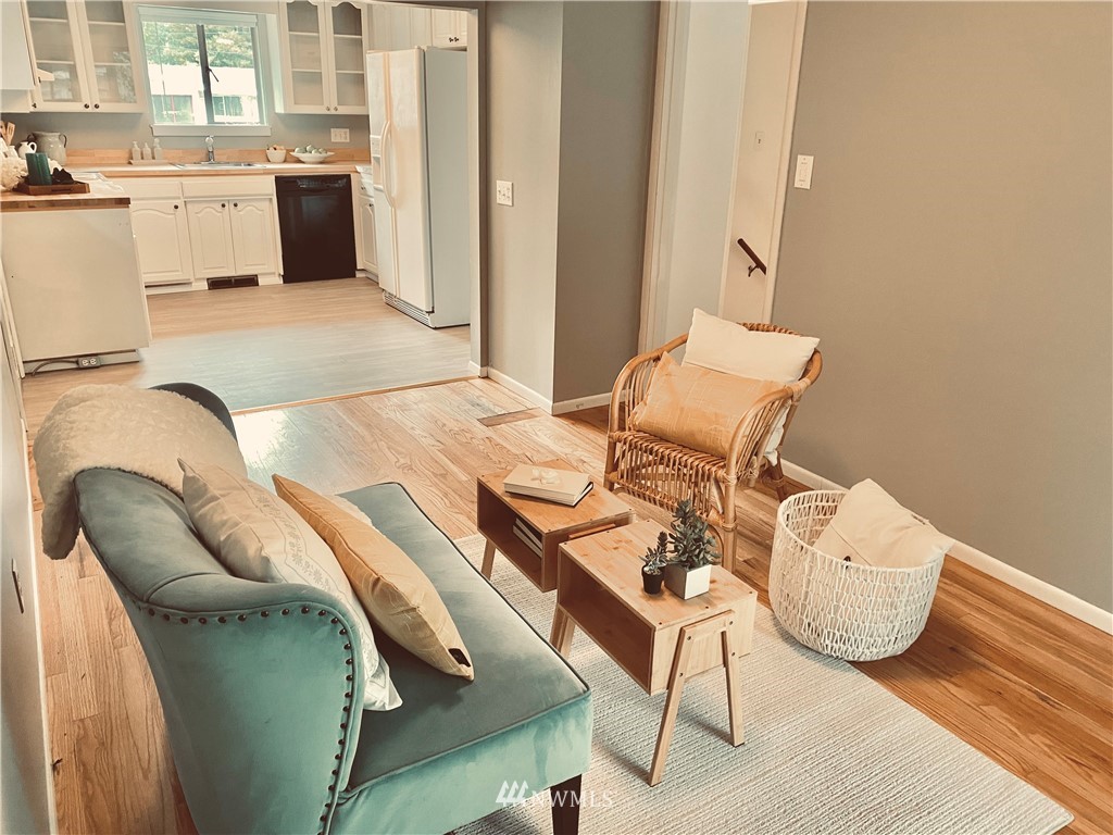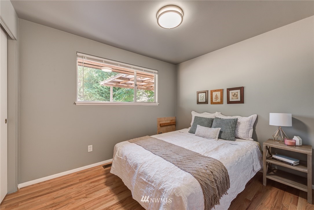 Move-in ready. This charming home in the sought-after Olympic Hills neighborhood is located on a quiet dead-end street. Main floor features a spacious living room w/ natural light & cozy wood-burning fireplace, kitchen w/ new butcher block countertops, generously-sized 2 beds, 1 full bath, family room & dining room. The daylight basement is fully-finished with a large bonus/rec room & fireplace w/ extra room space for an office, 1 bed, 3/4 bath & spacious utility/laundry room. Beautiful original oak hardwood floors on main floor, all new carpet downstairs & new light fixtures throughout! Fully fenced level backyard, private & perfect for gardening/hosting. Close to shops/restaurants/I-5/golf course/newly opened Northgate light rail & more.