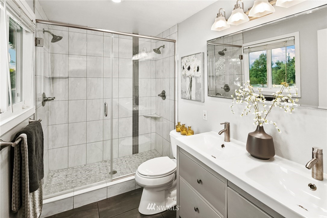 Totally remodeled 2,794sf home just waiting for you!! Beautiful finishes throughout this 4 Bedroom split entry home. New flooring and trimwork, new blinds, fresh paint -better than new! Master bedroom on Upper level with elegant Master Bath. 2 more Bedrooms and a Full Bath on the Upper level. On the Lower level, enjoy the spacious Bonus Room with wood burning Fireplace & Slider to Patio/Backyard. Use the other half of the Lower level as a MIL with 4th Bedroom, full Bath, Storage room, & large Extra Finished room that could be used as a Kitchen/Living area. Extra Finished room could also be a large Office, Workout or Craft room, too! Tons of options!! Fully fenced. Kent School District. Wonderful neighbors & quiet cul-de-sac. Welcome home!