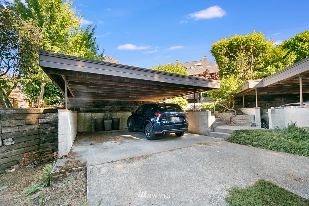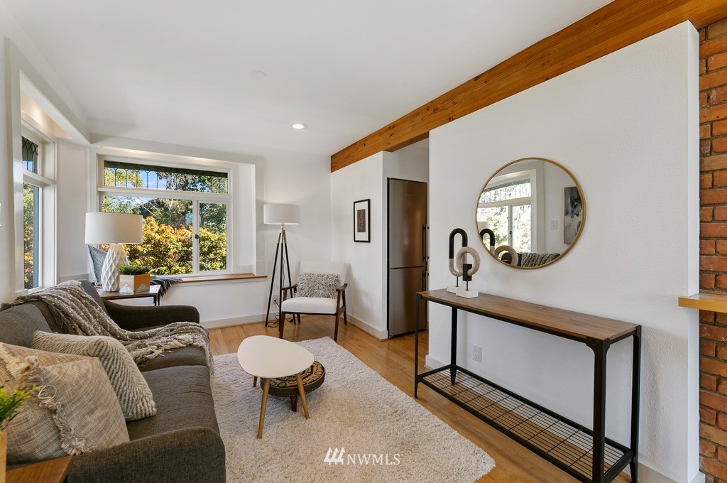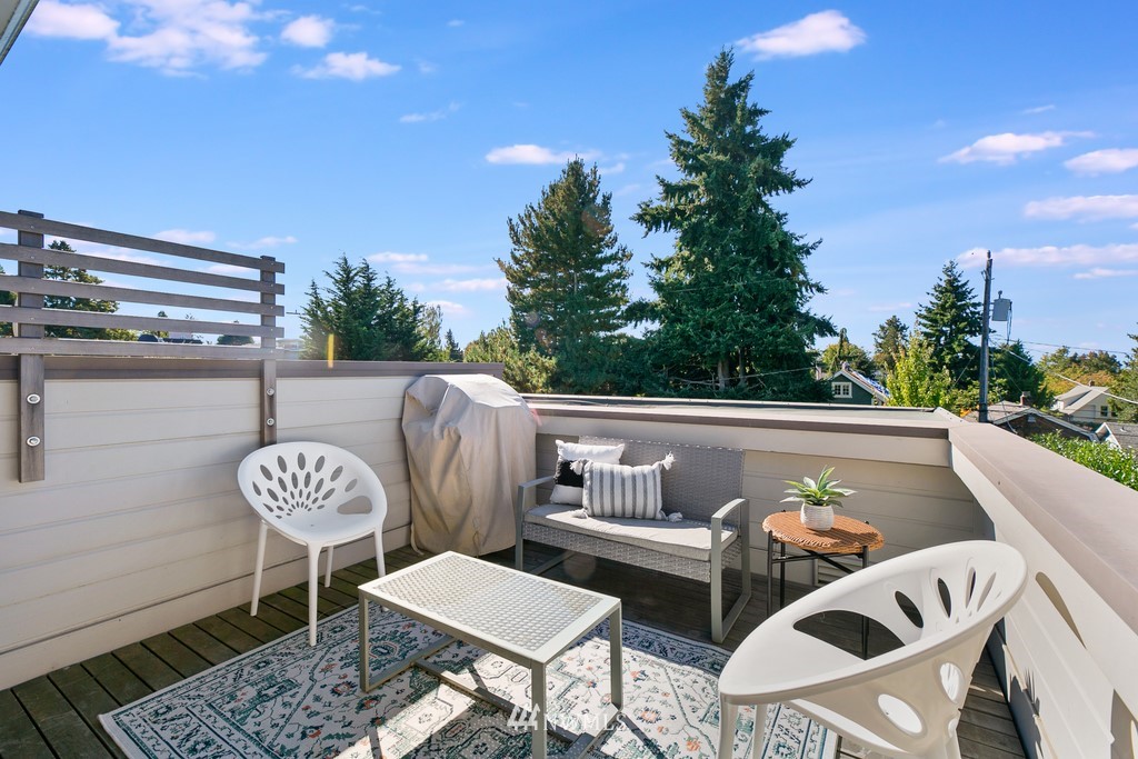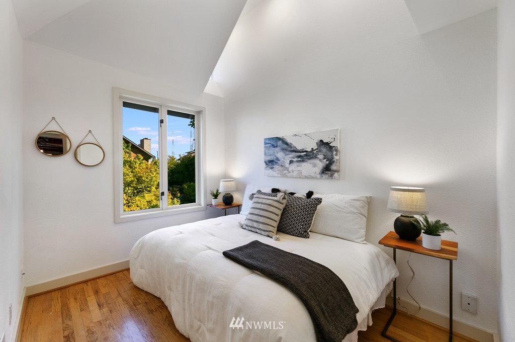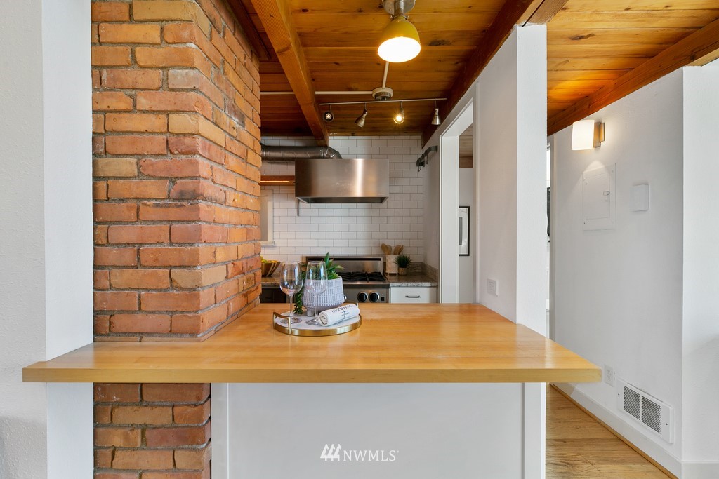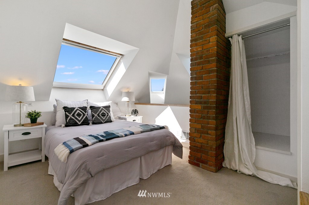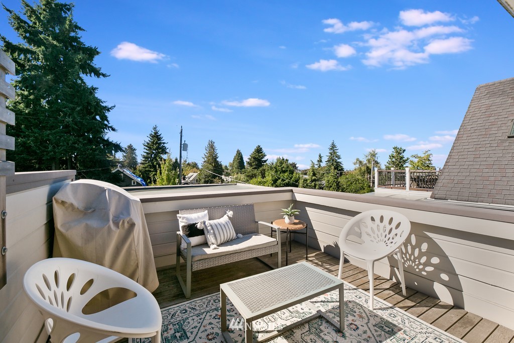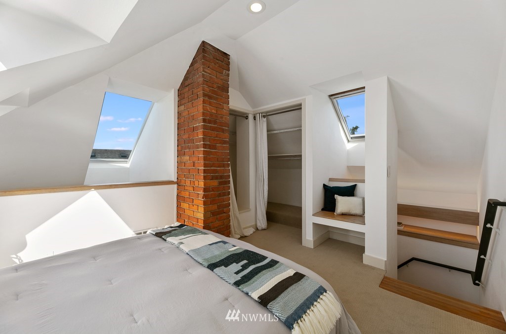 Exceptional living in Upper Queen Anne within the revered Janus House. Lives like a penthouse & SFH, on a gorgeous manicured 4th Ave W. You'll relish exposed wood-beamed ceiling & stairs, oak hardwood floors, bespoke lighting, custom built-ins, glowing with natural light. Modern updates highlight slab countertops, Miele & Liebherr stainless steel appliances, BlueStar Gas range, and dialed main en-suite. Fleetwood-style Nano wall panel draws you out to a private teak terrace to revel in Olympic western views & PNW sunsets. Supremely walkable to Kerry (Frasier view) Kinnear Parks, QAFM, Met Market, Trader Joe's, Flore & 5-Spot. Designated (covered) off-street parking (easy EV), added shop/storage space, heart of the Emerald City, Queen Anne!