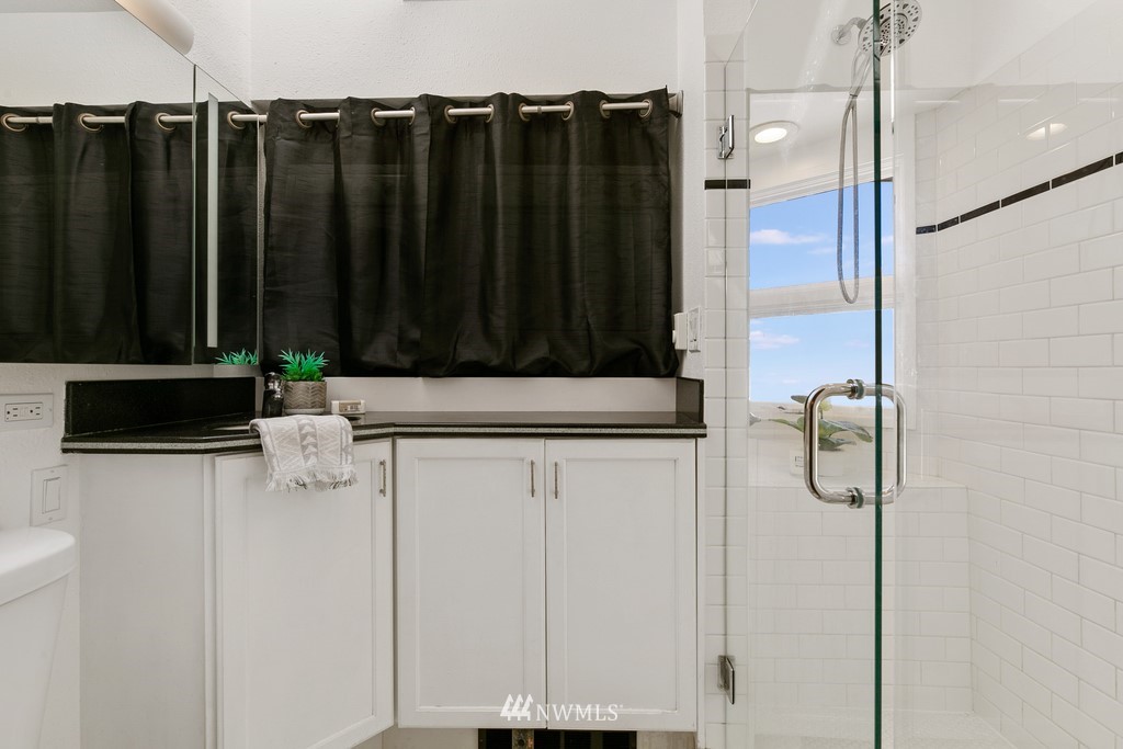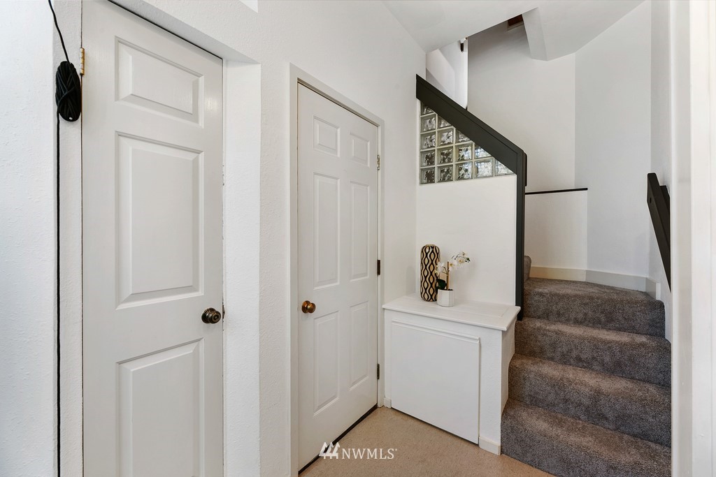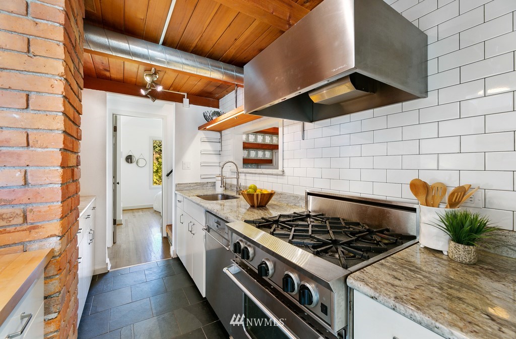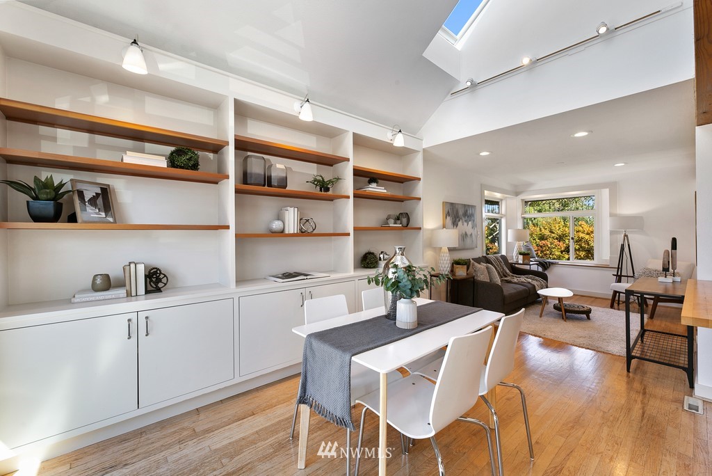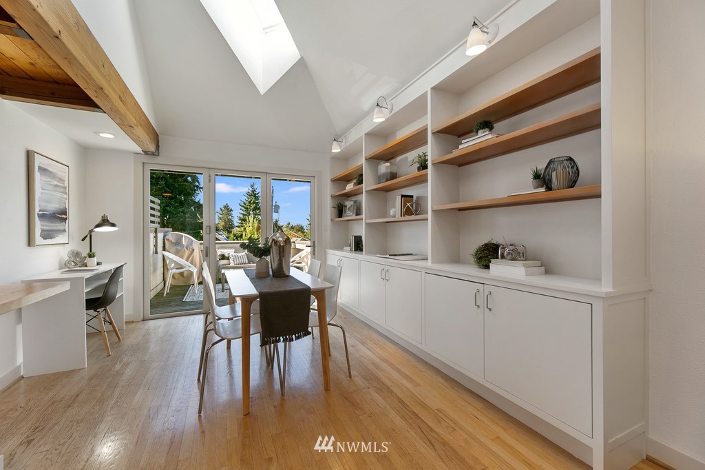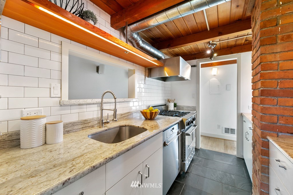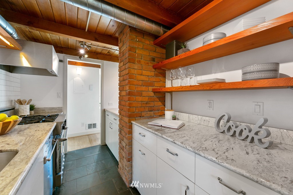 Exceptional living in Upper Queen Anne within the revered Janus House. Lives like a penthouse & SFH, on a gorgeous manicured 4th Ave W. You'll relish exposed wood-beamed ceiling & stairs, oak hardwood floors, bespoke lighting, custom built-ins, glowing with natural light. Modern updates highlight slab countertops, Miele & Liebherr stainless steel appliances, BlueStar Gas range, and dialed main en-suite. Fleetwood-style Nano wall panel draws you out to a private teak terrace to revel in Olympic western views & PNW sunsets. Supremely walkable to Kerry (Frasier view) Kinnear Parks, QAFM, Met Market, Trader Joe's, Flore & 5-Spot. Designated (covered) off-street parking (easy EV), added shop/storage space, heart of the Emerald City, Queen Anne!