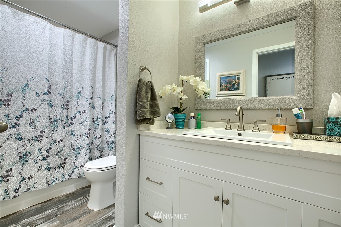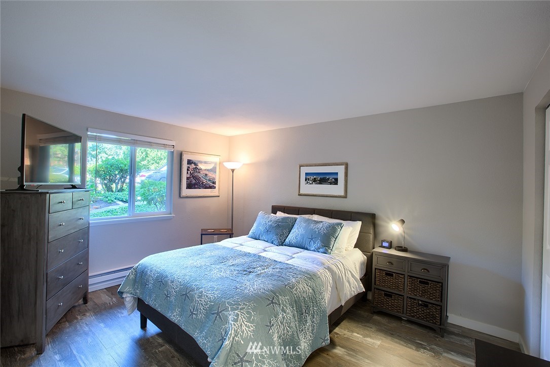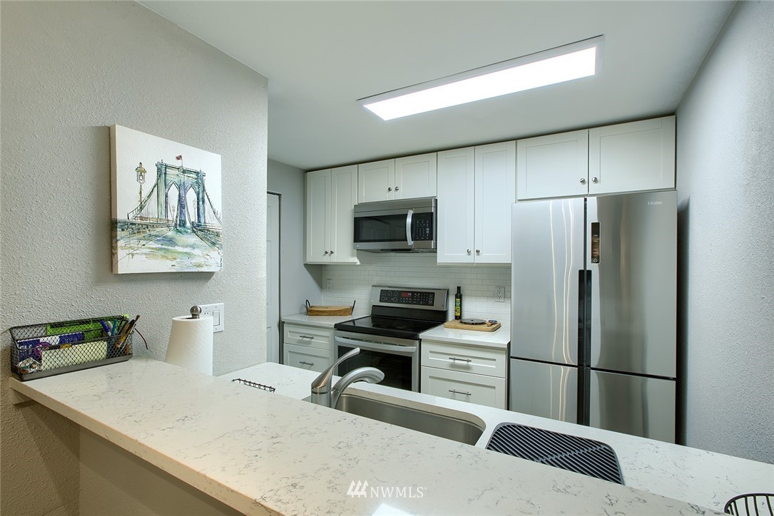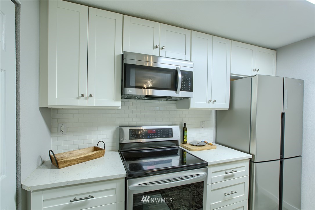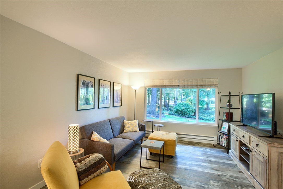 Large, updated, well-maintained corner unit in a highly desirable location. Serene, wooded location close to everything. Nicely appointed. Great investment opportunity for first time homebuyer or investor. Spacious, open-concept living with many inviting amenities. Updates include flooring, kitchen, bathroom, interior paint, newer roof and more. This property offers over 1,000 sq. ft. of living space including 3 spacious bedrooms with a walk-in master closet. All appliances stay. Large storage space attached. HOA covers water, sewer & garbage. Complex offers sports court, cabana, & outdoor pool. Minutes away from the shopping mall, easy access to freeways, restaurants and other amenities. Close to both Seattle and Tacoma.