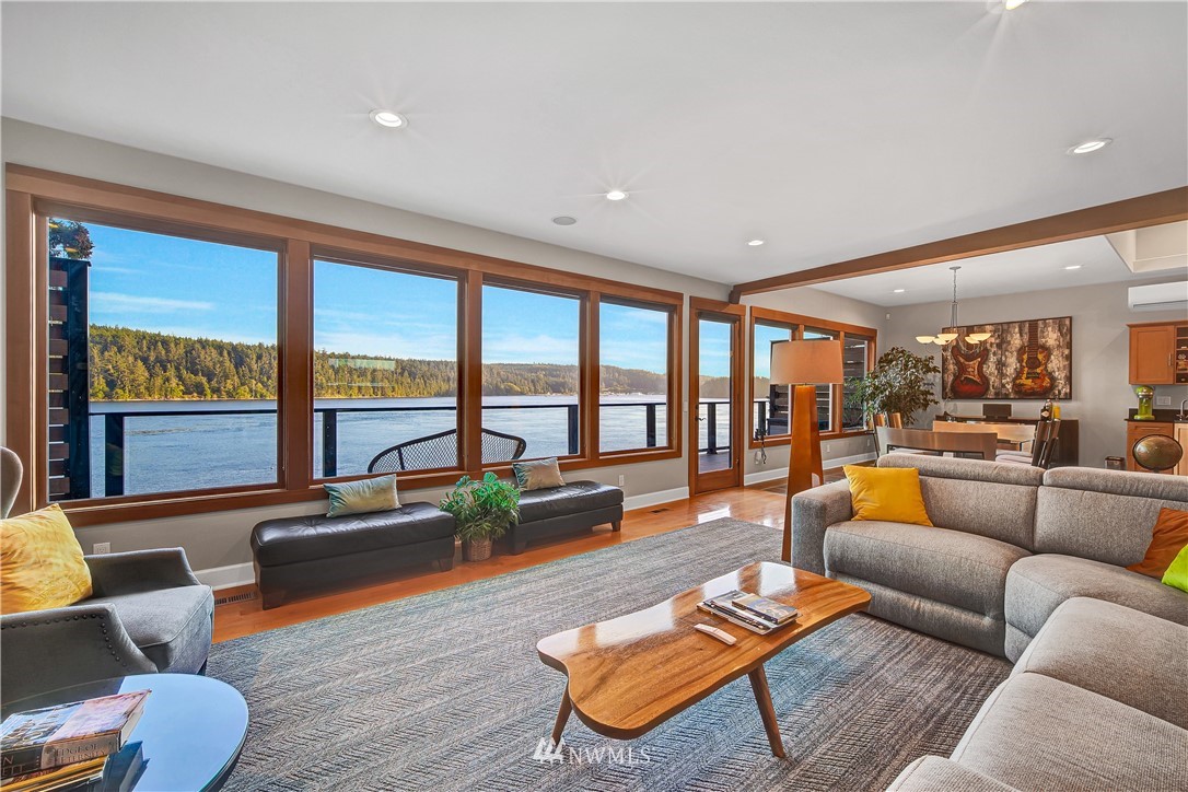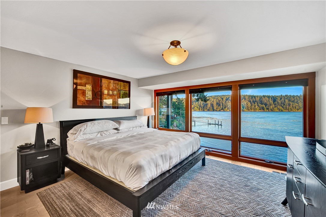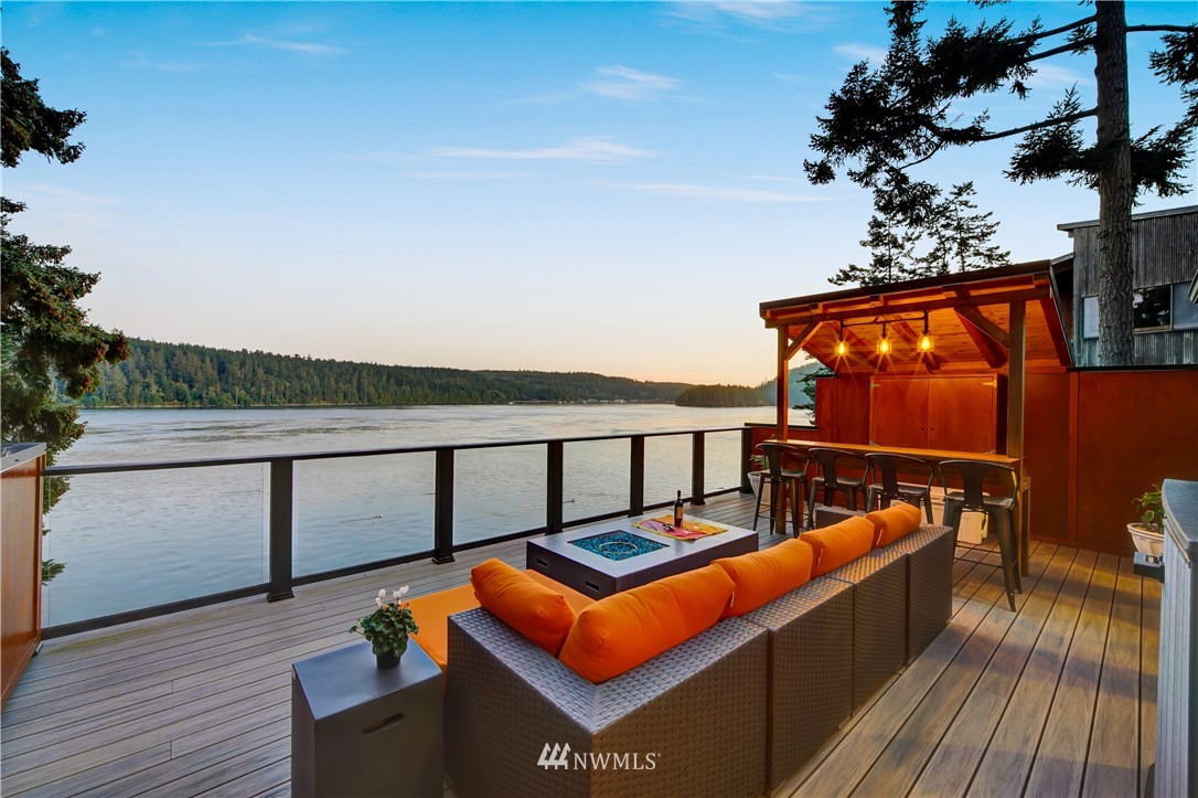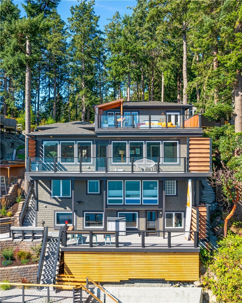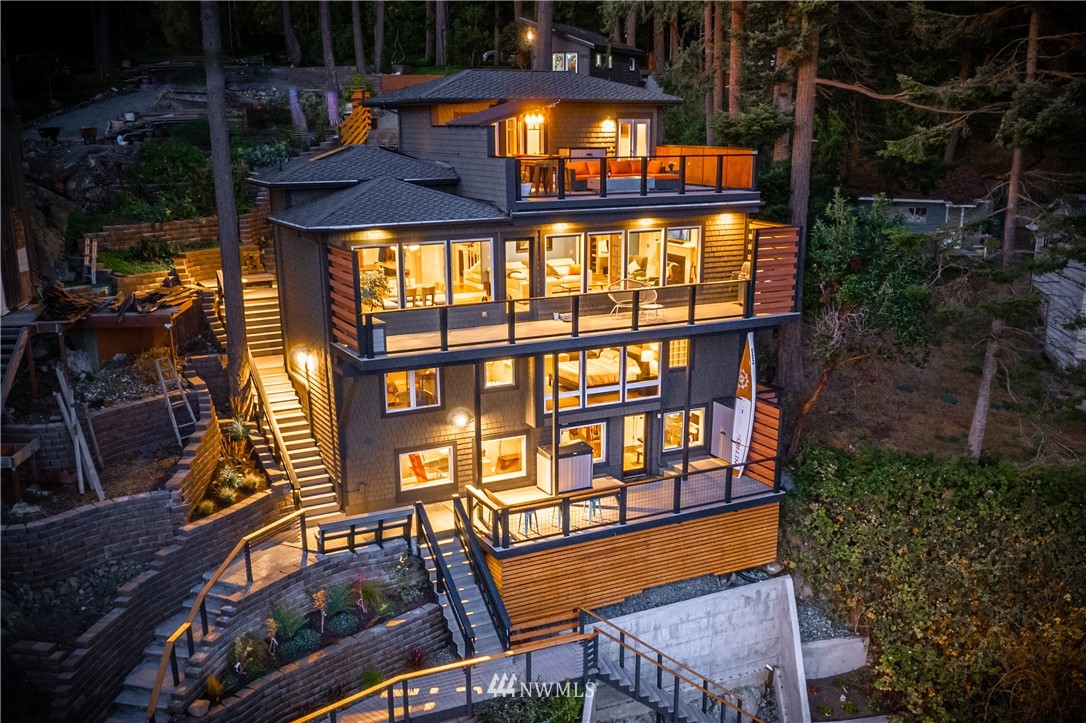 Unbelievably breathtaking panoramic views from this meticulously remodeled and upgraded multi level waterfront home! Skybridge access enters on top floor with French doors that lead to the roof top bar and lounge area deck or enter from pathway into your gorgeous chef's kitchen with stainless steel Viking appliances including a 6 burner gas stove! Open concept from kitchen, dining and family room, all with stunning views! Down another level and you will find your master bedroom with deep jetted soaking tub, sauna and oversized tiled rain shower with bench! Additional bonus feature includes basement studio accessible via second bedroom trapdoor or outside bottom deck! This home is absolutely amazing and will take your breath away!!