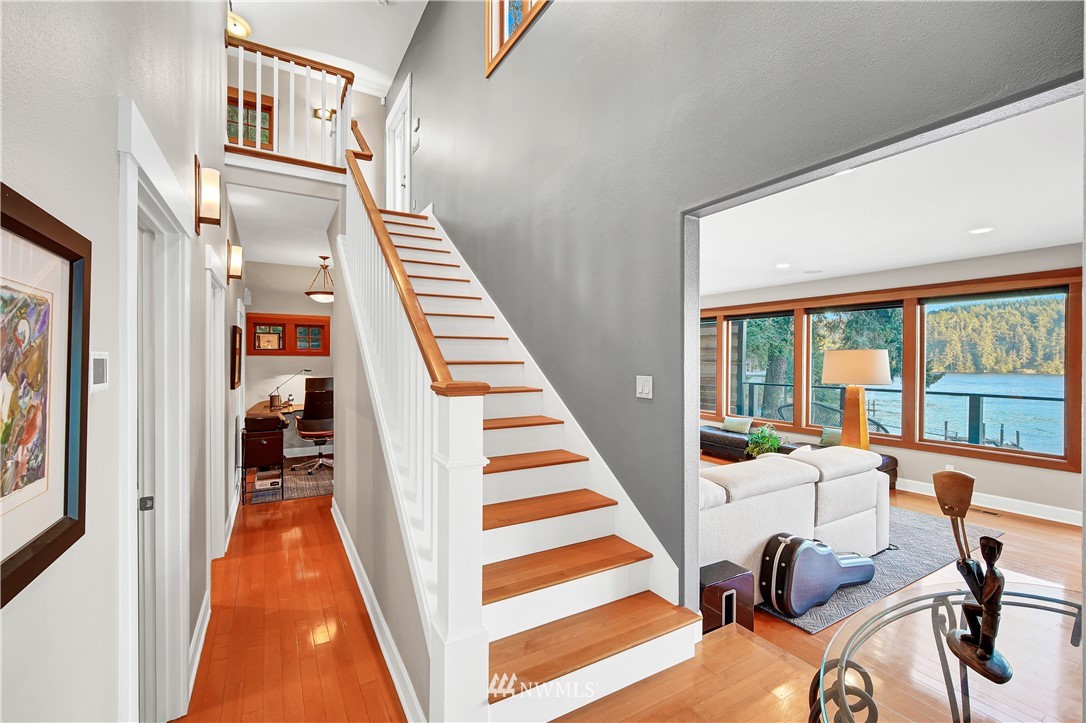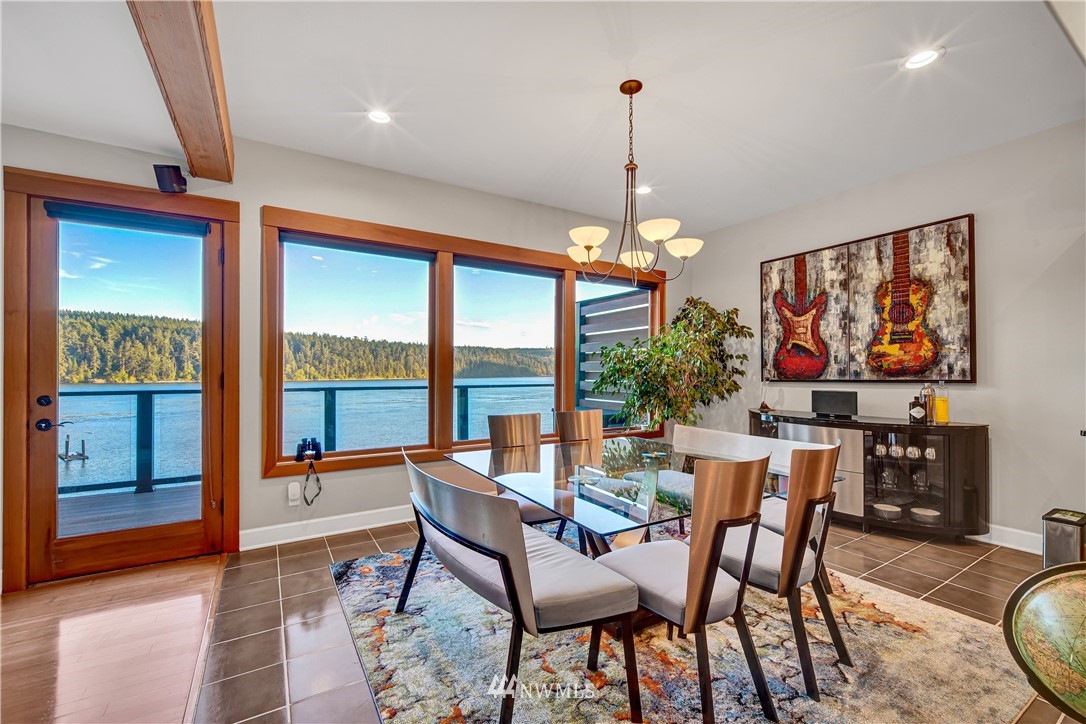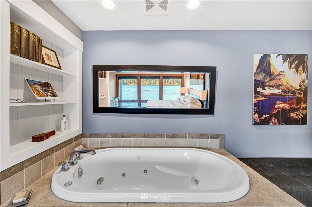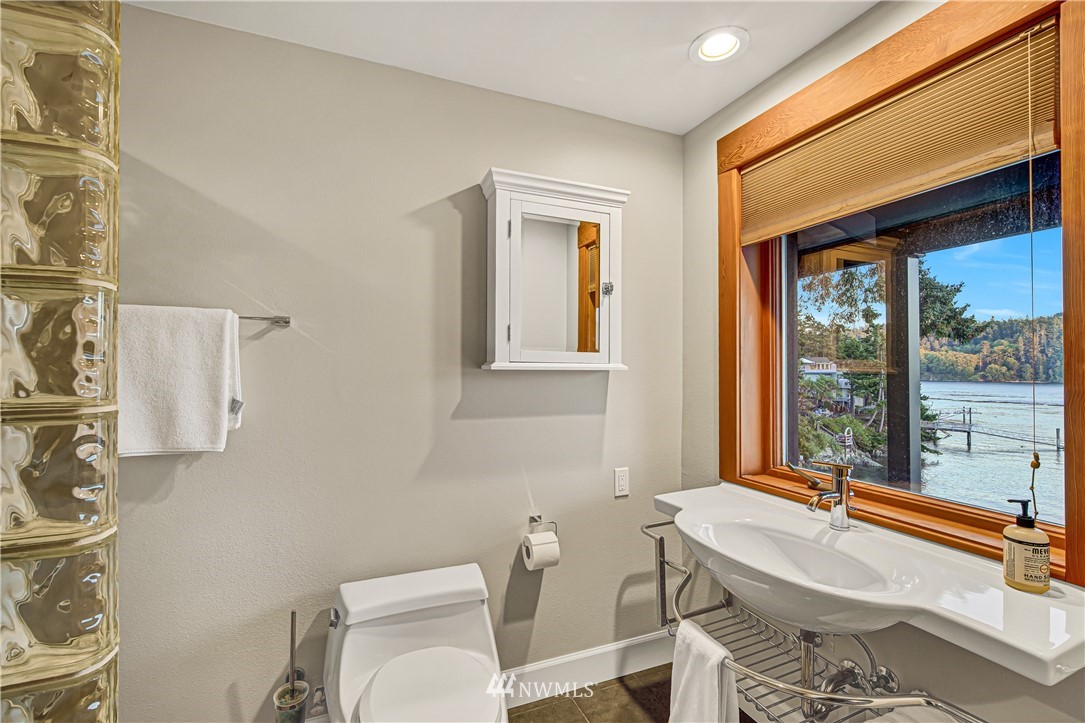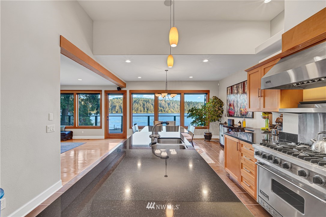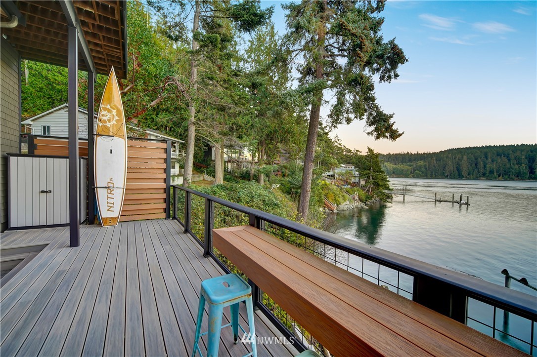 Unbelievably breathtaking panoramic views from this meticulously remodeled and upgraded multi level waterfront home! Skybridge access enters on top floor with French doors that lead to the roof top bar and lounge area deck or enter from pathway into your gorgeous chef's kitchen with stainless steel Viking appliances including a 6 burner gas stove! Open concept from kitchen, dining and family room, all with stunning views! Down another level and you will find your master bedroom with deep jetted soaking tub, sauna and oversized tiled rain shower with bench! Additional bonus feature includes basement studio accessible via second bedroom trapdoor or outside bottom deck! This home is absolutely amazing and will take your breath away!!