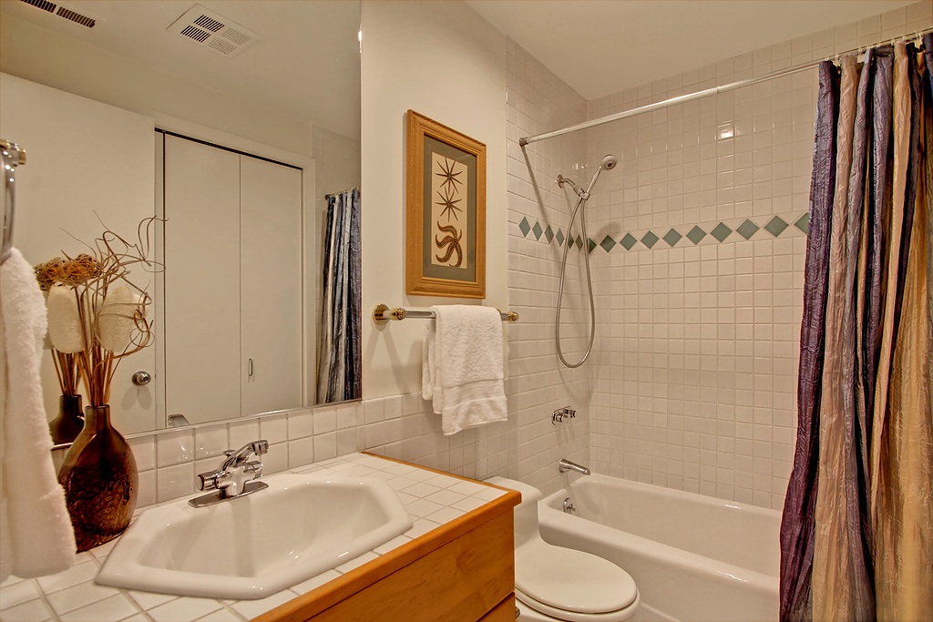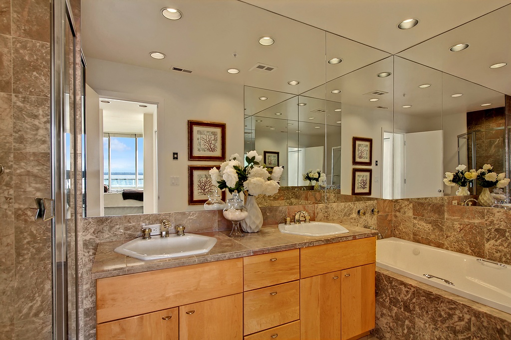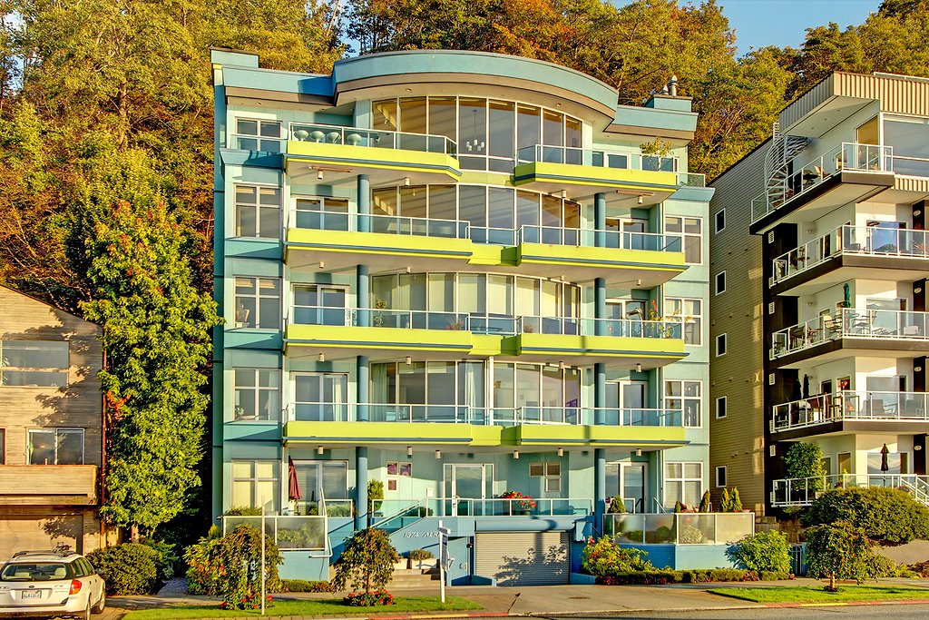 Unobstructed Sound views; Alki living at its' best! A unique 1400 sq ft floor plan offering a rare 3 bdrms PLUS a den. Wonderful deck off Master & living room overlooks spectacular Sound views. A major renovation to this concrete & steel building in 2009 included a new roof, siding, windows and decks; an almost new building. Strong HOA. You'll love the fabulous Alki lifestyle w/ walks along the beach and to the many restaurants. Two garage parking spaces. $5K buyer credit for new appliances.