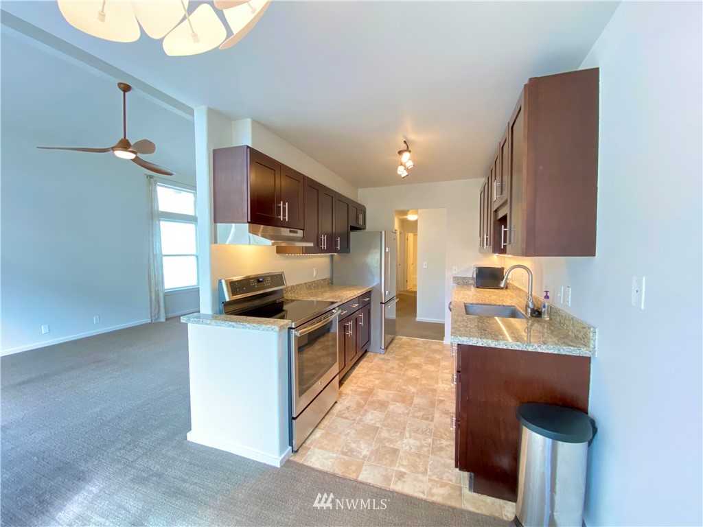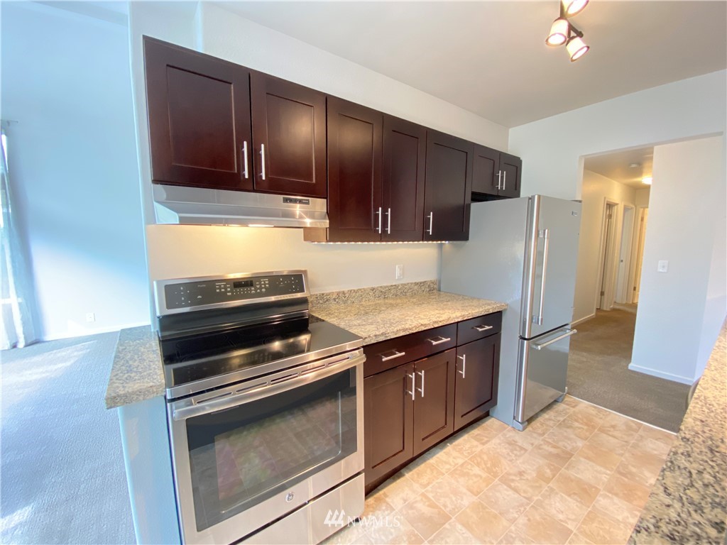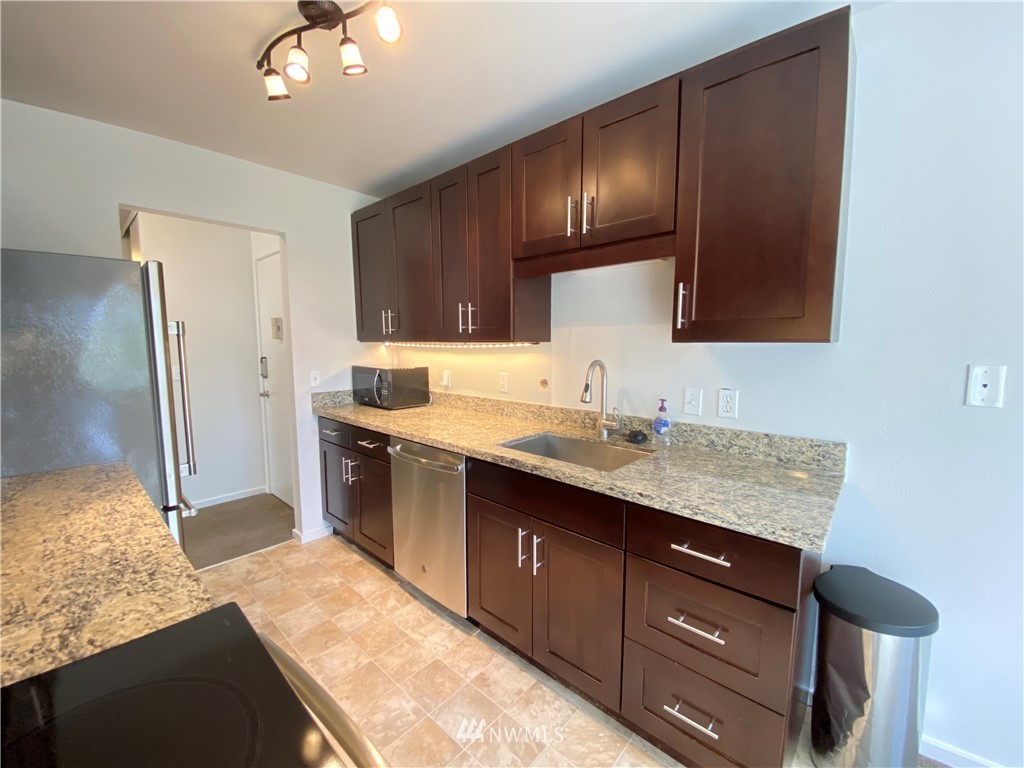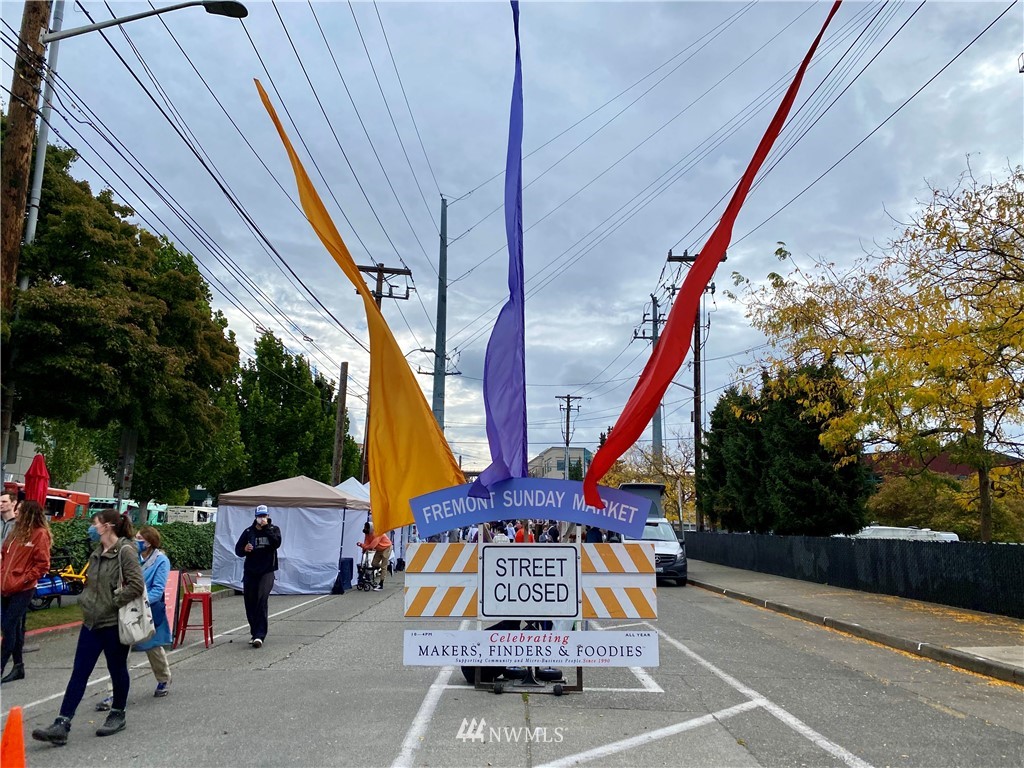 Highly desirable location in Fremont! This 2 bed/2 bath updated condo with winter views of Mount Rainier and Lake Union won't disappoint. Top floor unit with vaulted ceilings and lots of sunlight. A second bathroom has been added to create an en suite. Over 900 sq. ft. with fresh interior paint and a fully remodeled kitchen with SS appliances. Water/garbage/sewer included in HOA dues. So many great restaurants, bars and shopping within walking distance. One block away is Lake Union where you can watch the ducks swim, the boat activity and the city views. Catch the game at a local sports bar 1 block away and don't forget the famous Fremont Sunday market. Check out the Troll under the bridge. Enjoy coffee in the mornings out on the deck.