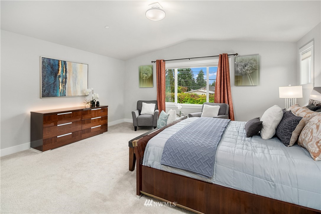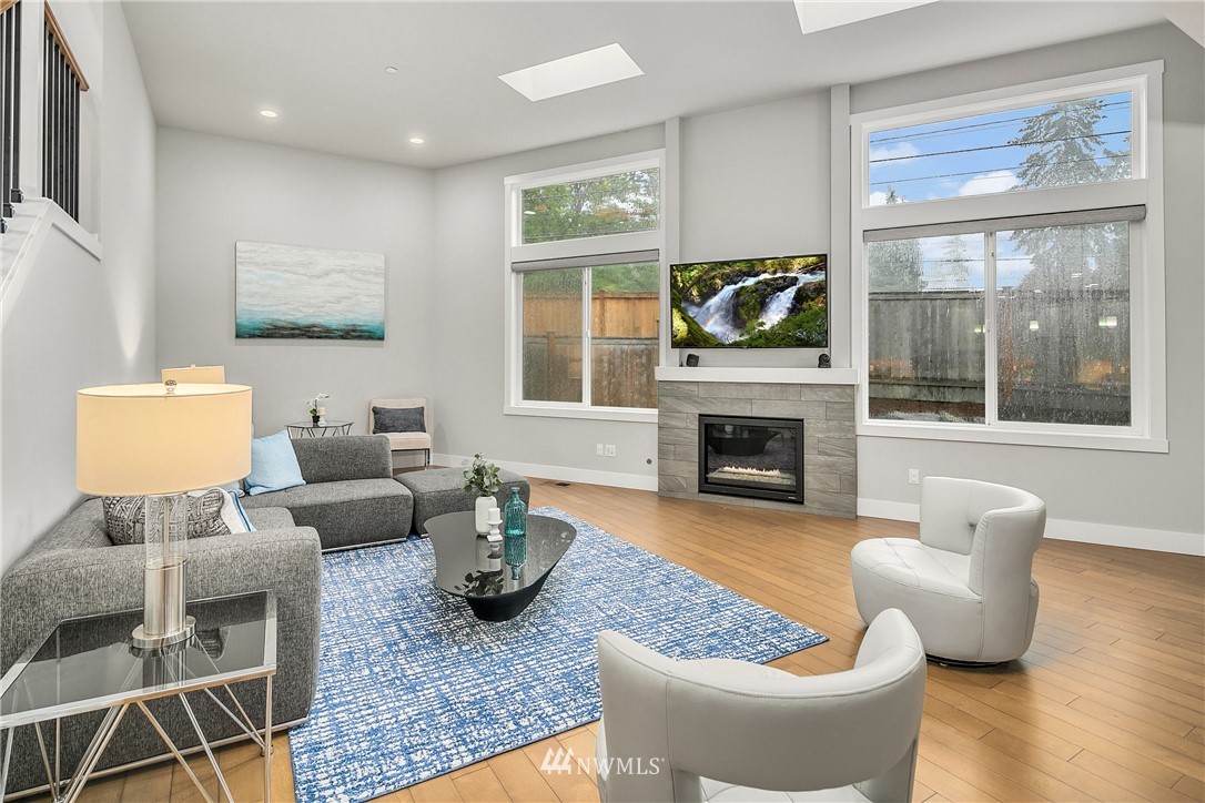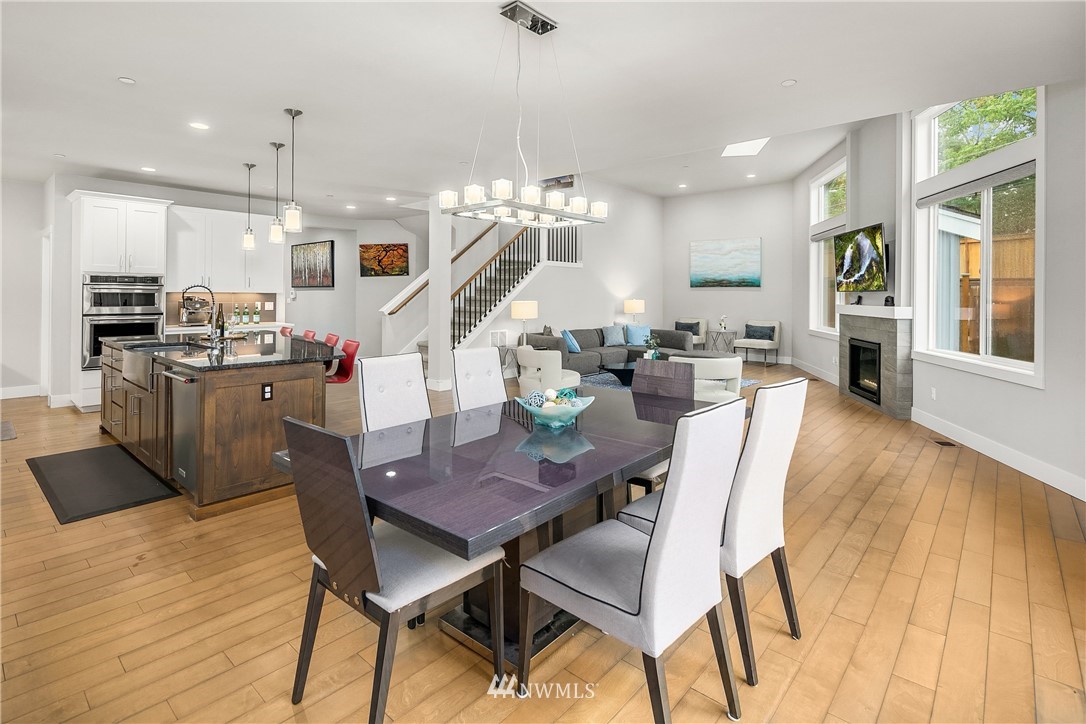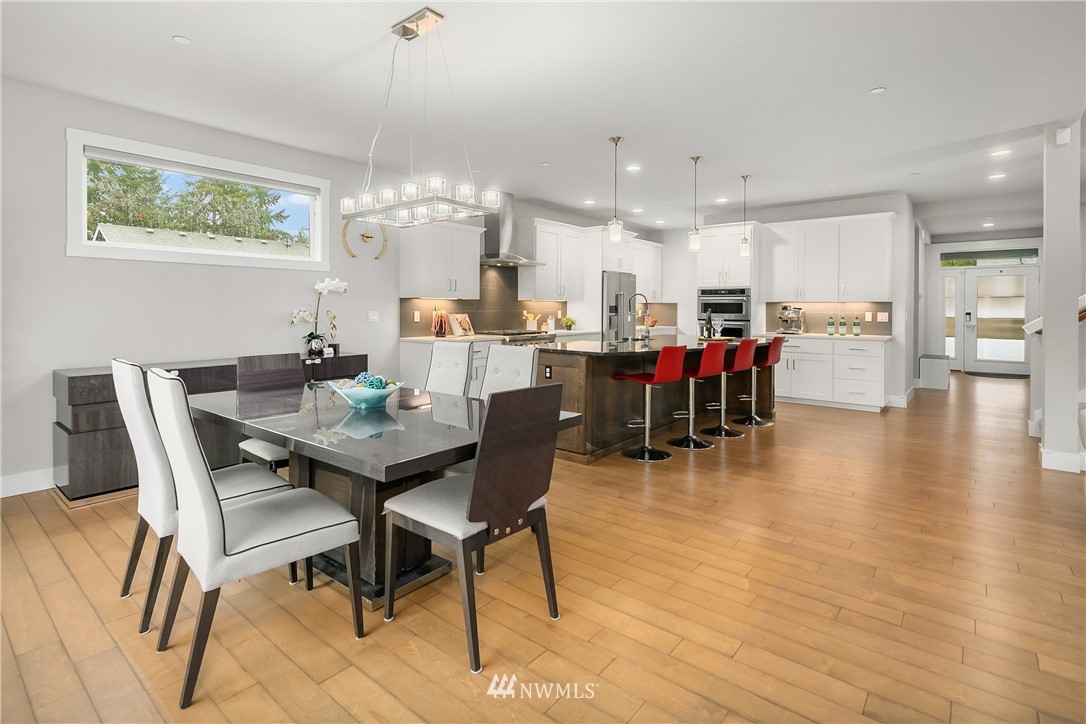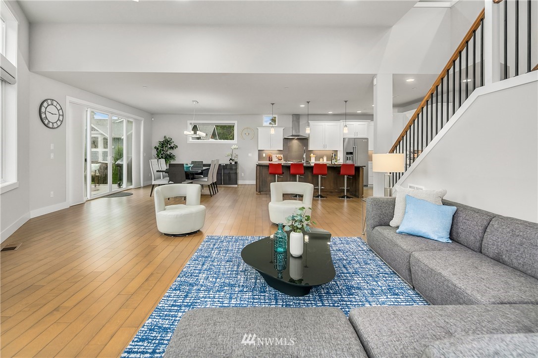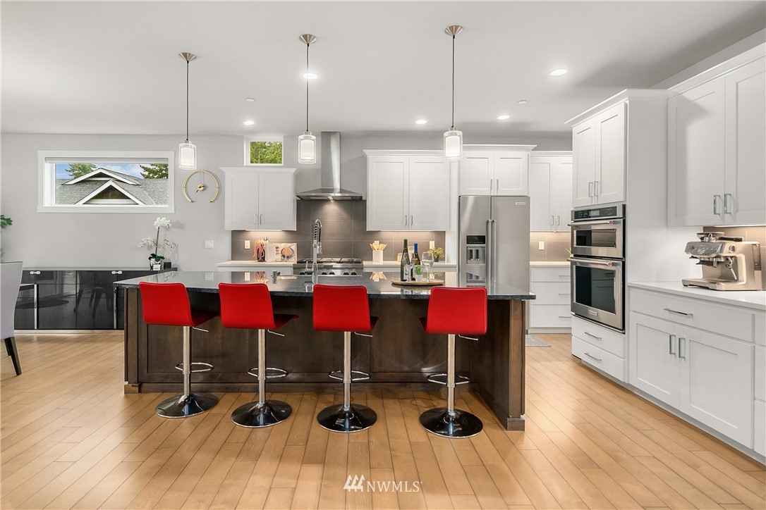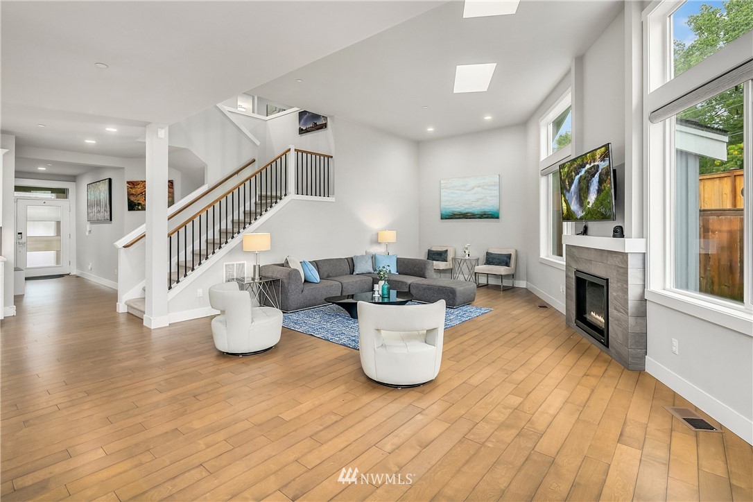 Like new, bright modern home in the heart of Kenmore! This gorgeous 2,910 sqft home features 4 beds, 3 baths & high-end finishes throughout. Chef's style kitchen w/ large slab quartz island, SS KitchenAid appliances, & open concept design. Enjoy bright natural light & sunset views from the 2-story vaulted great room. The main level offers hardwood flooring throughout & a guest suite w/ adjacent ensuite. Upper level massive primary suite w/ 5 piece ensuite & walk-in closet w/ custom built-ins. 2nd story laundry & loft for extra space! Central A/C & custom eave light system. Fully fenced yard w/ extended outdoor patio & gas hookups. Spacious garage w/ long driveway. Northshore School Dist! No HOA!