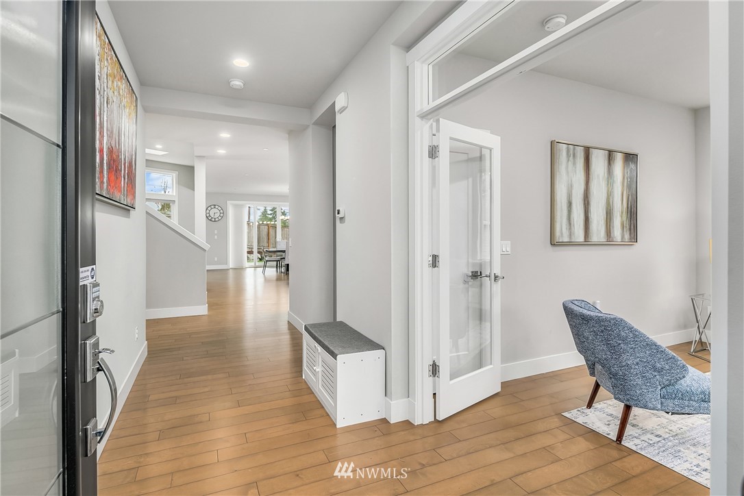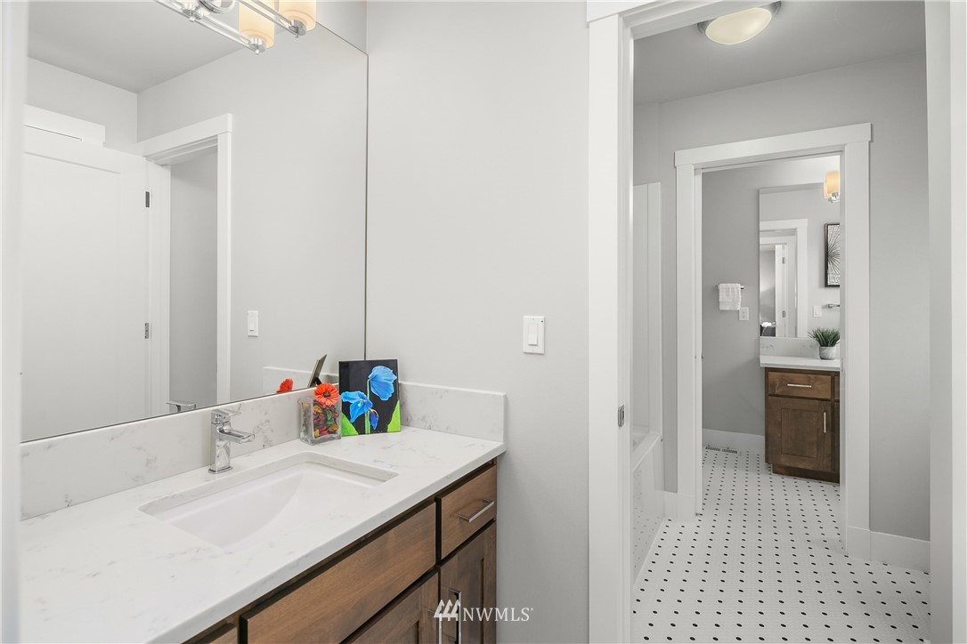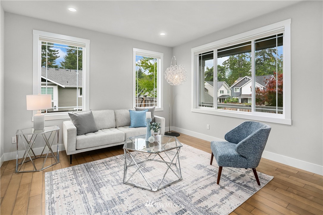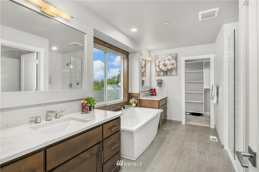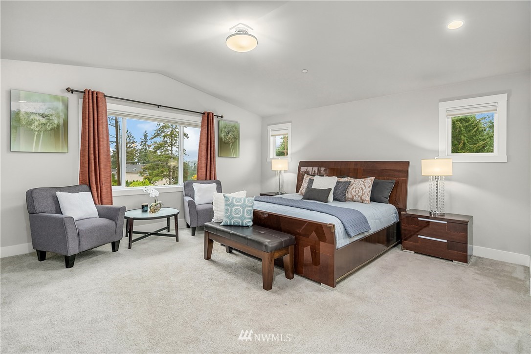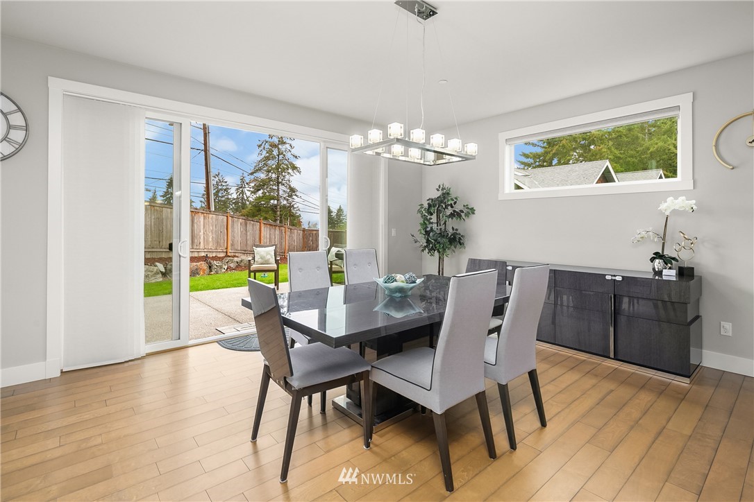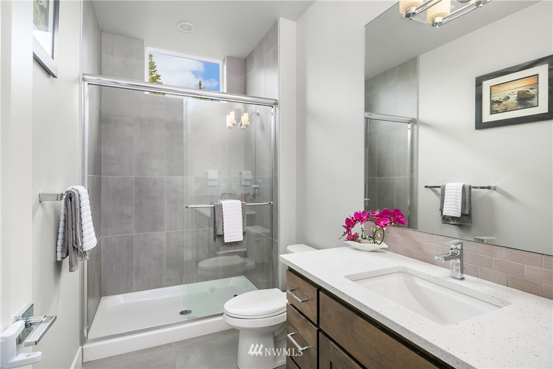 Like new, bright modern home in the heart of Kenmore! This gorgeous 2,910 sqft home features 4 beds, 3 baths & high-end finishes throughout. Chef's style kitchen w/ large slab quartz island, SS KitchenAid appliances, & open concept design. Enjoy bright natural light & sunset views from the 2-story vaulted great room. The main level offers hardwood flooring throughout & a guest suite w/ adjacent ensuite. Upper level massive primary suite w/ 5 piece ensuite & walk-in closet w/ custom built-ins. 2nd story laundry & loft for extra space! Central A/C & custom eave light system. Fully fenced yard w/ extended outdoor patio & gas hookups. Spacious garage w/ long driveway. Northshore School Dist! No HOA!