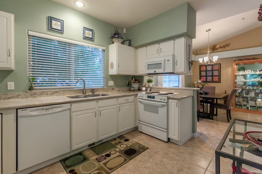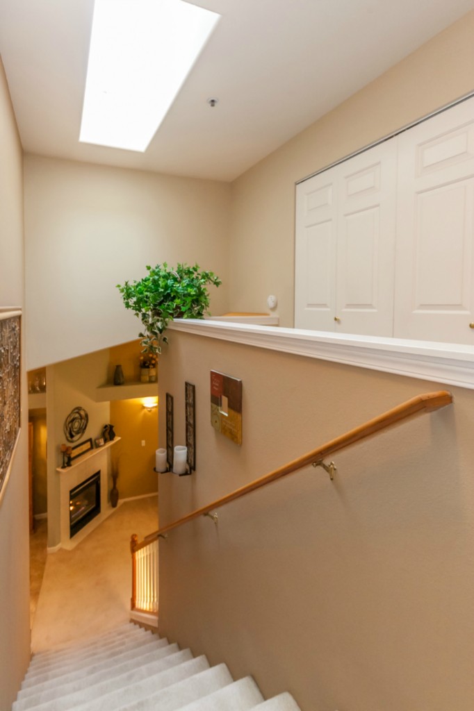 Beautifully maintained end-unit town home in a small, private community. Bright, open floor plan with vaulted ceilings and skylights. Updated light fixtures, countertops & flooring. Updated kitchen w/granite countertops & pantry opens out to deck that overlooks greenbelt area. Spacious Master suite includes 3/4 bath and walk-in closet. Security system, guest parking. Brand new water heater & furnace. Conveniently located near shops, theaters, restaurants, parks and transit. 1 yr home warranty.