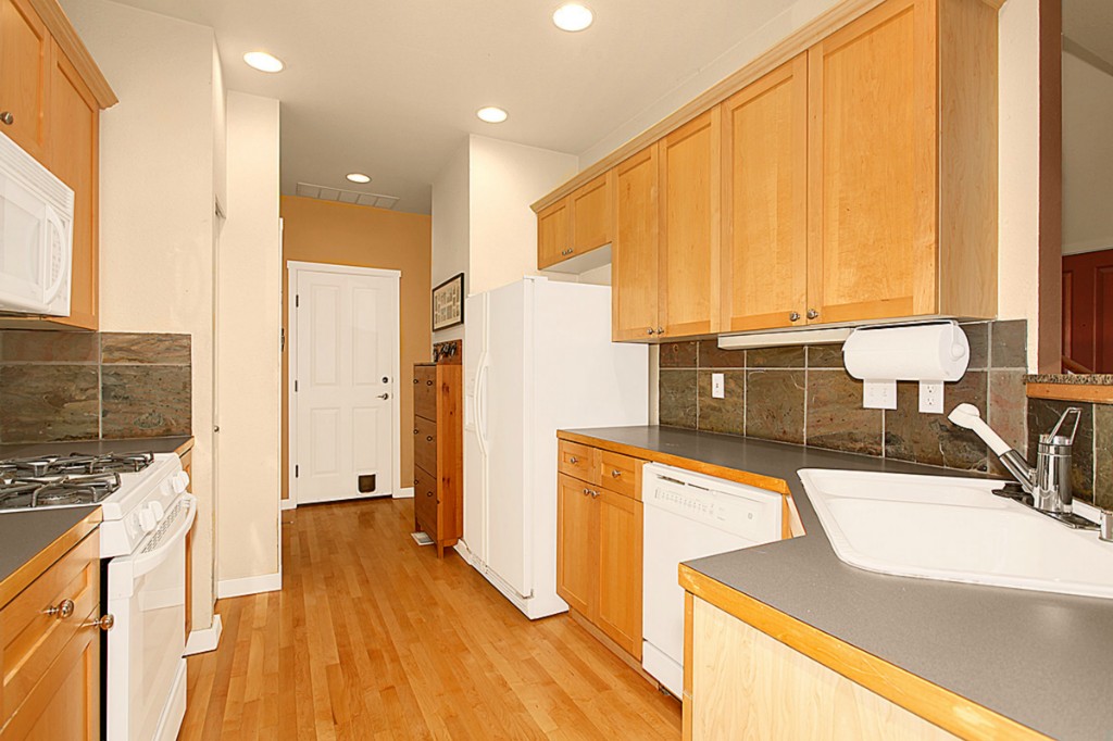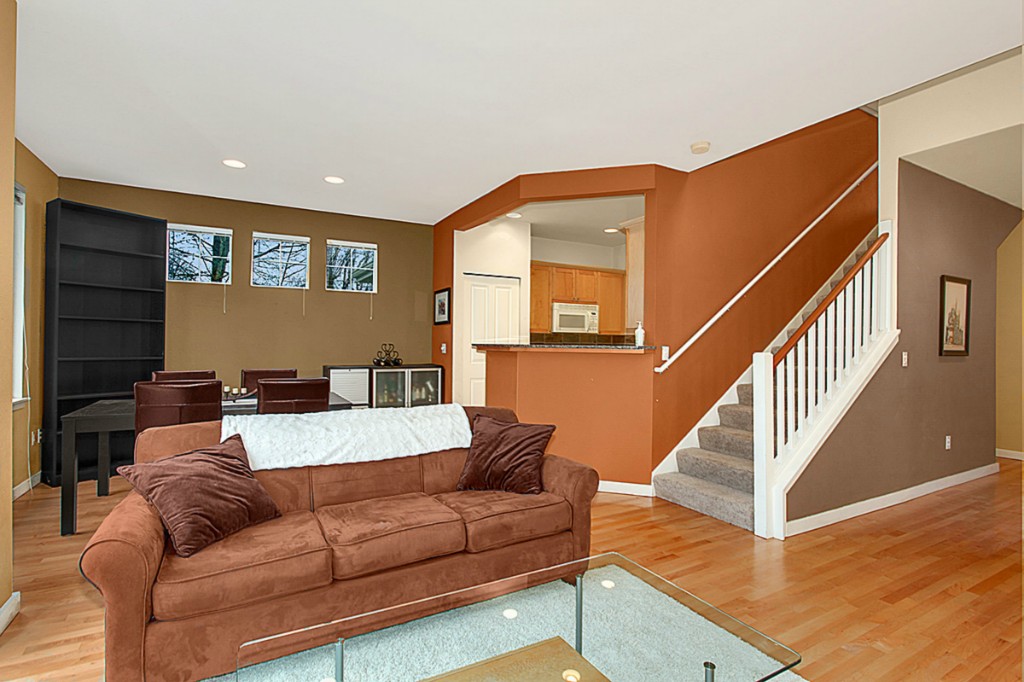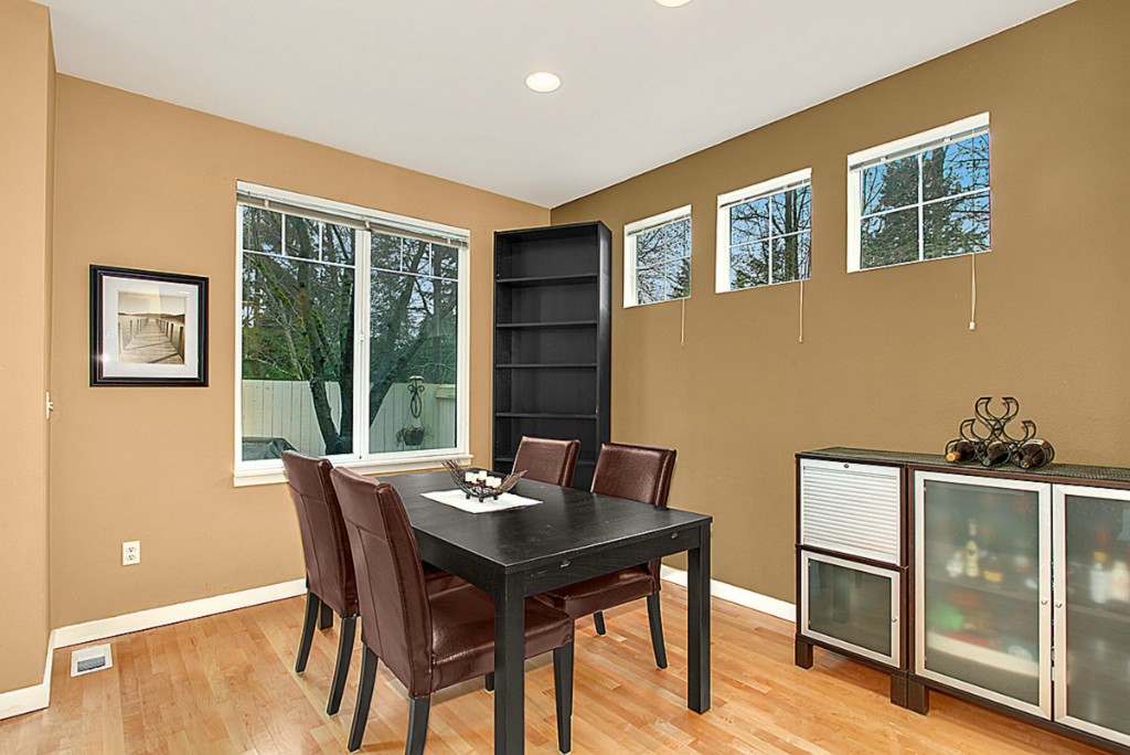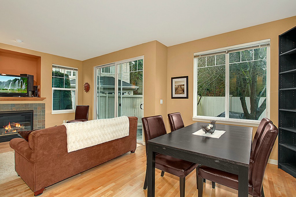 Beautiful and private end-unit townhouse close to downtown! Main level features maple hardwood floors, designer paint, formal dining and cozy gas fireplace. Upstairs find large bonus loft and master with vaulted ceilings. Two car attached garage with lots of shelving for storage. End unit with fully fenced back patio perfect for barbecuing and relaxing. Secure gated community, close to everything downtown Issaquah has to offer! Easy freeway access, Issaquah schools.