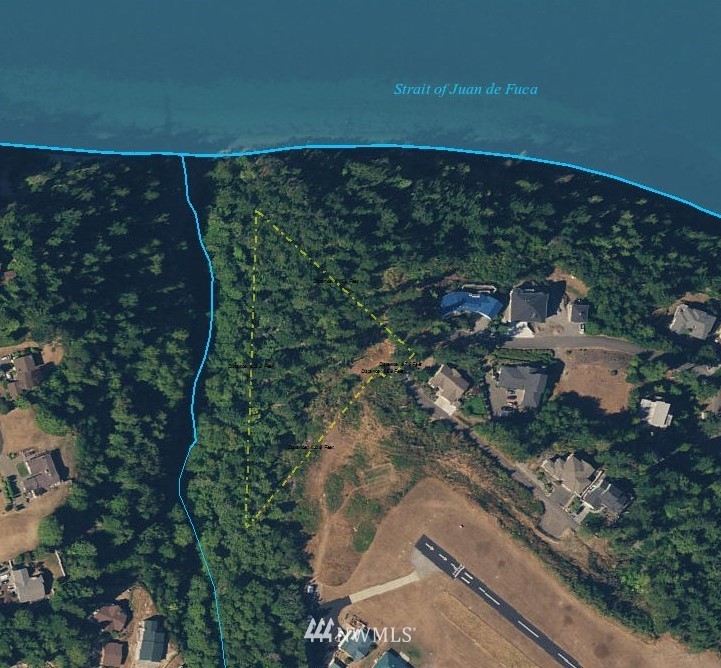 2+ acres with a breathtaking view of the Strait of Juan de Fuca. Adjacent to the private community airport. Community Beach rights in the quiet and lovely upscale gated community. Protection Island, Mt. Baker & San Juan Island views Located in a small private gated community of luxury homes & only $21month-HOA Fee. This property has a view easement over the trees currently blocking the view. Seller is working to open up the view.