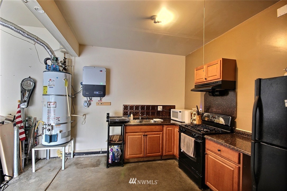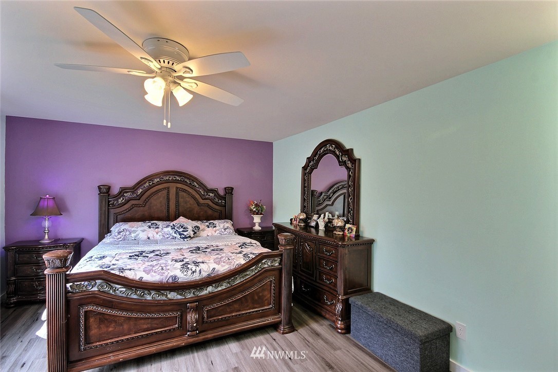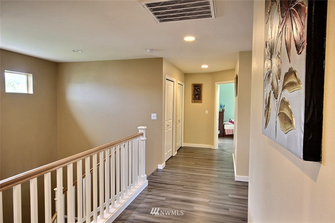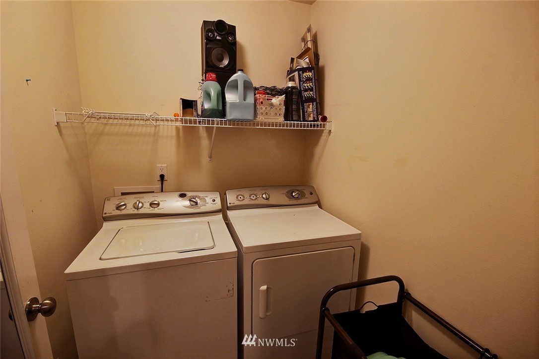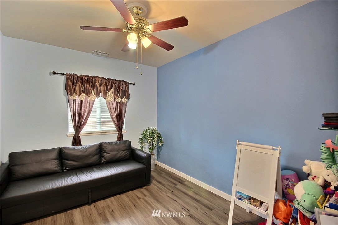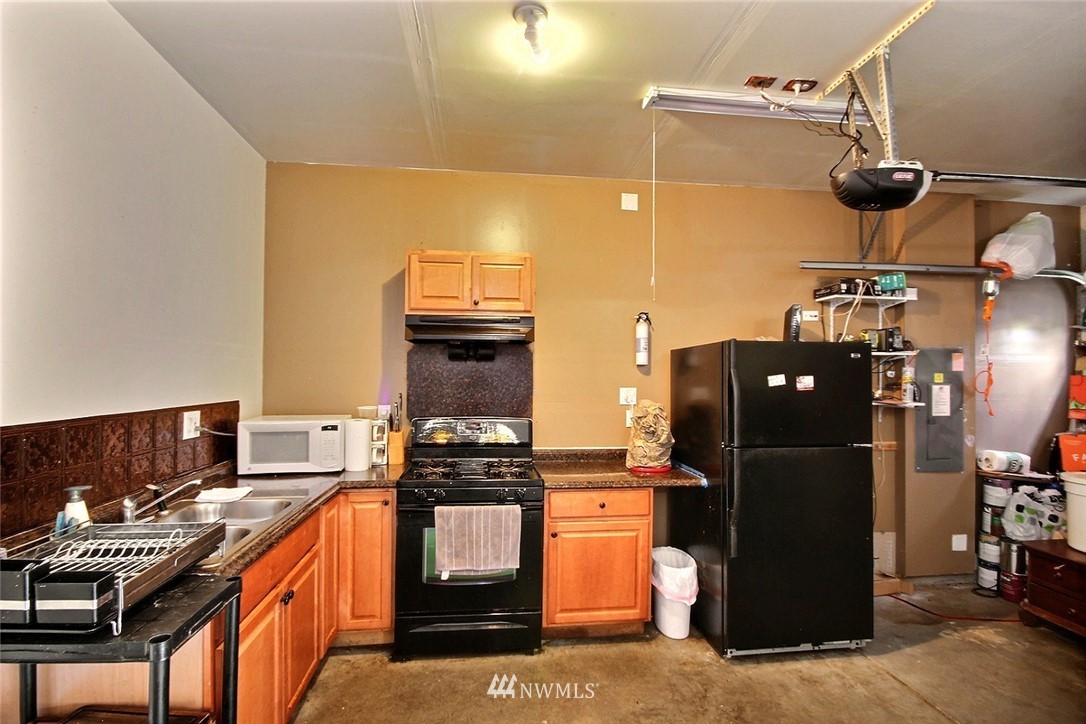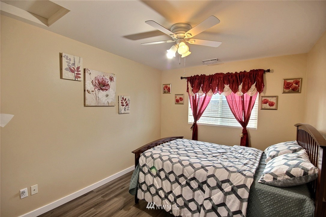 Crafted by DR Horton and designed for today's living! Ever-popular open concept floor plan features extensive wood-style flooring thruout, new paint in 2019, classy frplc with granite tile surround, white millwork, heat pump/AC, solar 2KW, fashionable finishes, all vent fans on timers (attic fan has WI-FI app), second kitchen in garage and more. Island kitchen offers plentiful cbntry, all applcs stay (incld W&D). Spindled staircase up to primary suite with five-pc bath, sizable bdrms, full main bath; bonus rm, half bath on main. Extended patio, raised veggie beds (durable treated wood), fenced backyard. Three car garage, extra driveway prkg. Cul-de-sac homesite convenient to popular amenities, main commutes, Sounder Train, schools, parks.