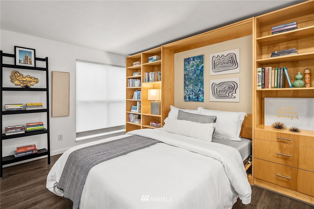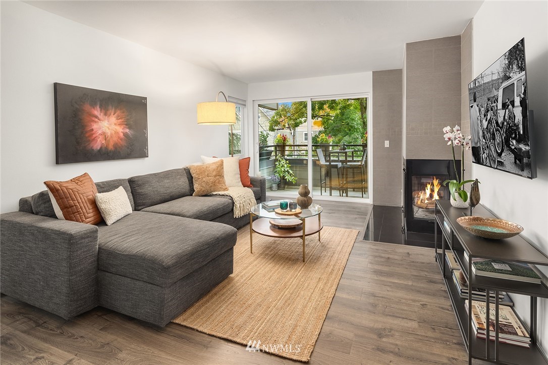 How about a little peace, near the fun stuff? Welcome to this restful renovation at the southern skirt of the vibrant Pike/Pine district. Walk to Seattle U and all that's hip & happening, then retreat home to your quiet nest tucked on a leafy back street. End unit (that means fewer neighbors & more windows!) with thoughtful updates that create a modern container with a warm, chic vibe. New hardwoods, tile fireplace wall, appliances, bathroom upgrades, closet built-ins & more. Put your home office, guests or a roomie in the large 2nd bedroom, graced with custom bookcases & a queen-size wall bed. Throw in a sweet deck, secure garage parking, in-unit laundry and a real fireplace, and you're set. No rental cap. Pets ok. Healthy & well-run HOA.