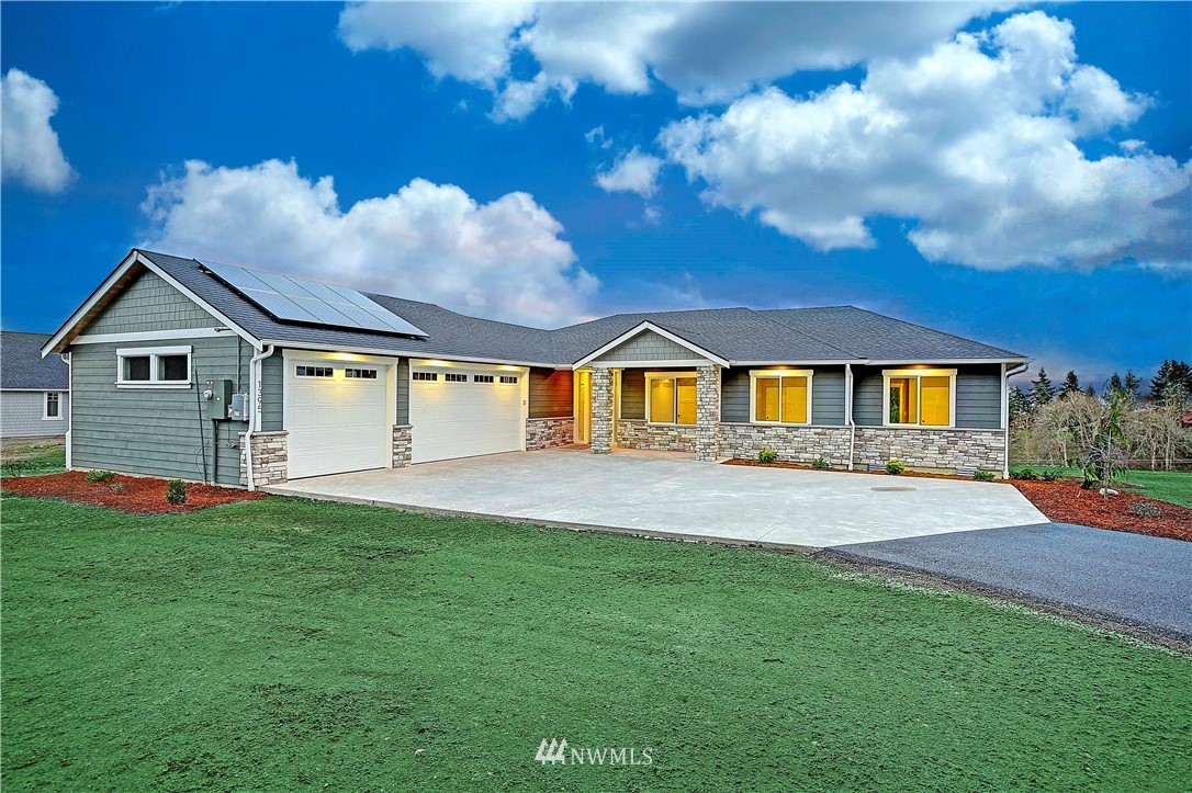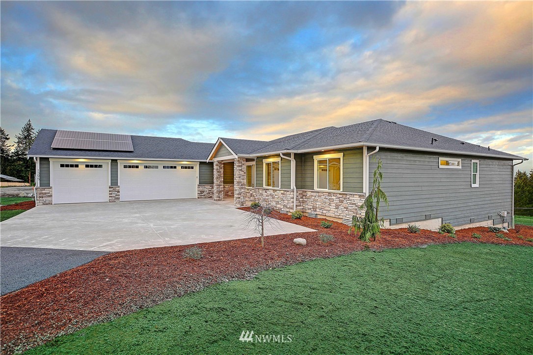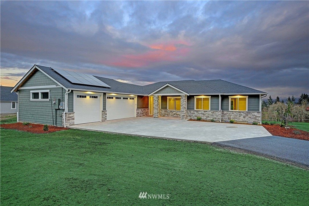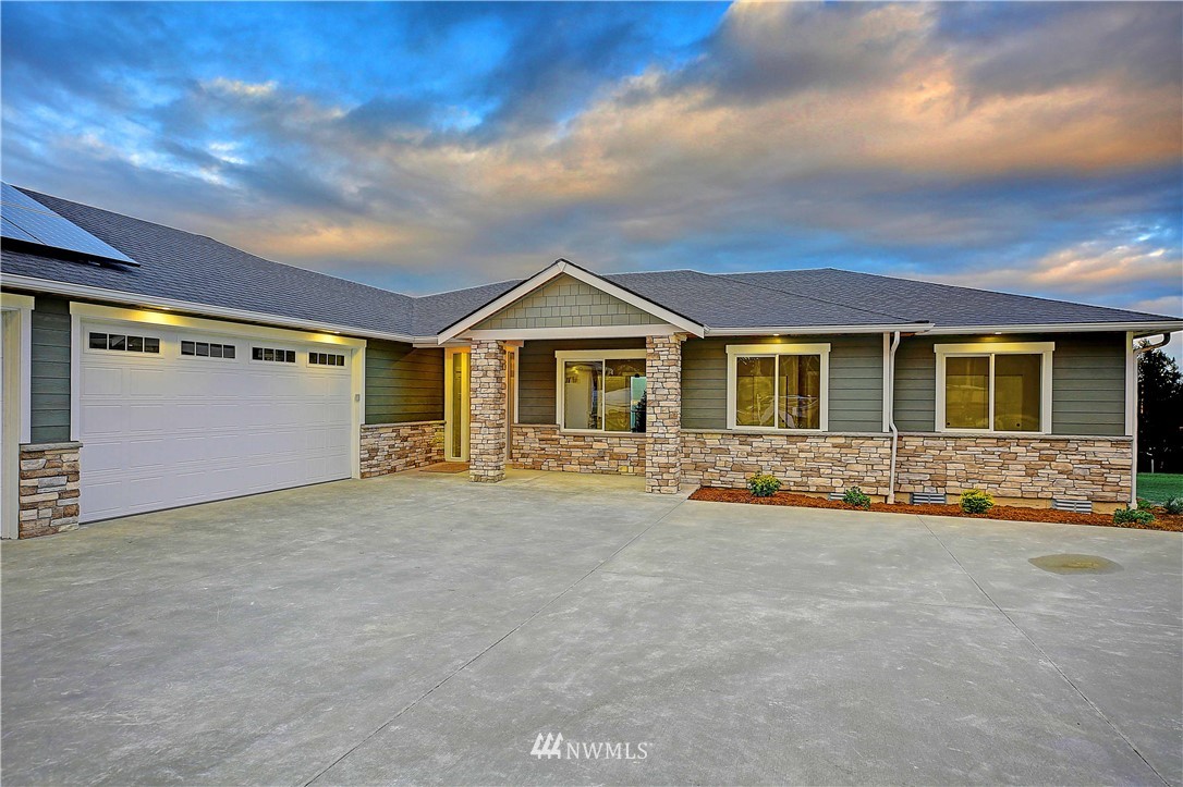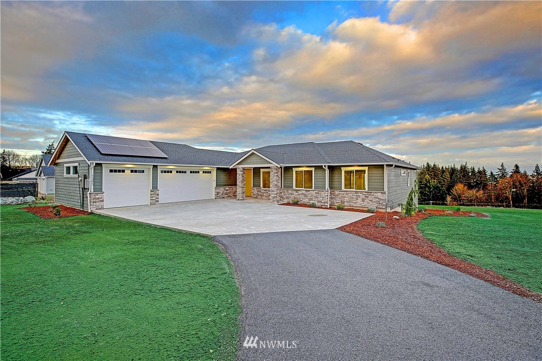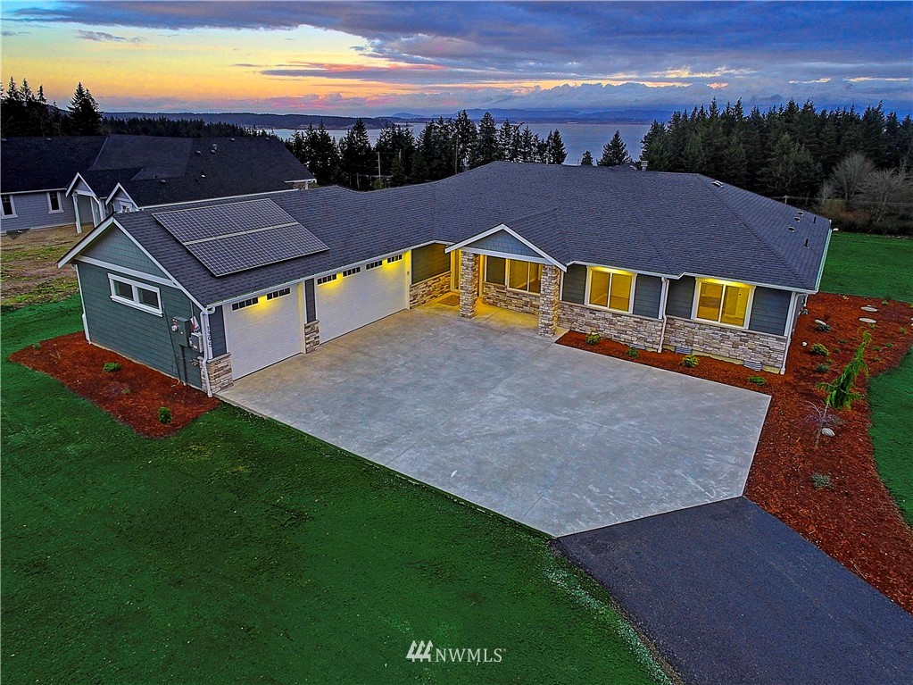New Construction by Titan Homes, a Camano Island Premier Builder. Attention to detail and quality throughout. Located in a gated community with all new homes, large lot with big eastern views to encompass Mt Baker, Port Susan, captivating sunrises and moon rises. Upscale finishes throughout and high end appliances. Single level home, open and spacious floor plan, vaulted ceilings, large windows for plenty of light, 3 car garage, energy efficient solar panels, large covered back deck and nearby beach access. Great entertaining spaces in this fabulous new home. Come enjoy all that the Island has to offer in this quiet setting in a home of distinction where no ferry is needed! This is the last home available in this 8 home plat, don't wait!
