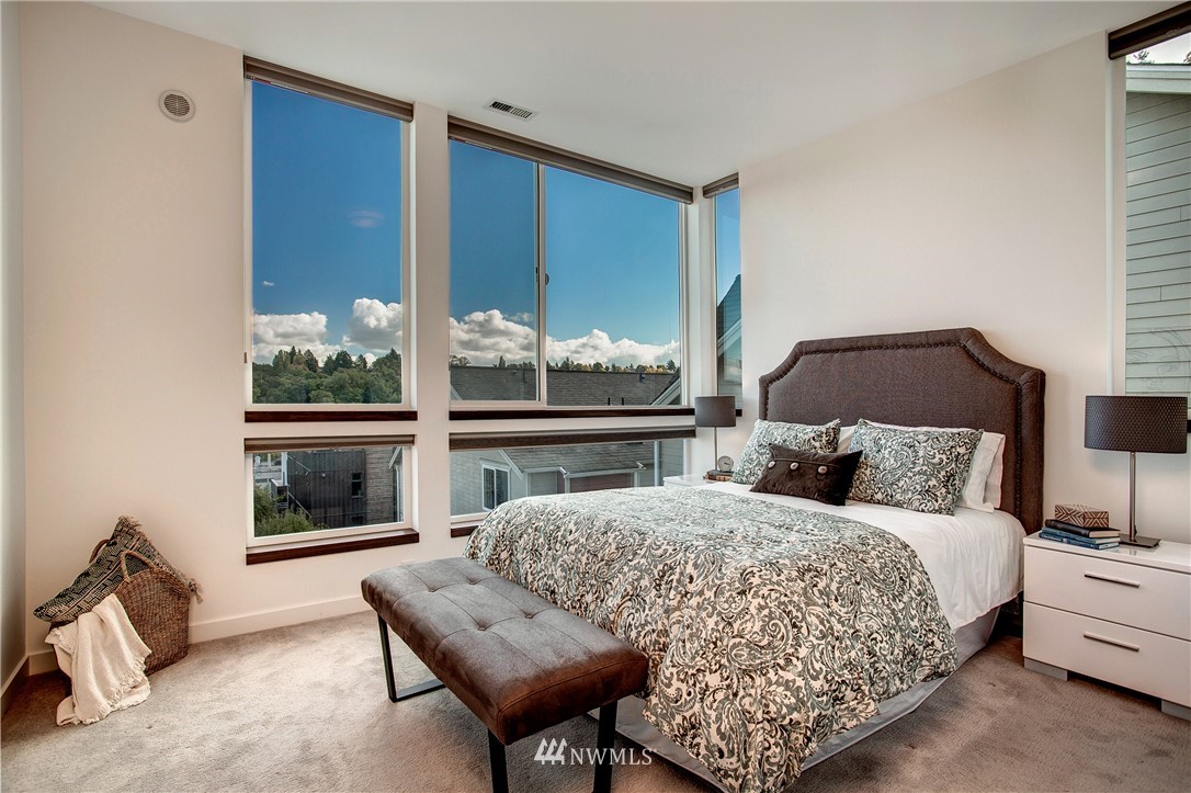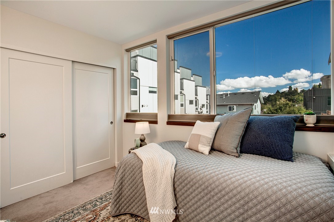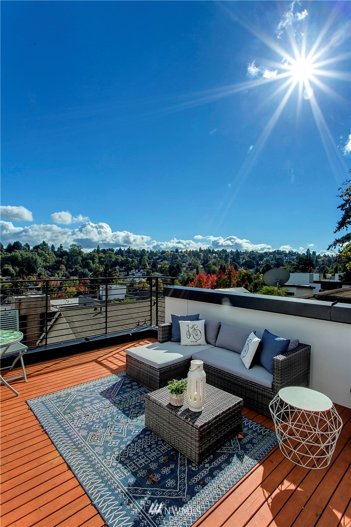This stunning like-new townhouse has the perfect layout, with the primary bedroom all the way up and the second bedroom & bath on the lower level. Both bedrooms are bright, airy, and above ground, making the second bedroom perfect for a roommate or home office. The main living level brings the home together for entertaining & cooking meals...what could be better? Other perks: The rooftop deck with views of the mountains is plumbed for your BBQ and water. The dedicated parking spot is wired for an electric car charger and there is a central community garden to share veggies and chat with your neighbors. It's an end unit with additional windows. A/C is already installed. New paint throughout. Easy commute to downtown or Capitol Hill! No HOA!