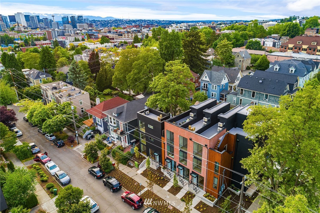 Limelite Development delivers urban sophistication w/ neighborhood appeal in this brand new boutique community. Located on the crest of Capitol Hill spotlighting luxurious style, beautiful views & refined simplicity. Unique design delivers walls of windows, site finished white oak hardwood floors, solid core walnut stained doors, Terrazzo tile & more! Kitchen features walnut & black cabinets, sleek black appliances, soap stone counters along w/ a brick back drop. Generous west facing roof top decks provide City & Mountain views. Targeting Built Green. Residential quietness, yet a stone's throw away from all the convenience the inner city has to offer.