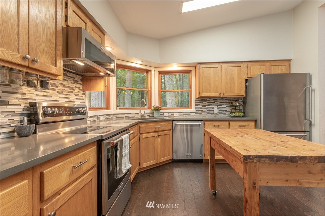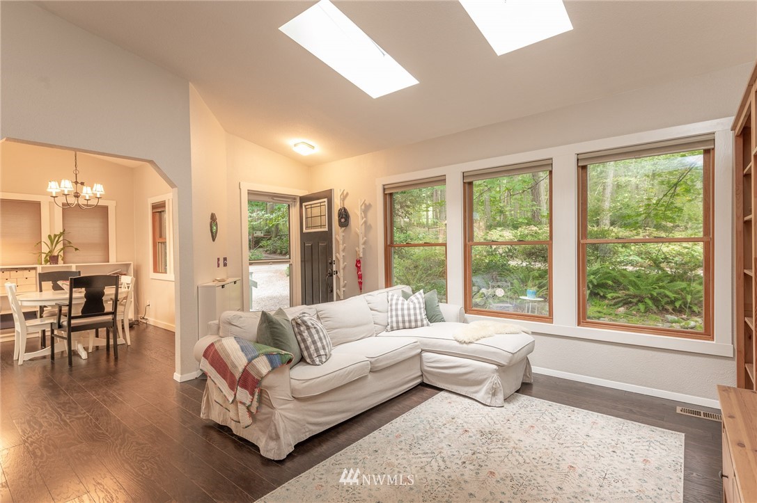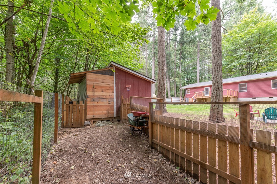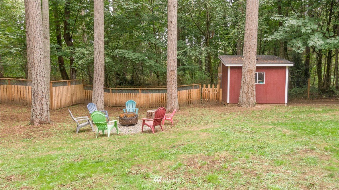 Charming south end mini-farm on acre+ nestled among the trees is ready for new keepers. Thoughtfully updated 3-bed/2-bath home has brand new roof & the shed includes a new skylight. Newer appliances, flooring, quartz counters & a heat pump to enjoy A/C in the dog days of summer & efficient heat during the long days of winter! Cozy up to the woodstove on rainy days. Fully fenced, including deer-proof garden, yard with fire pit with plenty of space to play & finally a magical forest...imagine fairies in a sun-dappled forest where you can build a treehouse & let your imagination soar. Work from home with high-speed Comcast internet or unplug in this quiet retreat. Convenient to south end ferry, Lisabuela Beach, trails, farm stands & more.