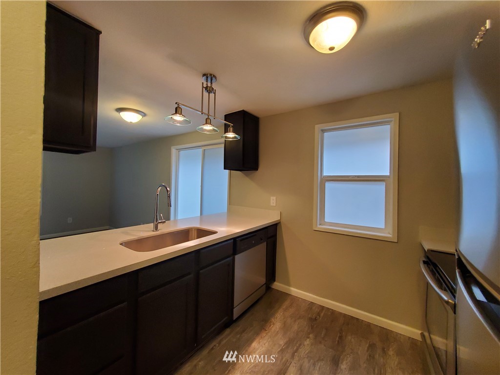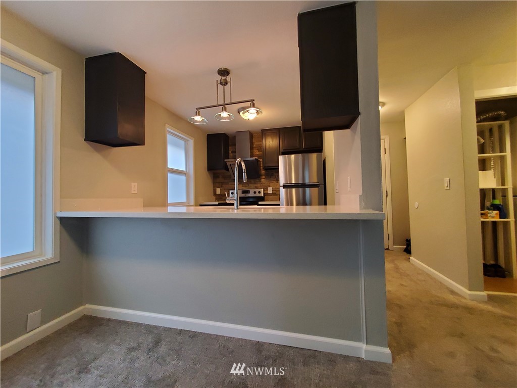 Conveniently located condo in North Everett with easy access to I-5, Meticulously cared for top floor condo with a open floor plan. This 2 bedroom unit has a great updated kitchen(All appliances stay) with breakfast bar, dining area, washer & dryer, & more. Freshly painted interior and new carpet/flooring throughout. One assigned parking spot and plenty of off street parking. Move-in ready !