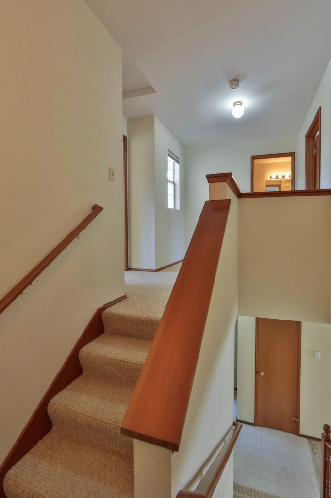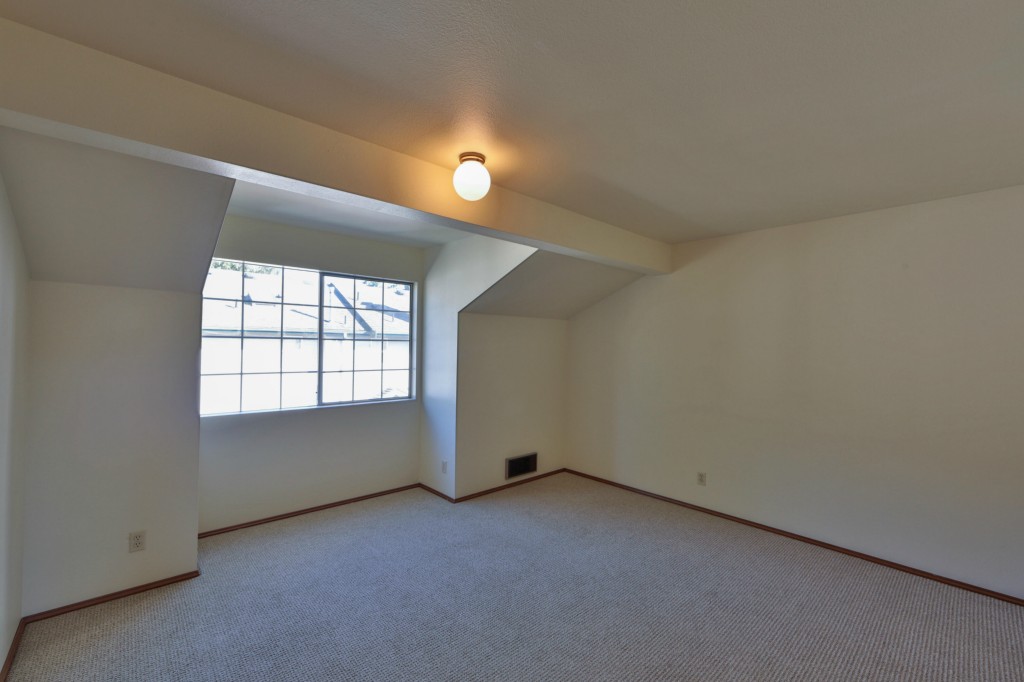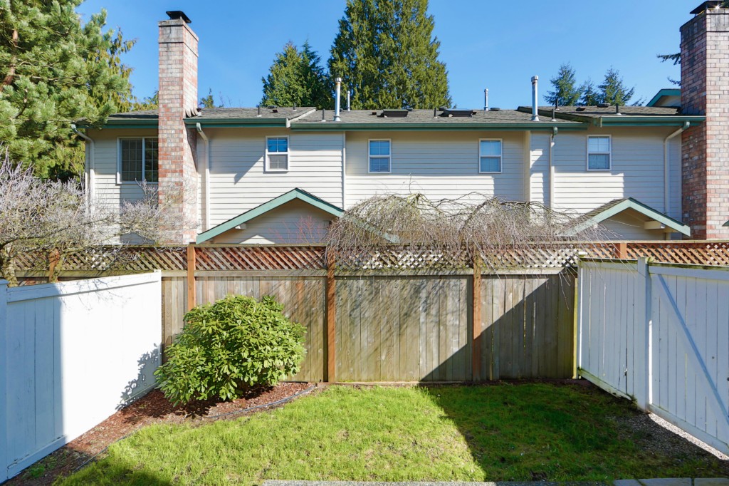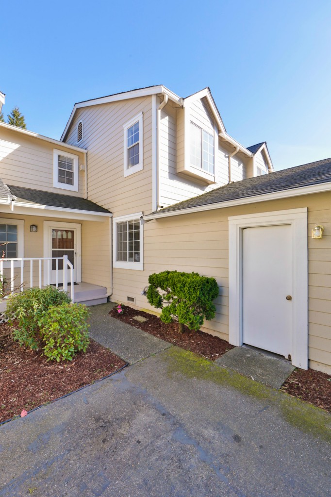 This spacious town home has a great floor plan. The main floor has a full bath & bedroom, living room with fireplace, dining area with access to patio & fenced yard, utility room with full sized W/D and kitchen with newer laminate flooring. Upstairs find 2 more generous bedrooms, a big walk in closet, and a large bath with dual vanity. You have your own garage with an additional open parking space. Close to bus lines, schools, freeway, shops & dining. Quiet & Private...so much for so little!