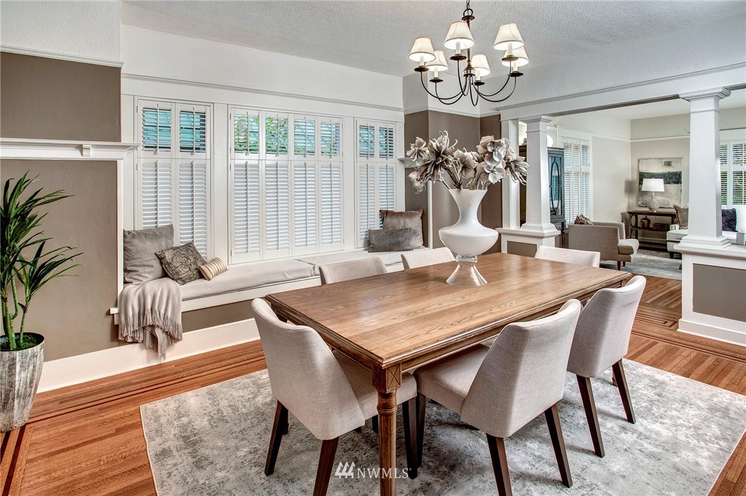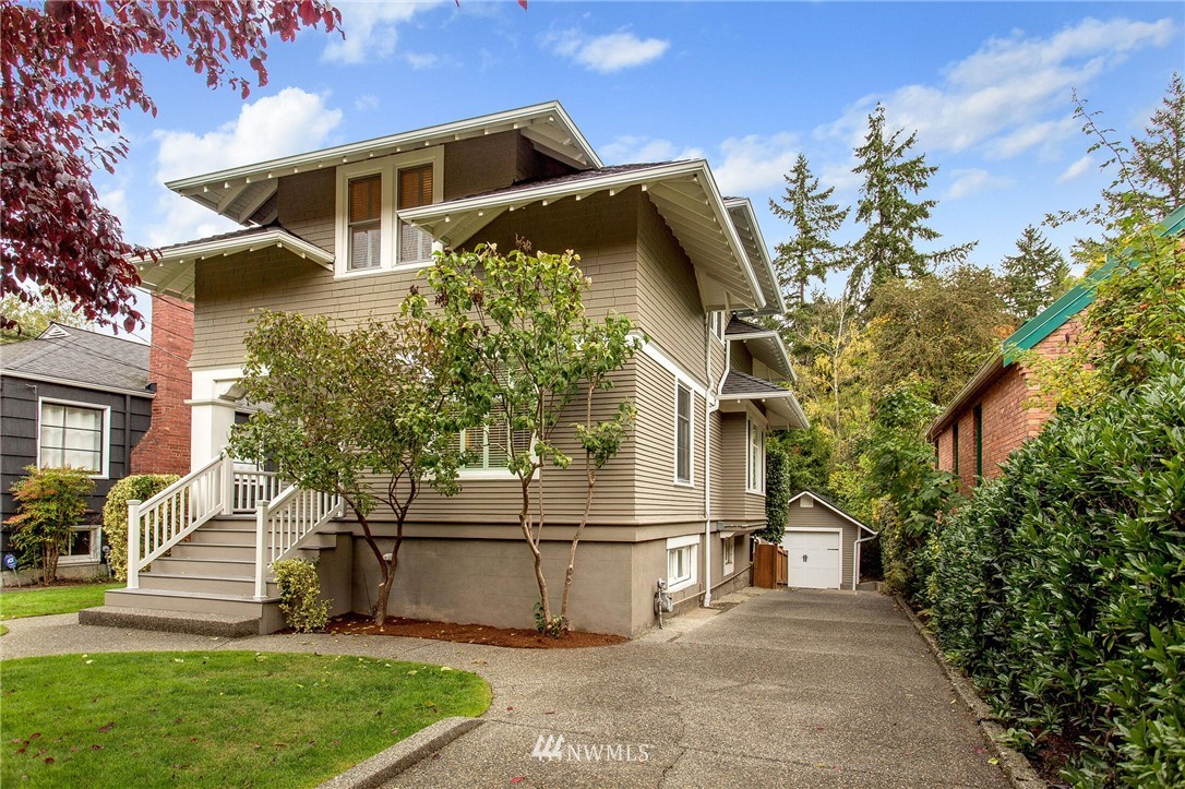 This lovely Montlake craftsman exudes the feeling of "HOME." Coveted & quiet street, home backs to Washington Park Arboretum. Tall ceilings & custom shutters juxtapose to create feeling of space and comfort simultaneously. Formal entry w/beautiful staircase, living room w/gas fp, open dining/kitchen concept and circular floor plan make entertaining easy. Kitchen walks out to deck and private backyard. Half bath also on this level. Second floor has three beds + spaciously renovated bath. Media, guestroom, full bath, & laundry on lower level. Detached garage + addtl. off-street parking includes 240 volt NEMA 14-50 outlet. Many upgrades throughout make a turn-key purchase. Walkers delight w/trails, coffee, & great food close by.