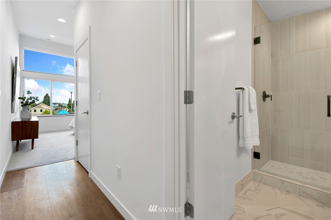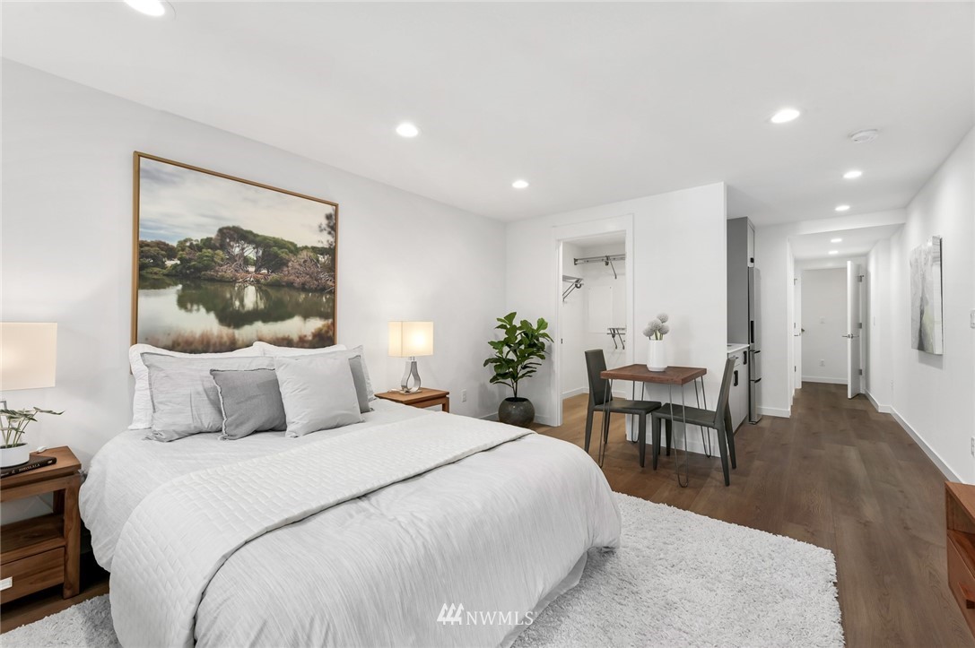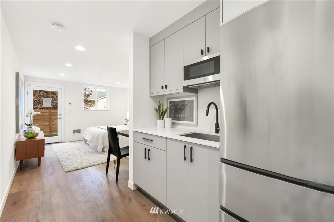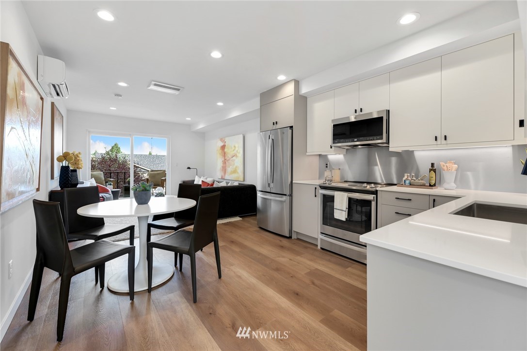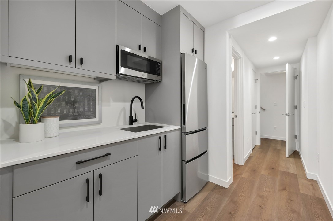 LAST UNIT! Perfect for the owner looking to offset a mortgage, use for multigenerational living, or have a true home office/business experience...you’ve got options. The first floor is designed w/ separate entrance and kitchenette for use as a MIL unit - just lock a deadbolt between the 1st and 2nd floor to create a separate dwelling/working space. Or, leave it open and enjoy the entire two bed two bath townhouse. Wide planked engineered hardwoods w/ Oak finish. Glass-doored showers, tiled baths, quartz counters. Stainless kitchen appliances. Larger units have decks off living. TWO blocks from the Light Rail, which now goes all the way up to Northgate- soon Bellevue, Redmond, and Lynnwood.