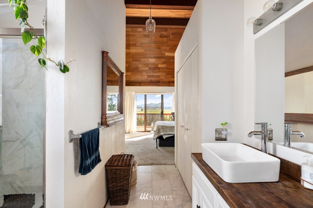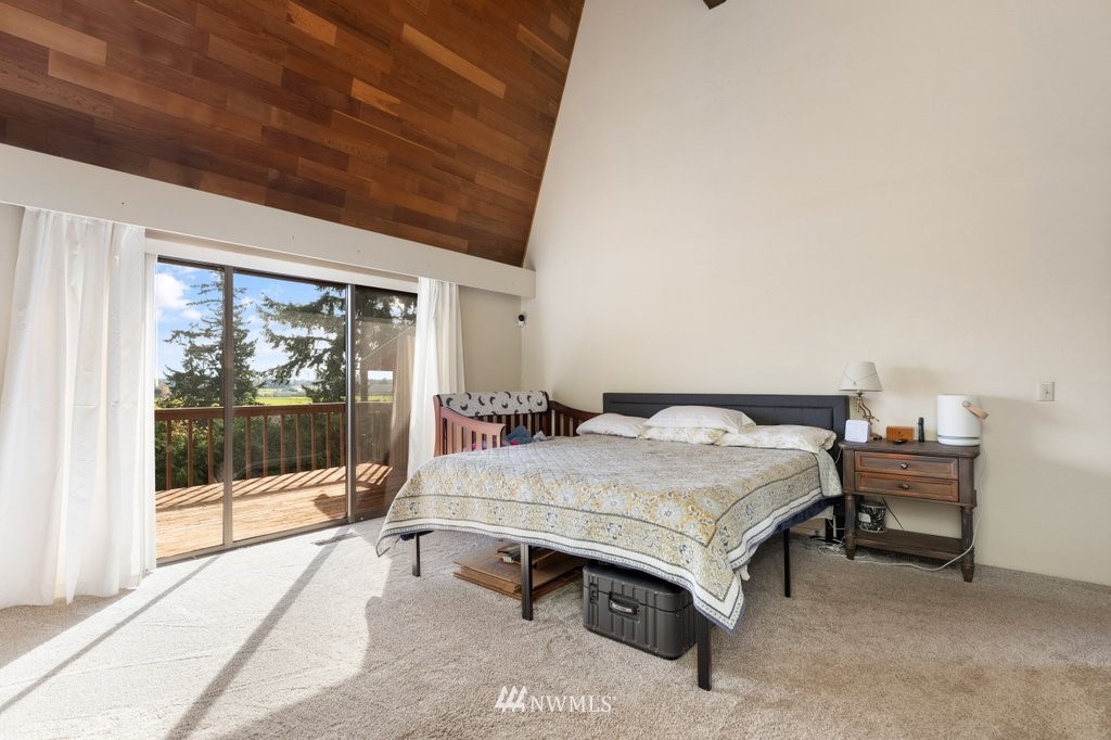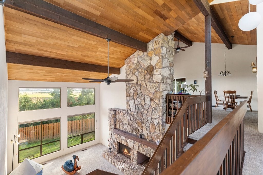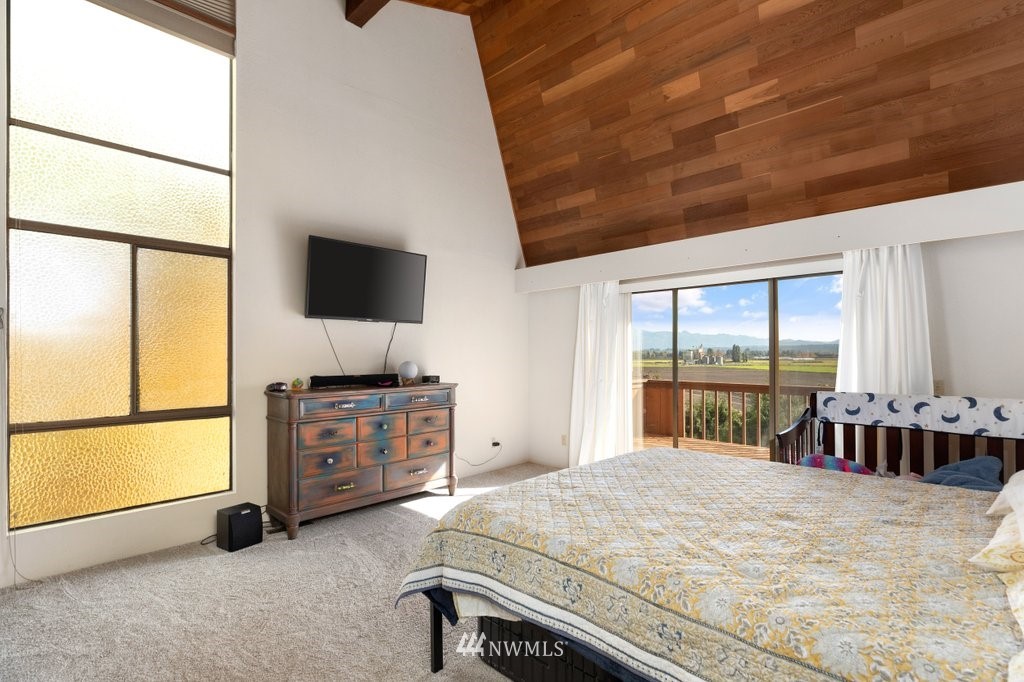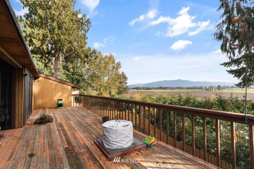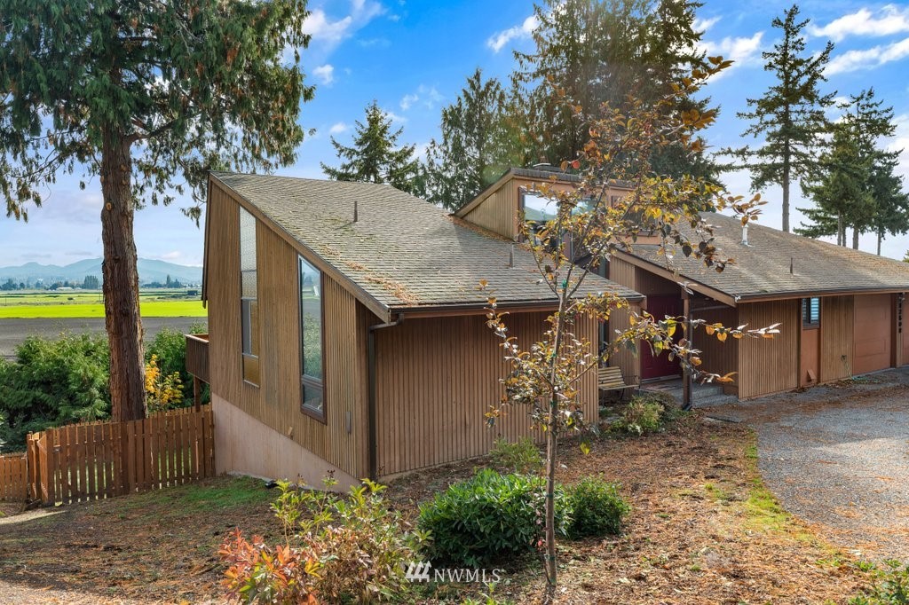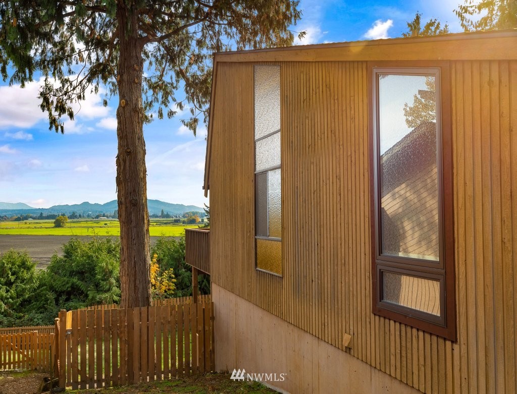 Stunning views of Skagit valley farmland & Mount Baker from this beautiful home in the Skagit Golf & Country Club neighborhood. This 2,604 sqft home has a large Master suite on the main w updated bath & a view! Stunning kitchen w a new Jenn-Air range, butcher block counter, & spacious cabinets. Dining room. Family room w a slider to the deck to bring living outside! Gorgeous vaulted cedar ceilings & two story stone fireplace! Lower level boasts large family room, 2 bed & office, utility room & bath. Fully fenced yard. Spacious garage w a loft workshop. Updates include newer flooring, newer windows, new cellular blinds, updated fixtures, new HVAC w Air conditioning, new smart water heater. Desirable location & move in ready...Welcome home!
