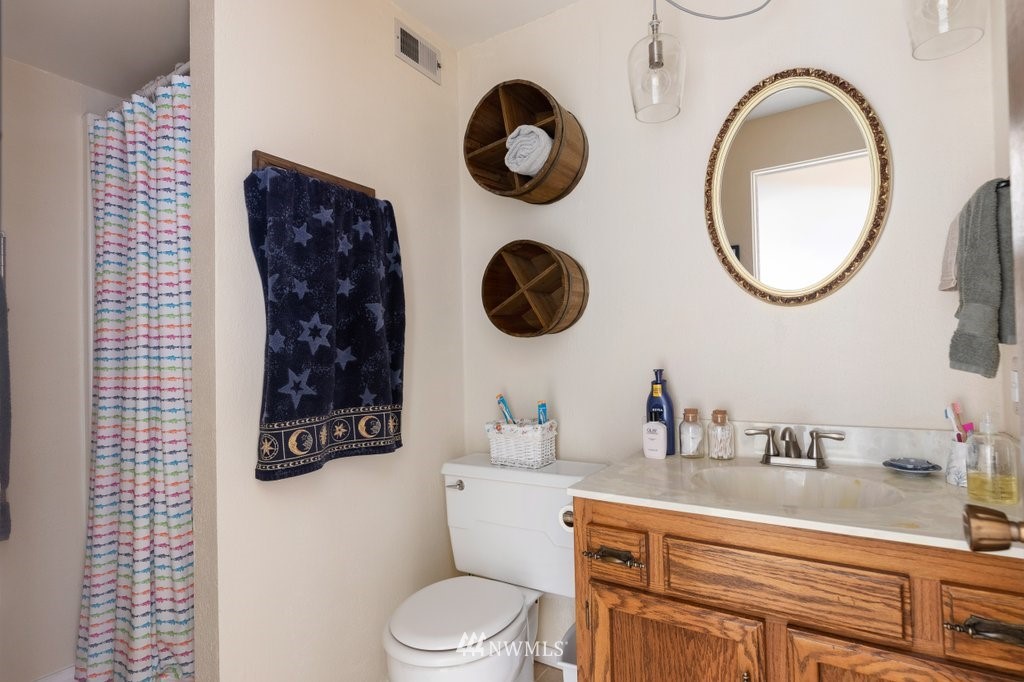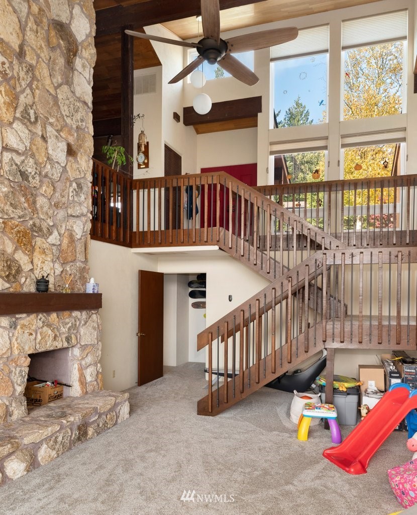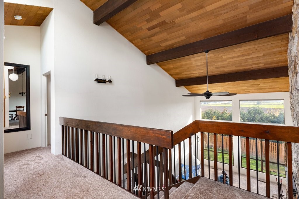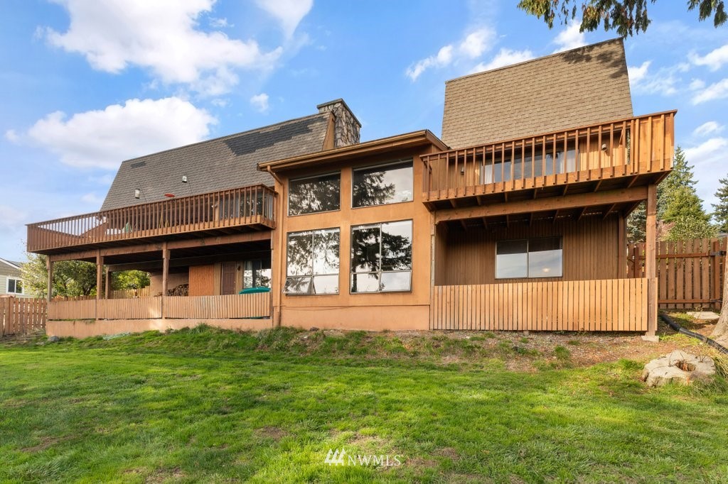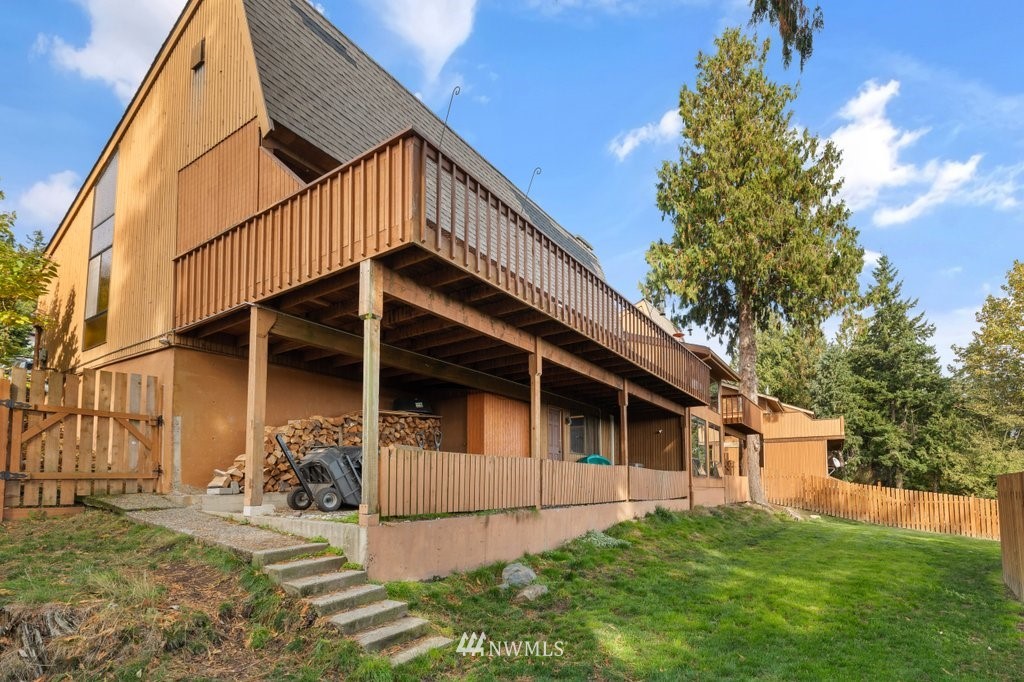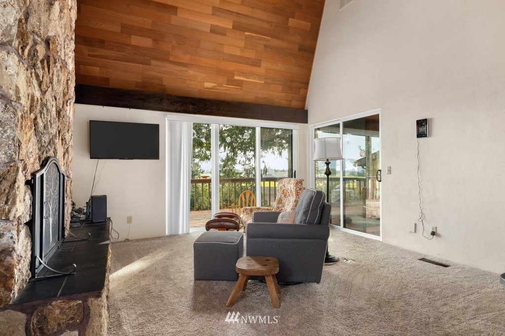 Stunning views of Skagit valley farmland & Mount Baker from this beautiful home in the Skagit Golf & Country Club neighborhood. This 2,604 sqft home has a large Master suite on the main w updated bath & a view! Stunning kitchen w a new Jenn-Air range, butcher block counter, & spacious cabinets. Dining room. Family room w a slider to the deck to bring living outside! Gorgeous vaulted cedar ceilings & two story stone fireplace! Lower level boasts large family room, 2 bed & office, utility room & bath. Fully fenced yard. Spacious garage w a loft workshop. Updates include newer flooring, newer windows, new cellular blinds, updated fixtures, new HVAC w Air conditioning, new smart water heater. Desirable location & move in ready...Welcome home!